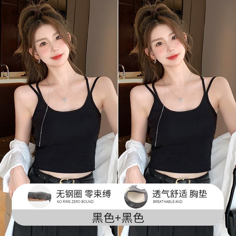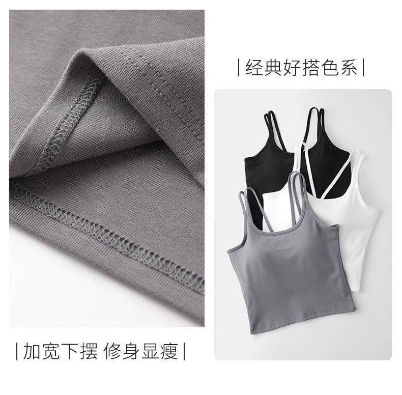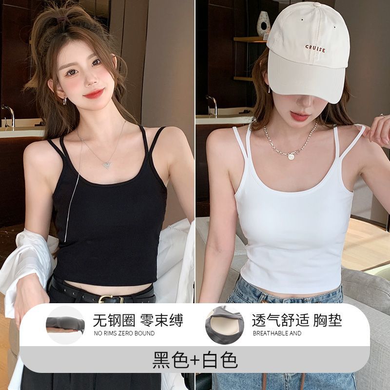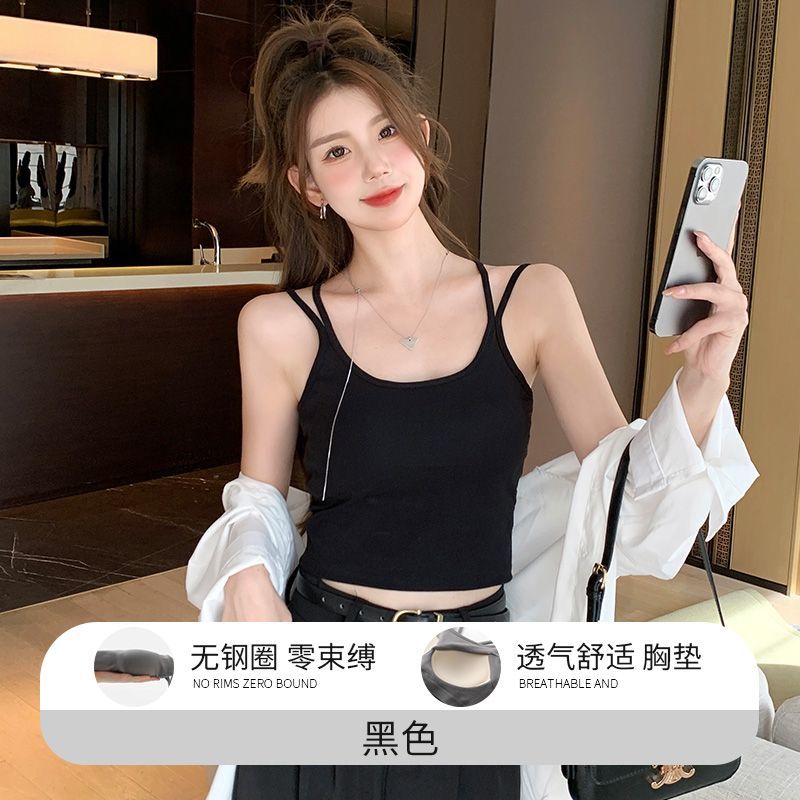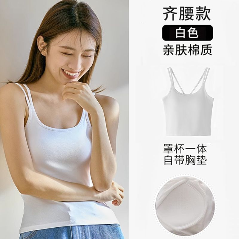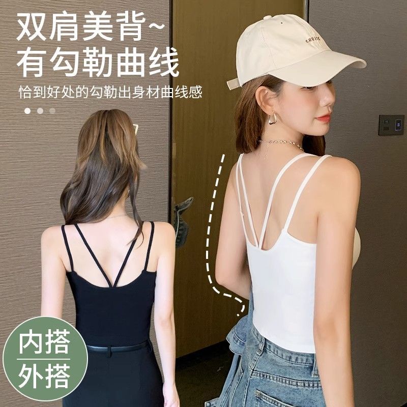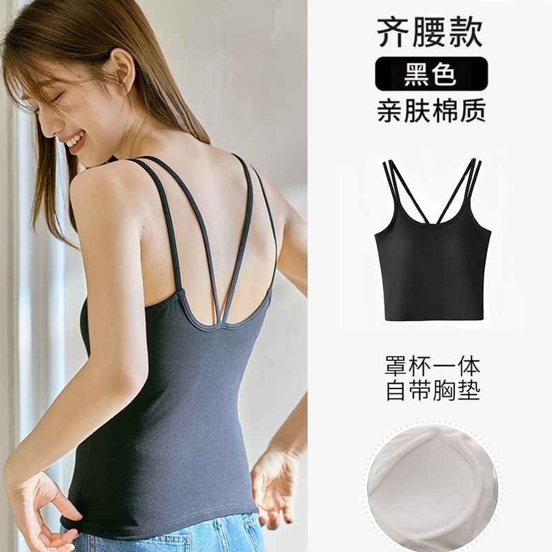 一体式纯棉吊带背心早秋上衣女新款无袖可外穿内搭打底甜辣美背薄