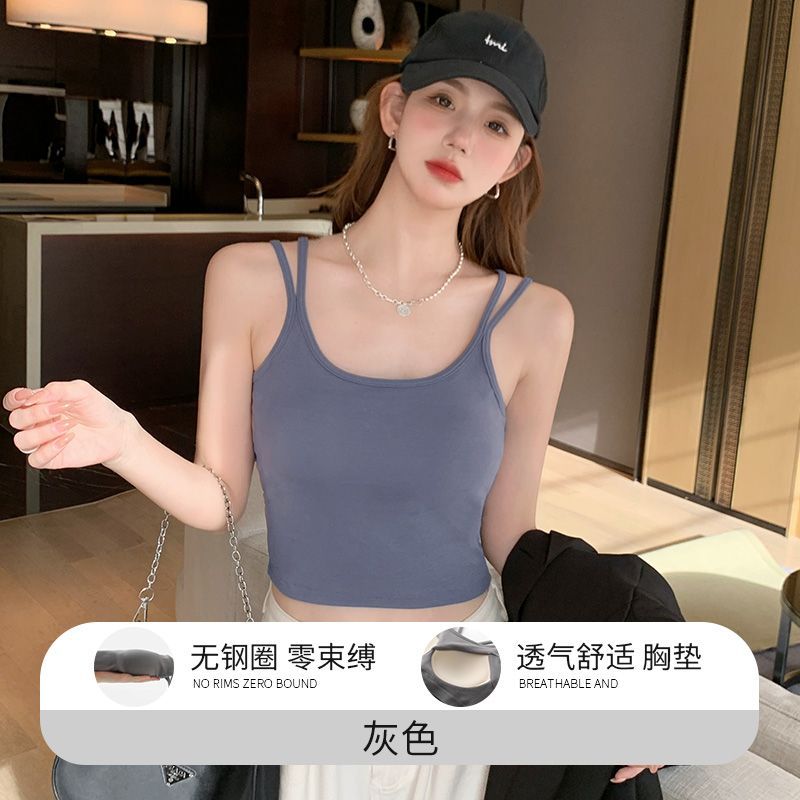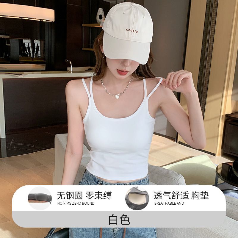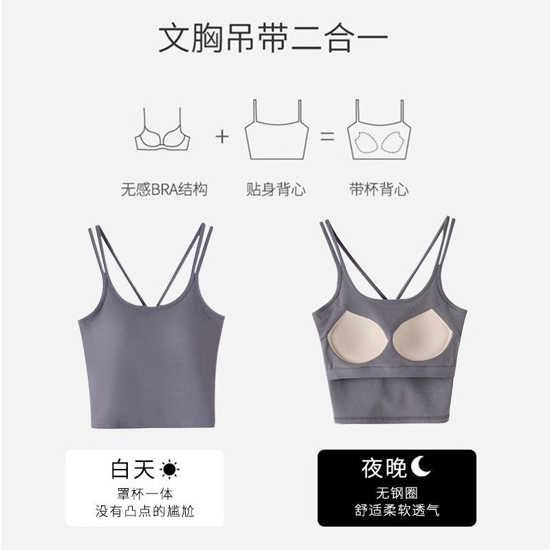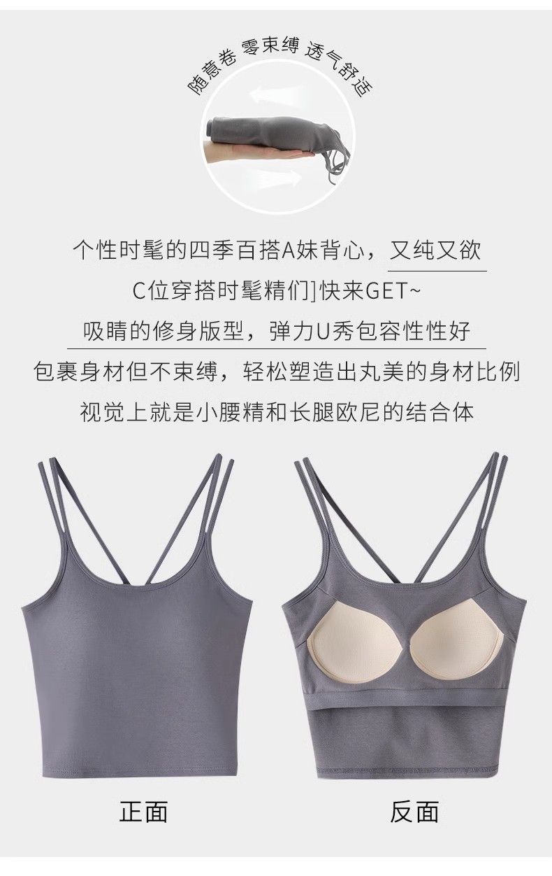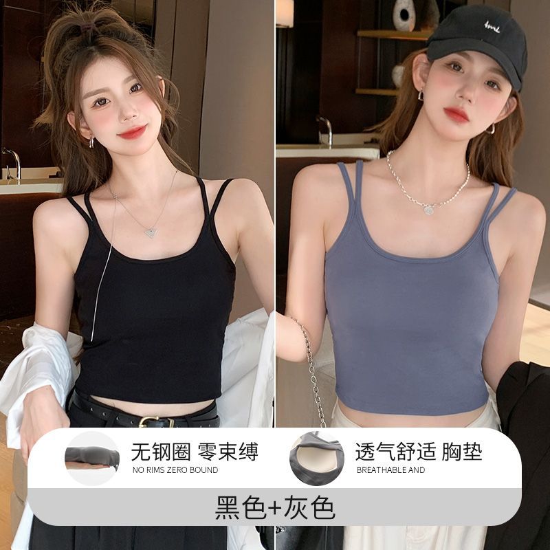 一体式纯棉吊带背心早秋上衣女新款无袖可外穿内搭打底甜辣美背薄