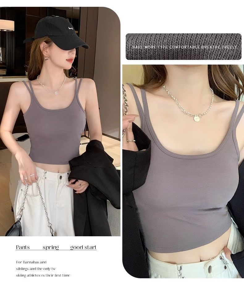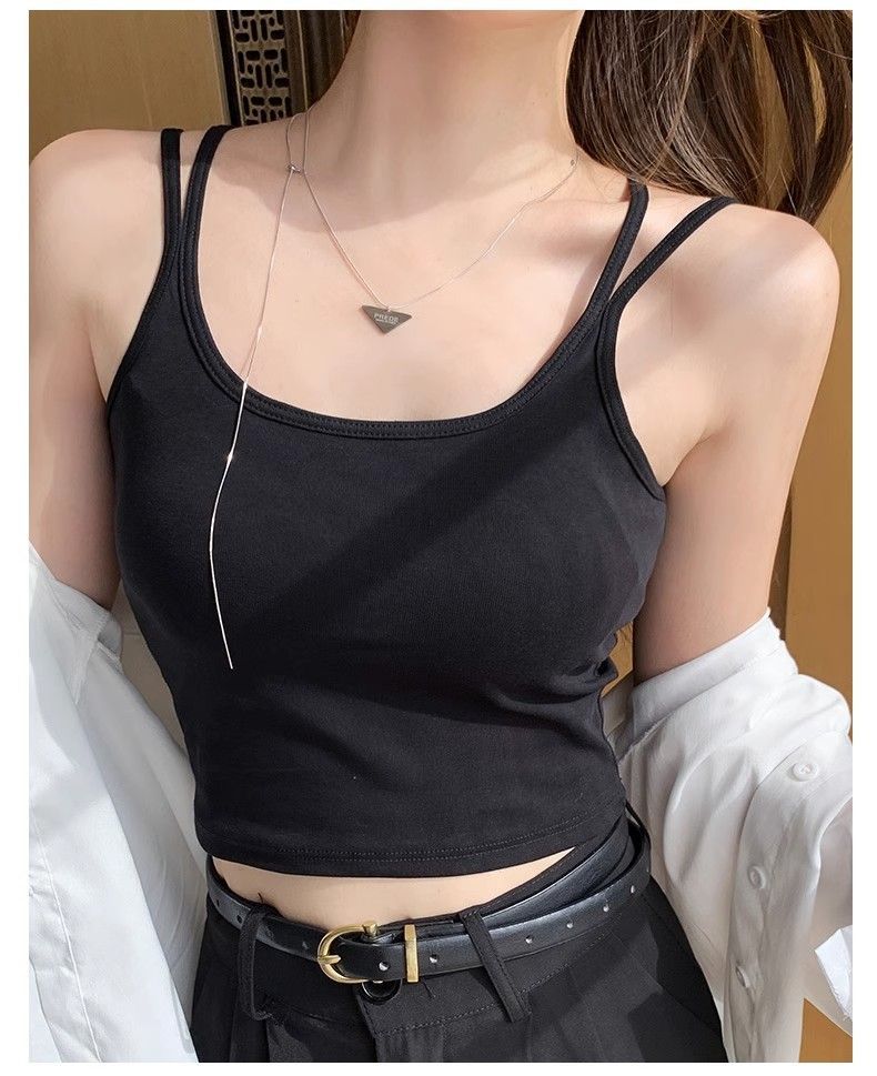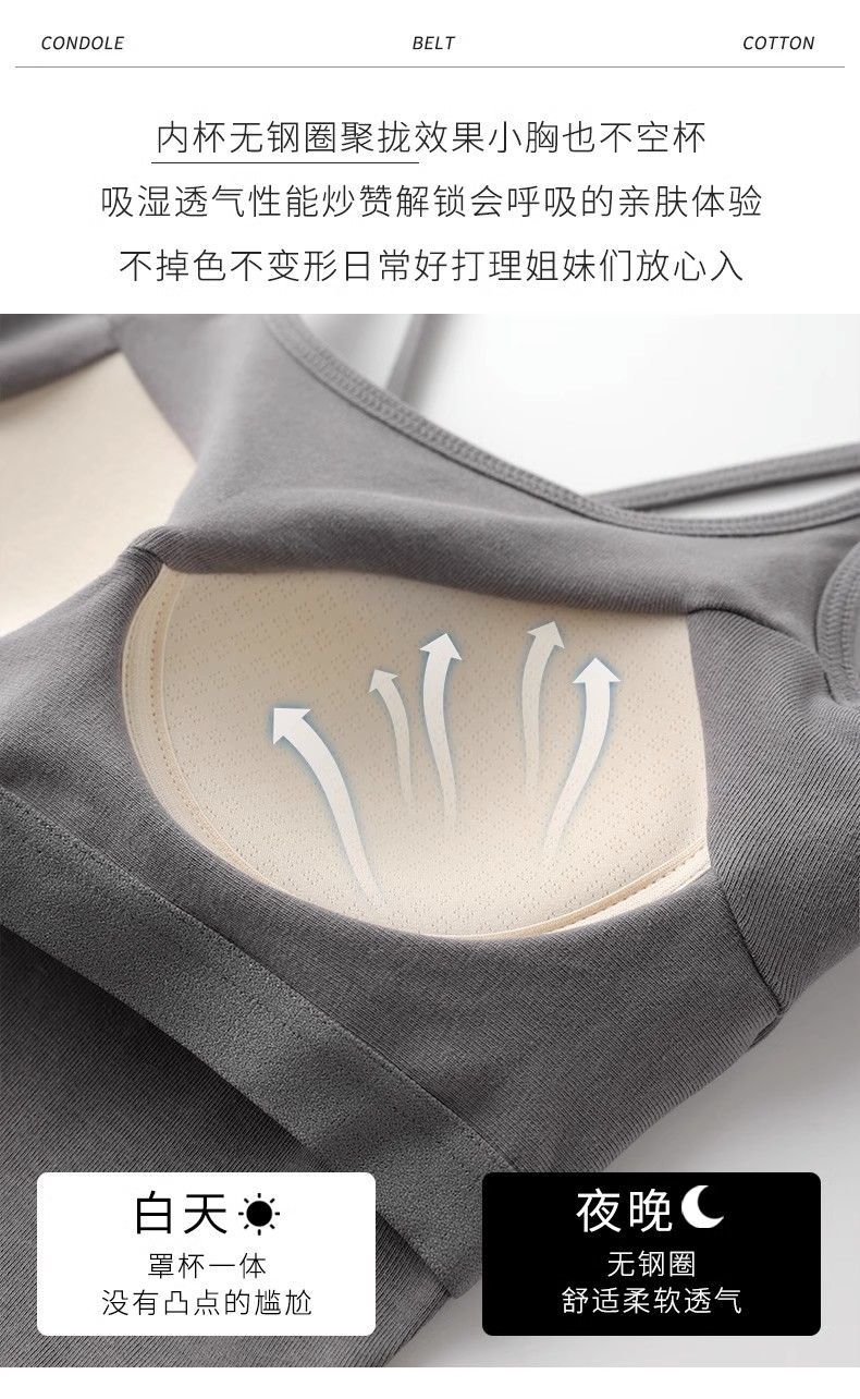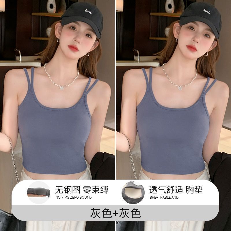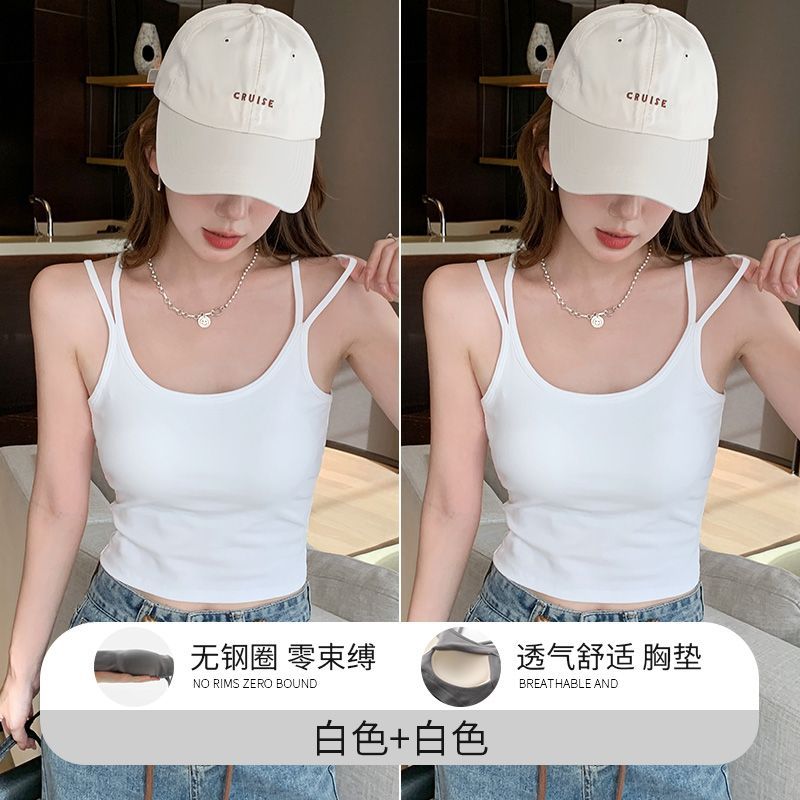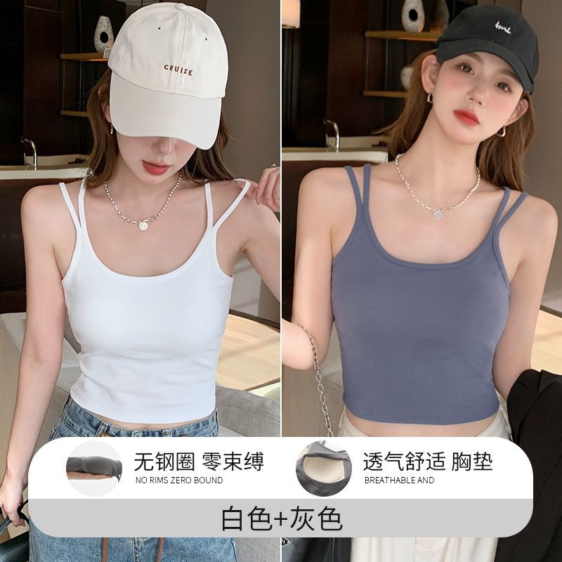 一体式纯棉吊带背心早秋上衣女新款无袖可外穿内搭打底甜辣美背薄