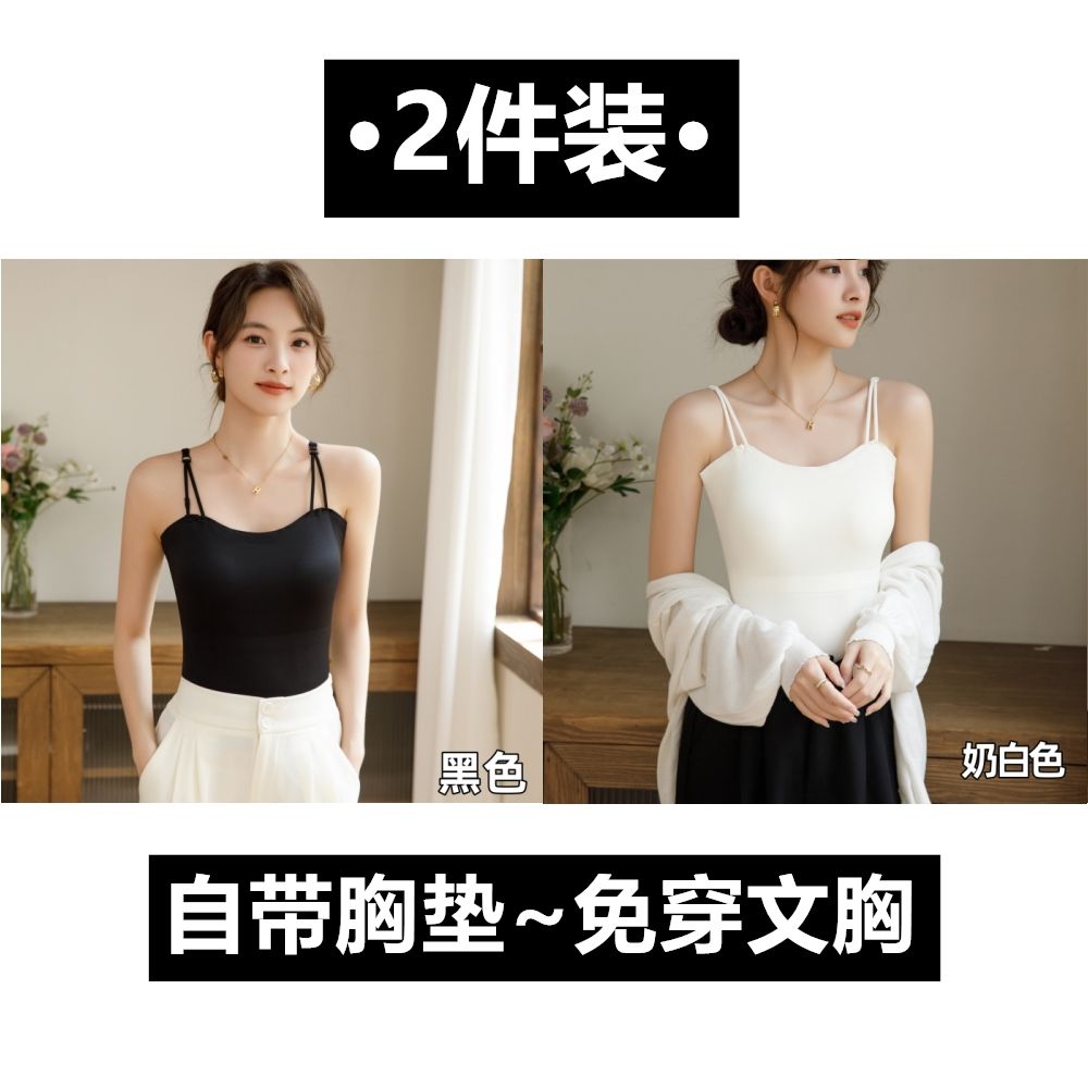 冰丝裸感无痕吊带内衣一体带胸垫防走光抹胸内搭女士显瘦吊带背心