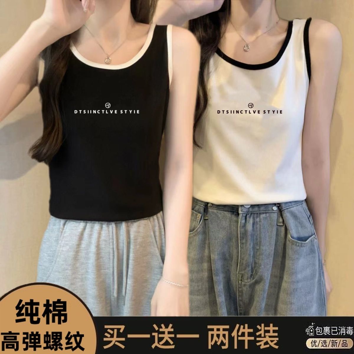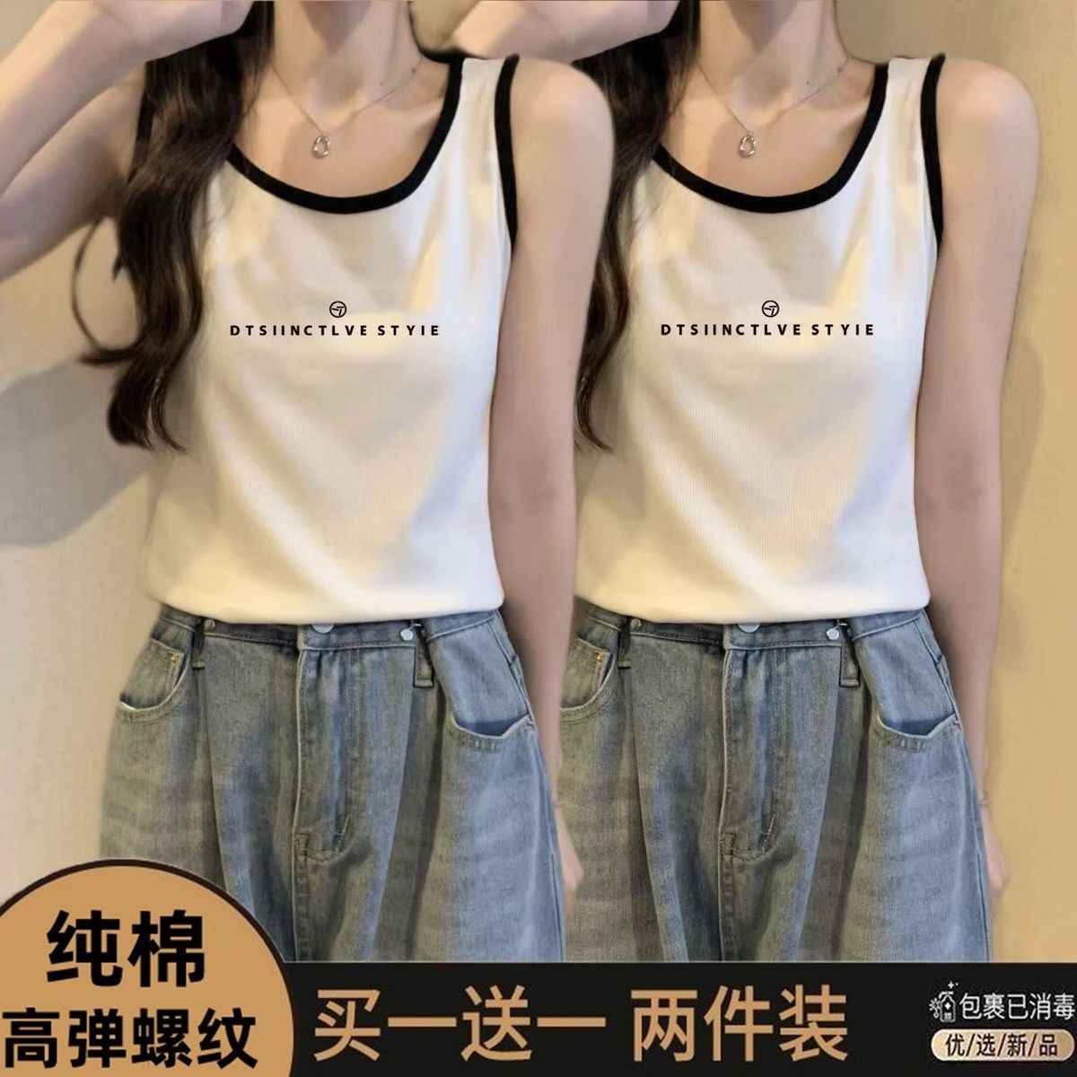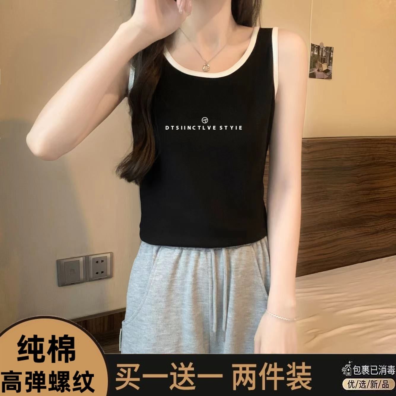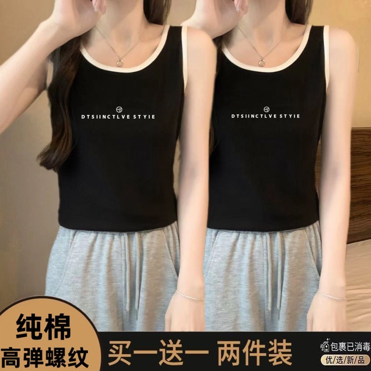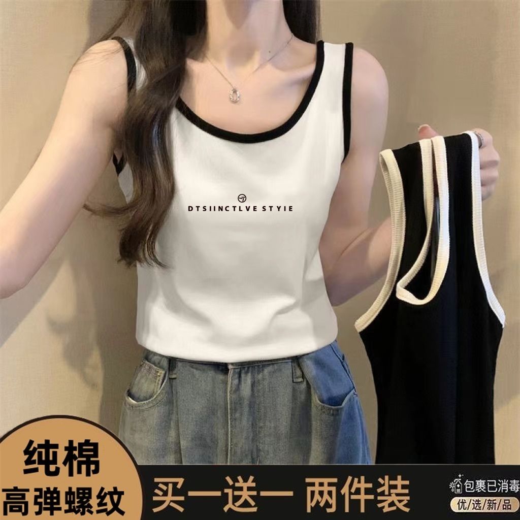 单/两件装纯棉大码夏季吊带背心女胖mm外穿打底显瘦无袖撞色上衣
