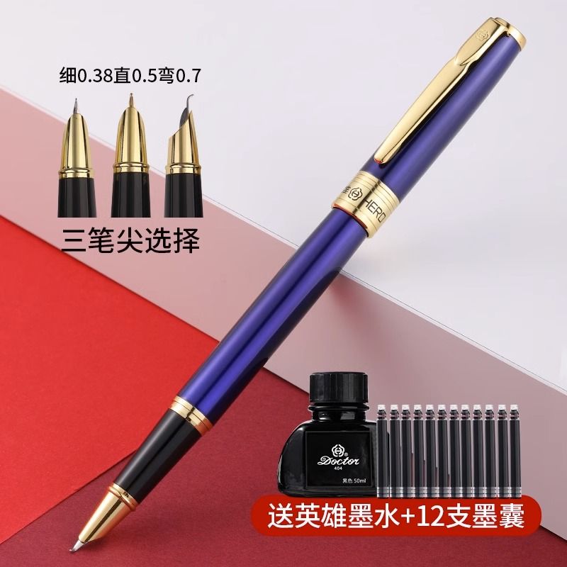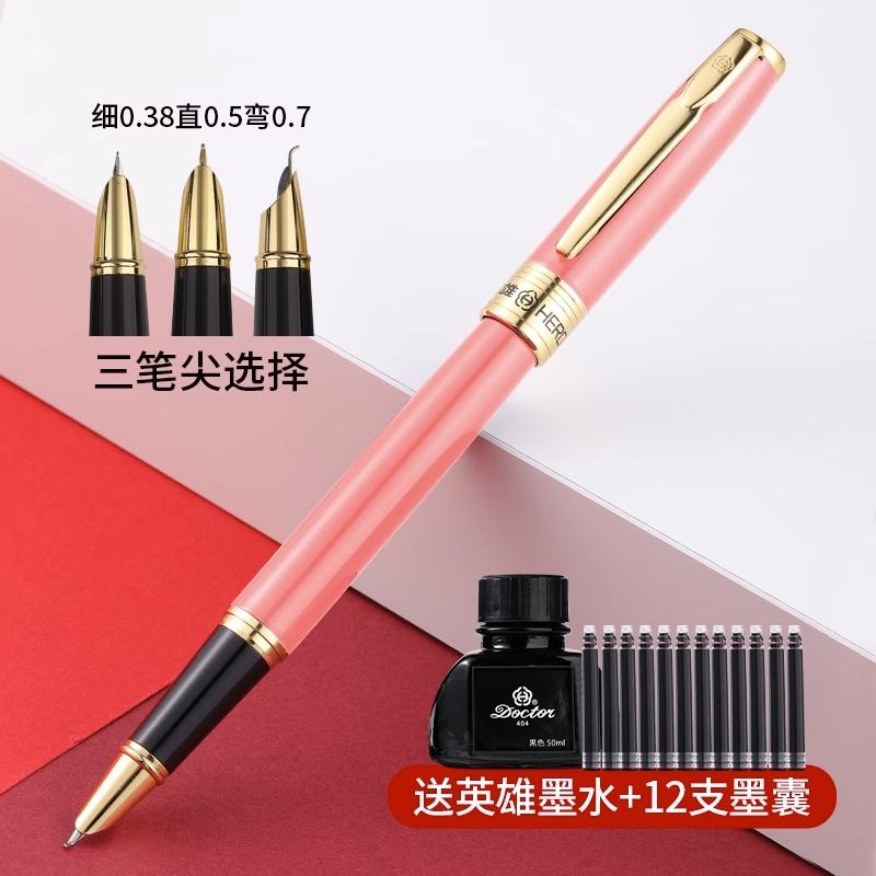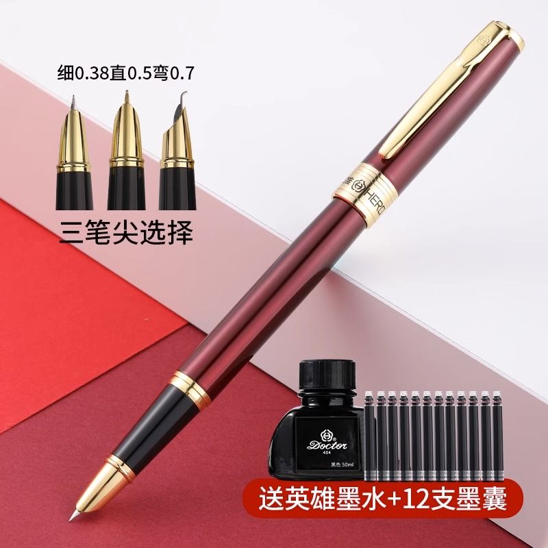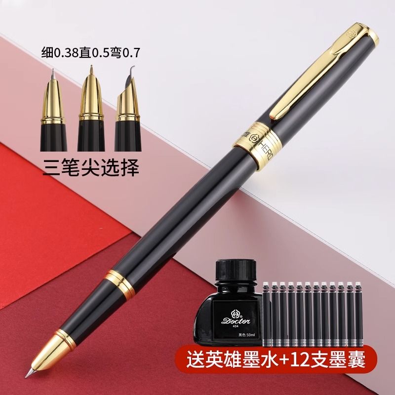 英雄牌钢笔学生专用练字书法美工弯头暗尖硬笔可替换墨囊刻字礼品