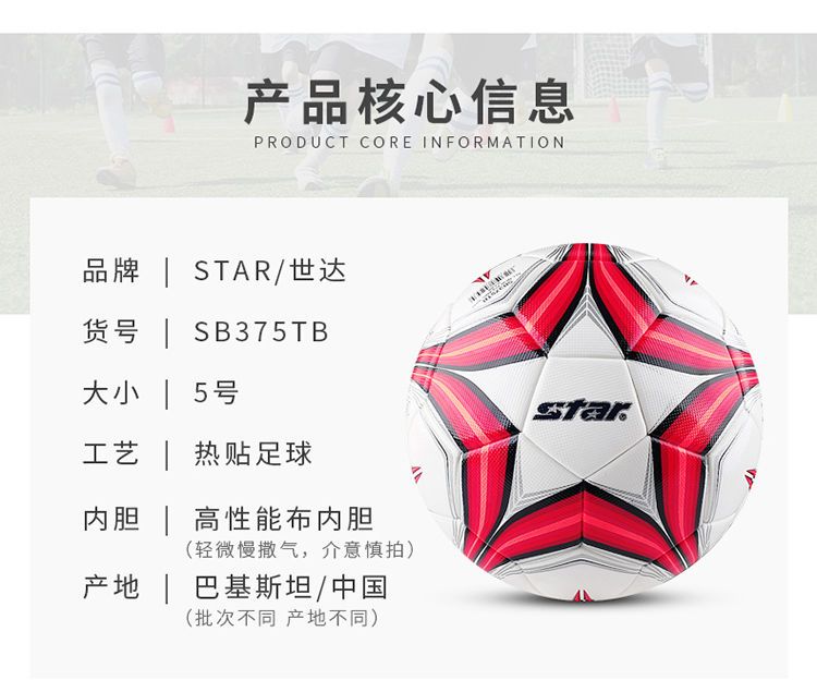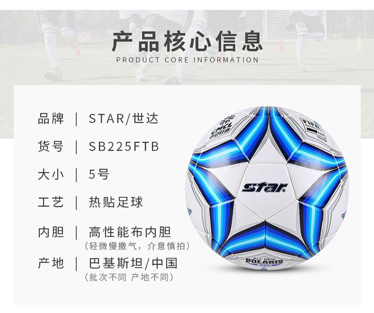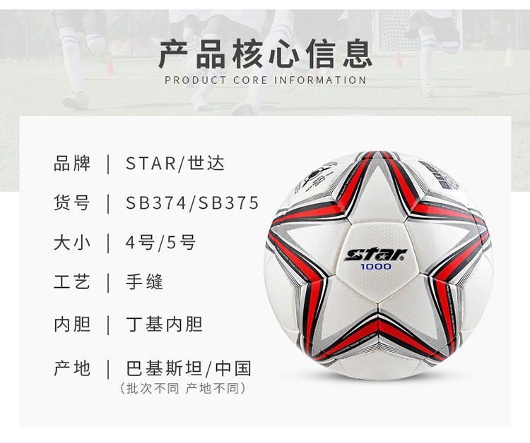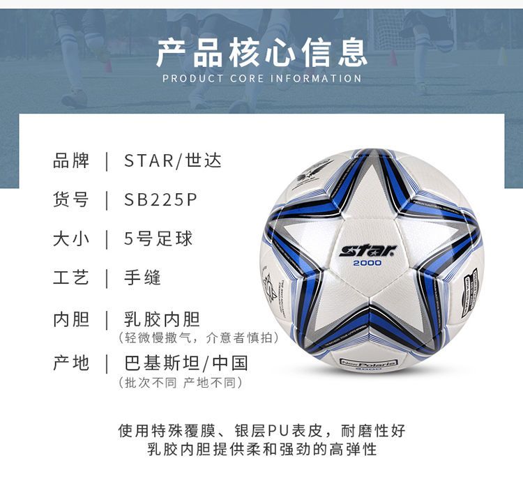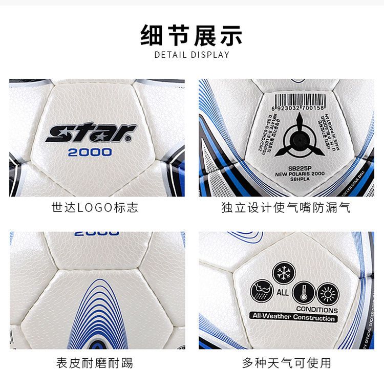 Star世达足球2000比赛用球5号1000体考SB225P耐磨PU训练4号热粘合