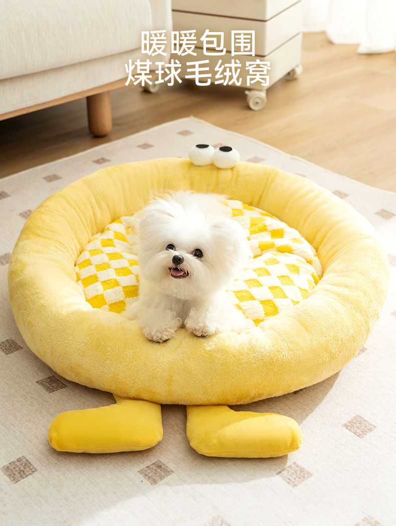 秋冬季狗窝煤球温暖毛绒窝保暖小型犬比熊泰迪冬天睡觉宠物狗垫子