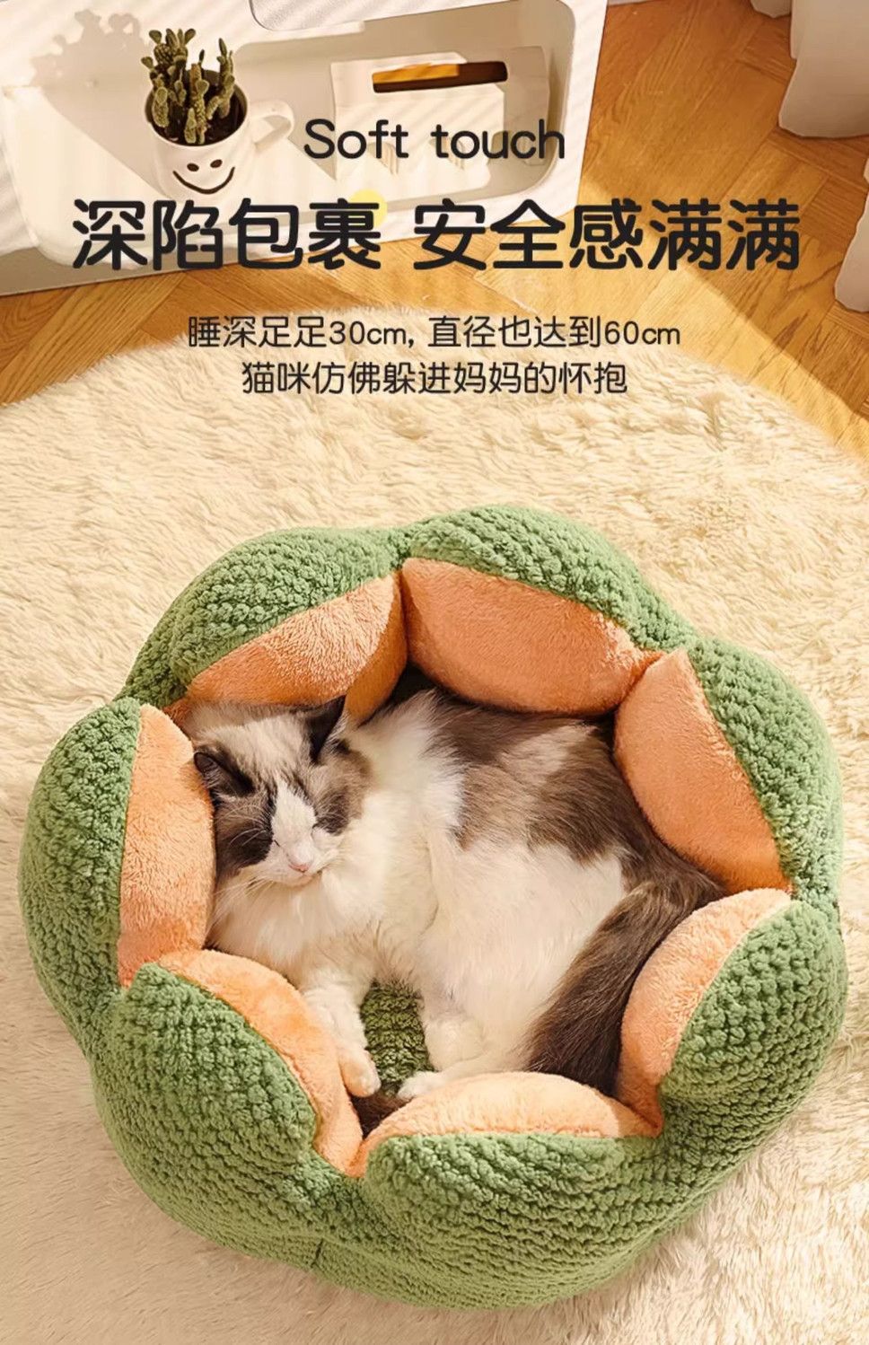 花瓣猫窝秋季冬季保暖封闭式猫咪窝四季通用猫垫子睡觉用柔软睡窝