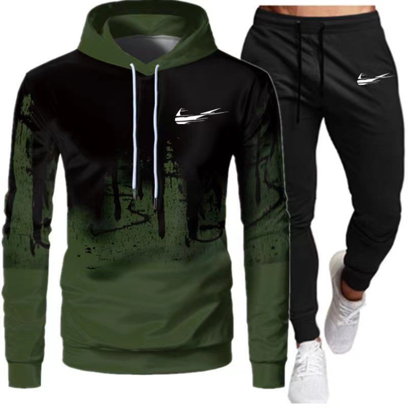 2024新款秋季长袖长裤外套潮流连帽运动休闲印花套装男厂家现货