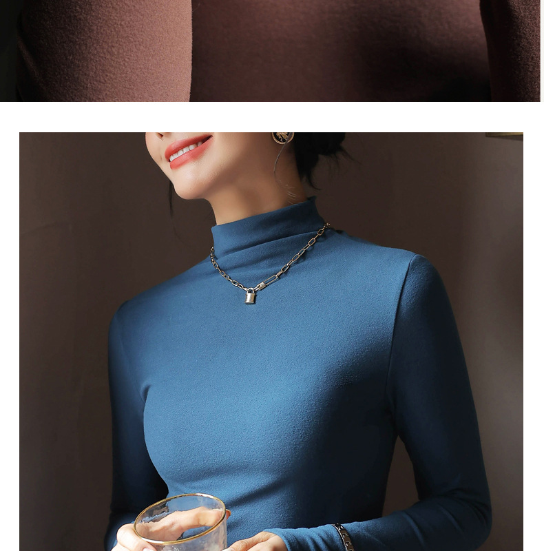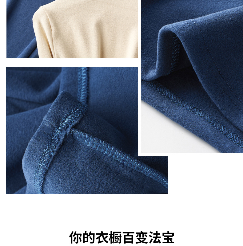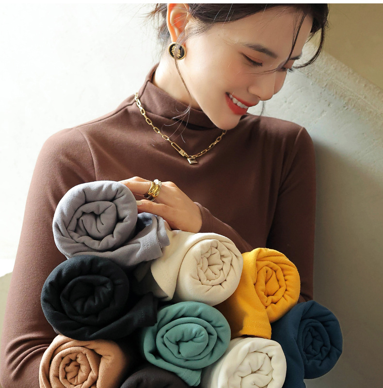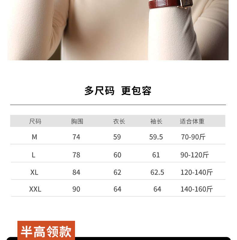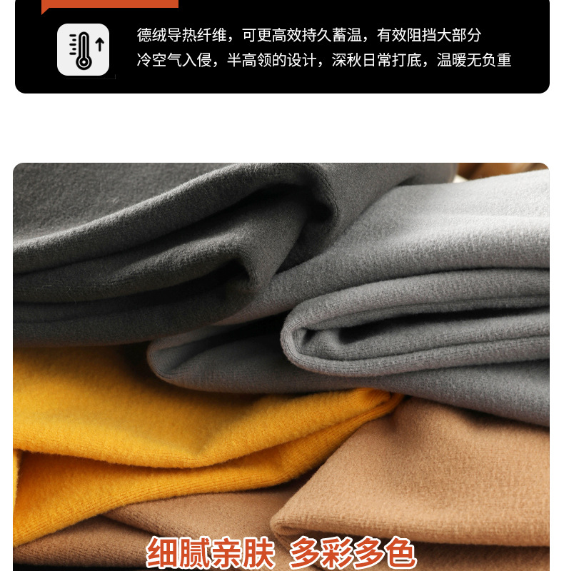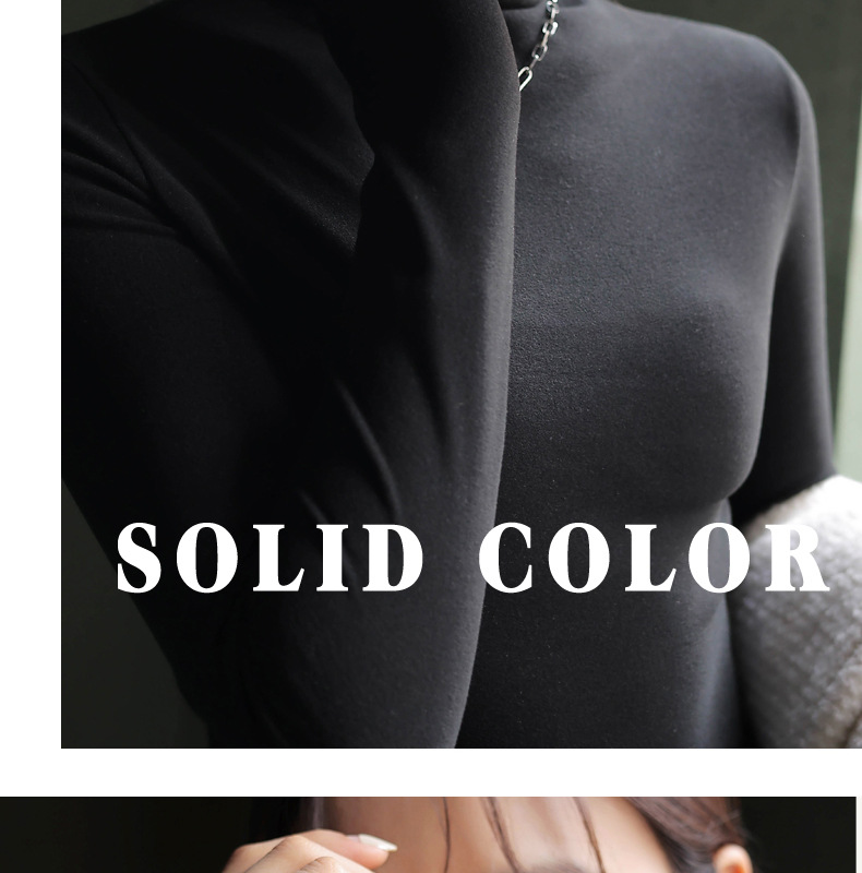 半高领中领德绒加绒打底衫女内搭秋冬修身纯色打底衣黑色紧身长袖
