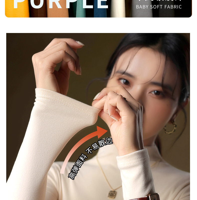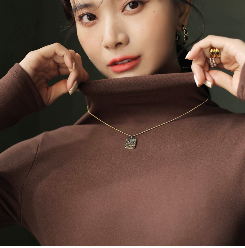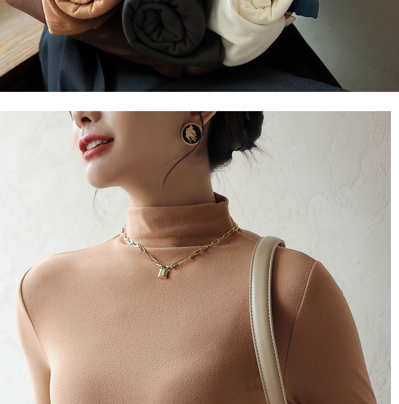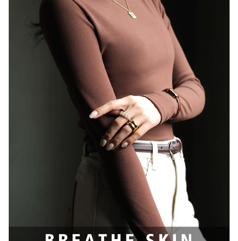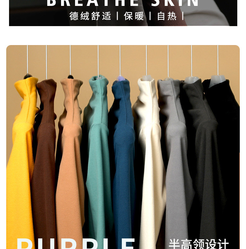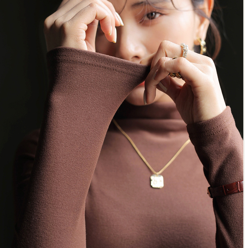 半高领中领德绒加绒打底衫女内搭秋冬修身纯色打底衣黑色紧身长袖