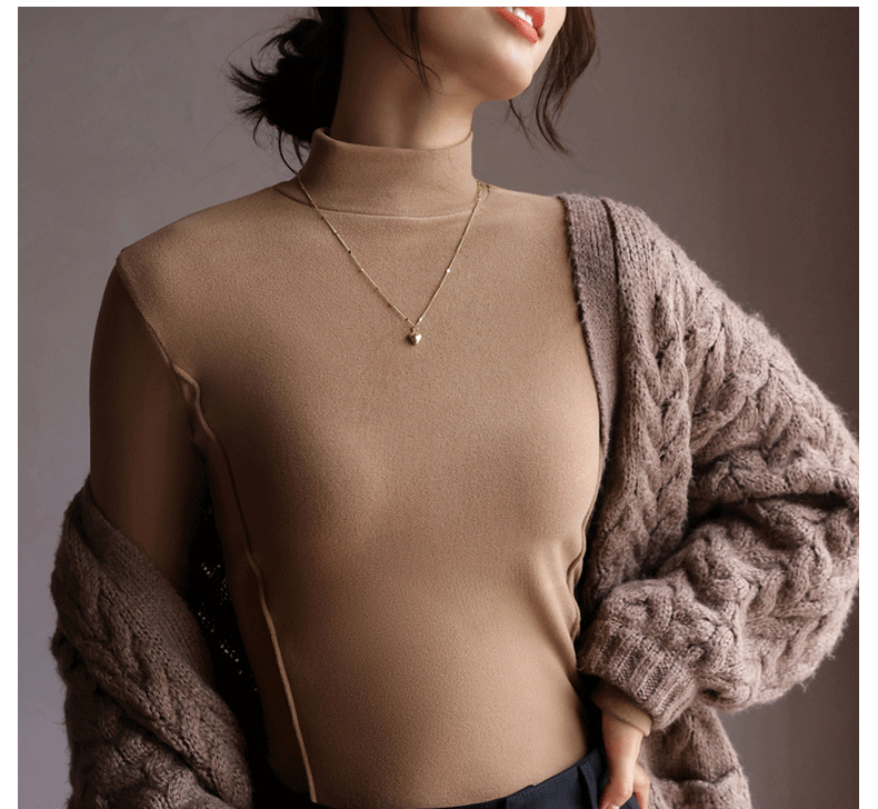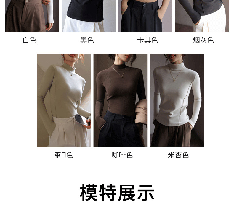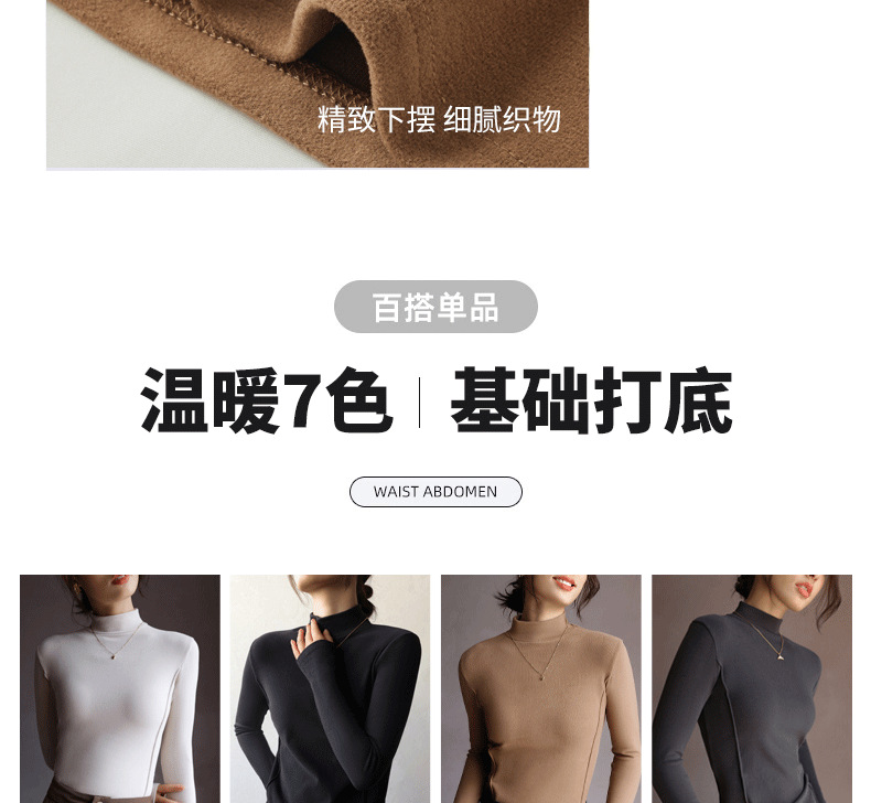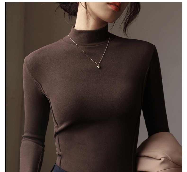 【丰色服饰打底衣】微米德绒半高领打底衫女秋冬加绒内搭长袖上衣