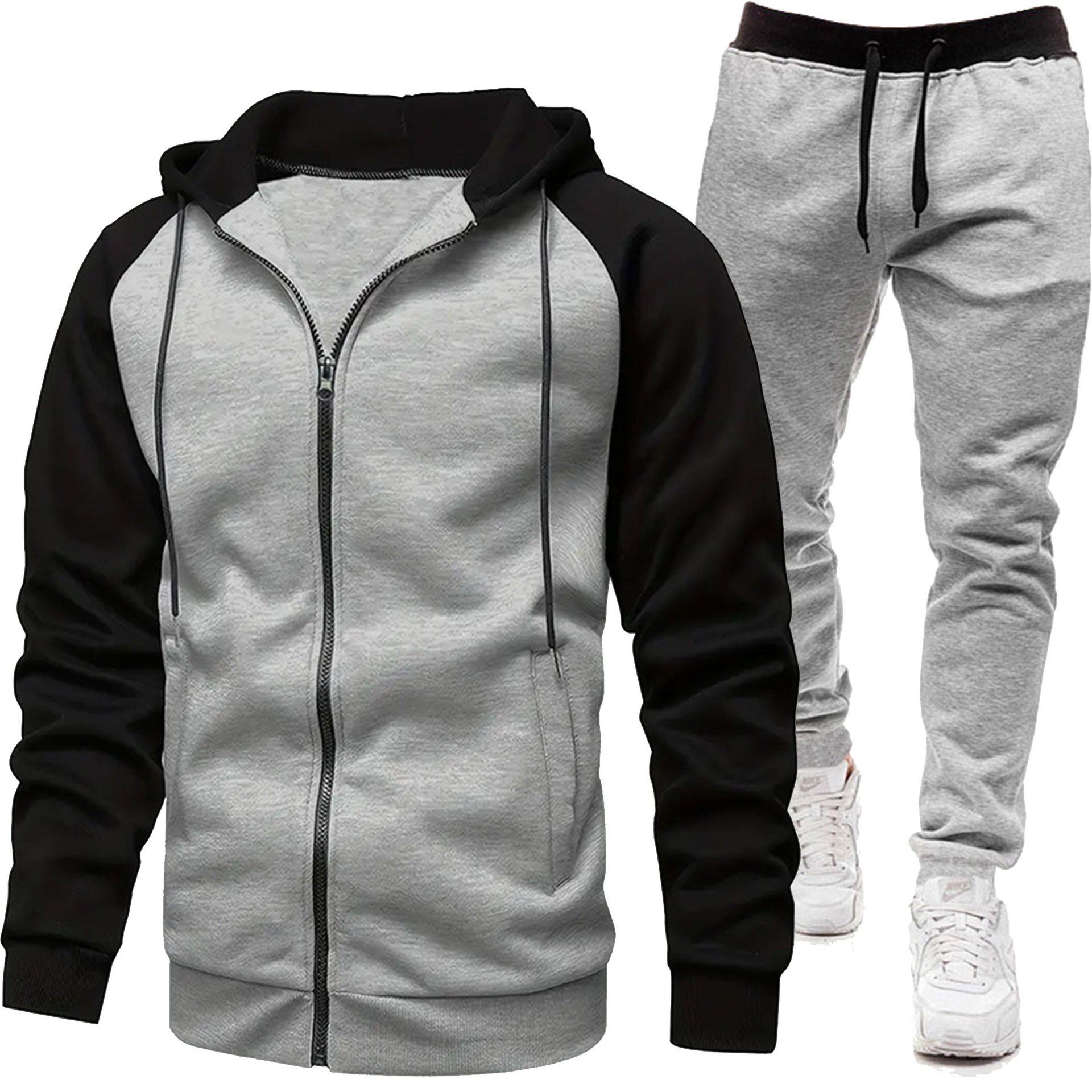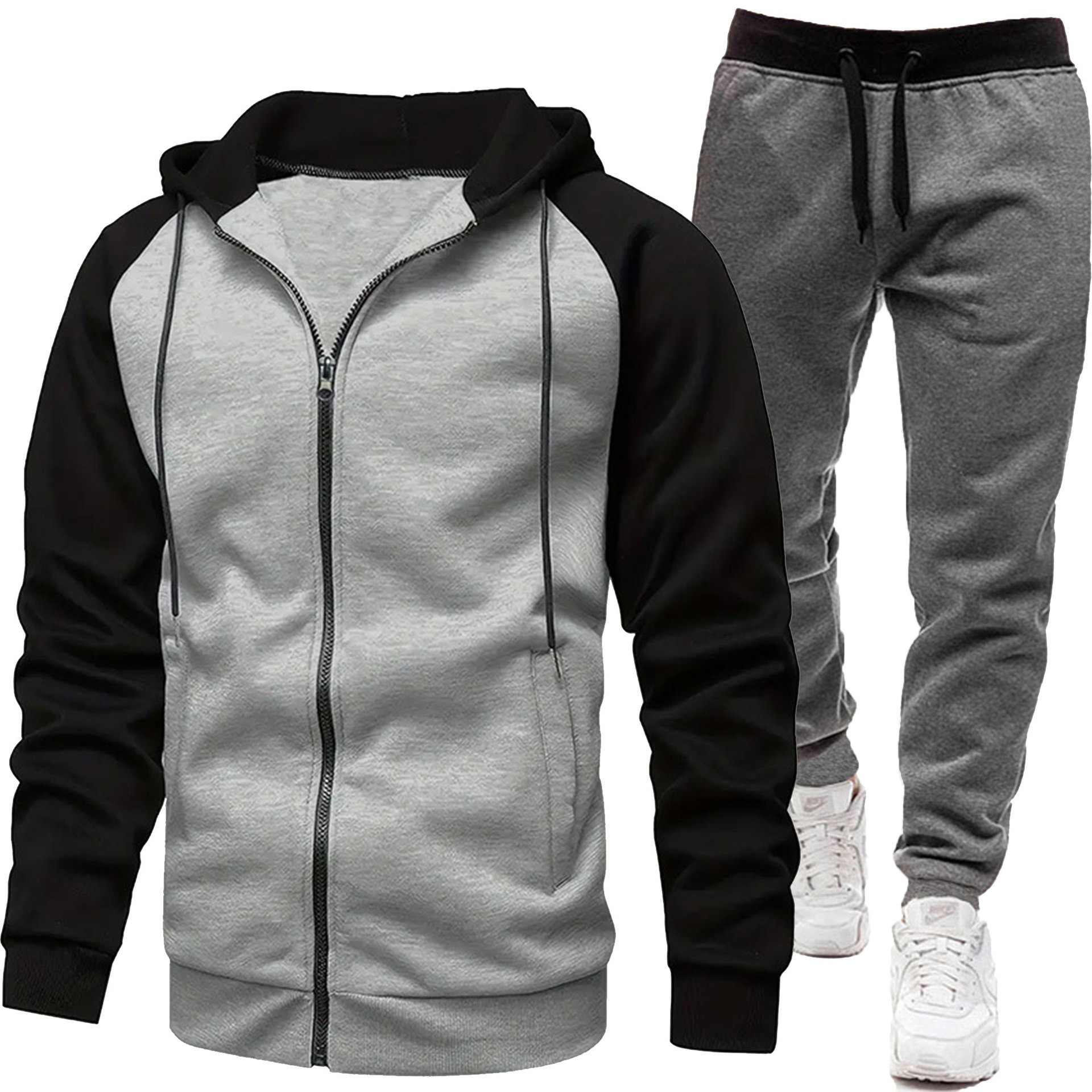 2024跨境新款男士外套秋冬欧美拼色时尚插肩袖休闲卫衣套装运动上