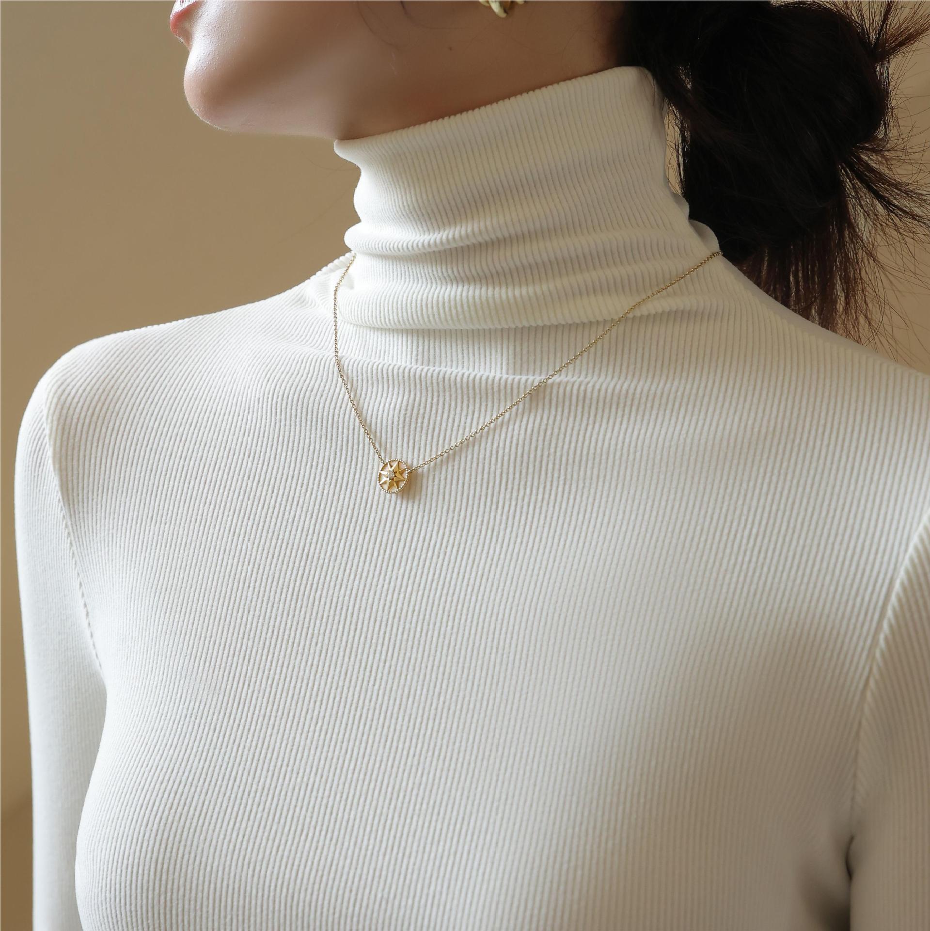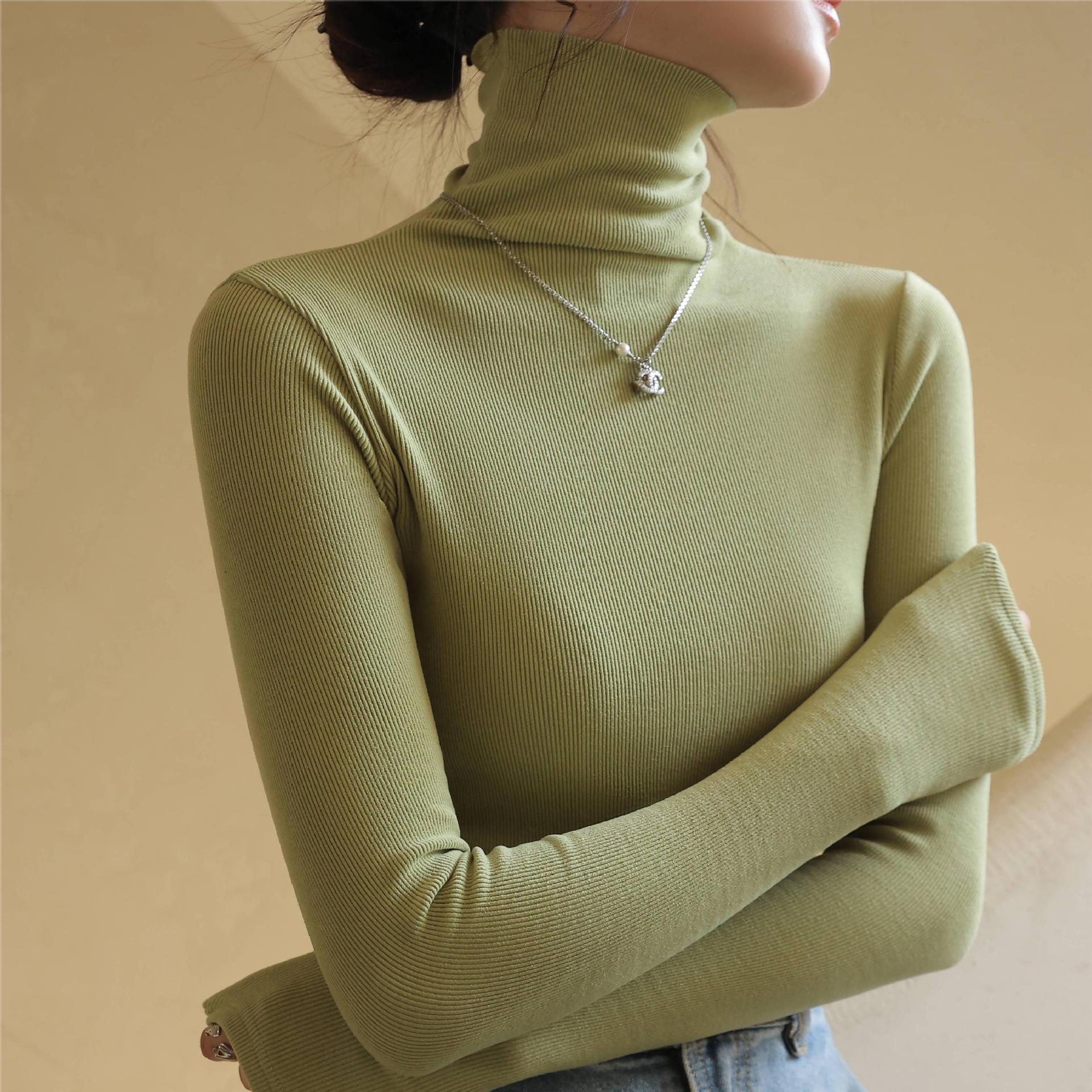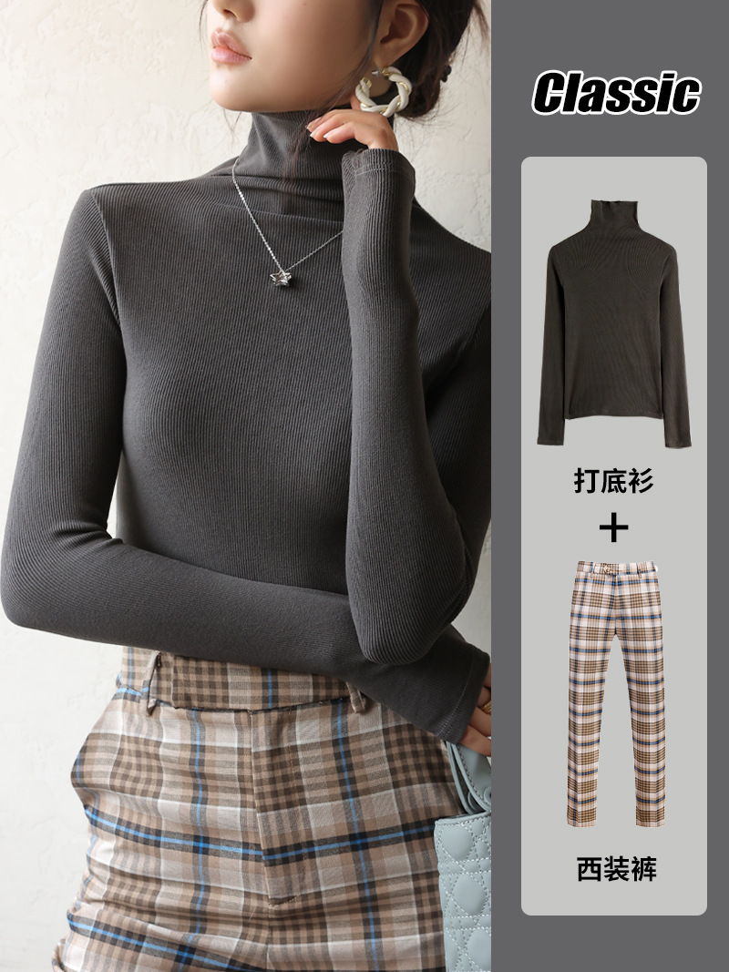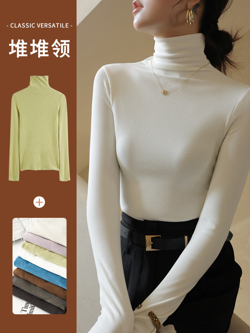 堆堆高领加厚德绒打底衫女装秋冬新款黑白条纹内搭长袖T恤上衣潮