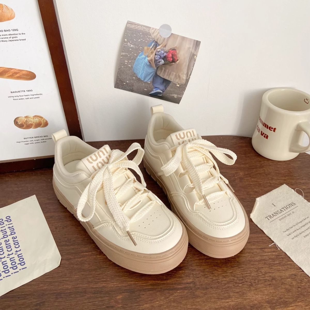 配裙子的小白鞋女2024新款秋季透气女鞋百搭chic鞋子休闲厚底板鞋