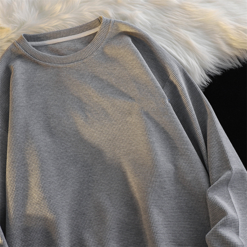 华夫格日系卫衣ins男2024春秋季新款潮牌圆领上衣宽松长袖体恤衫