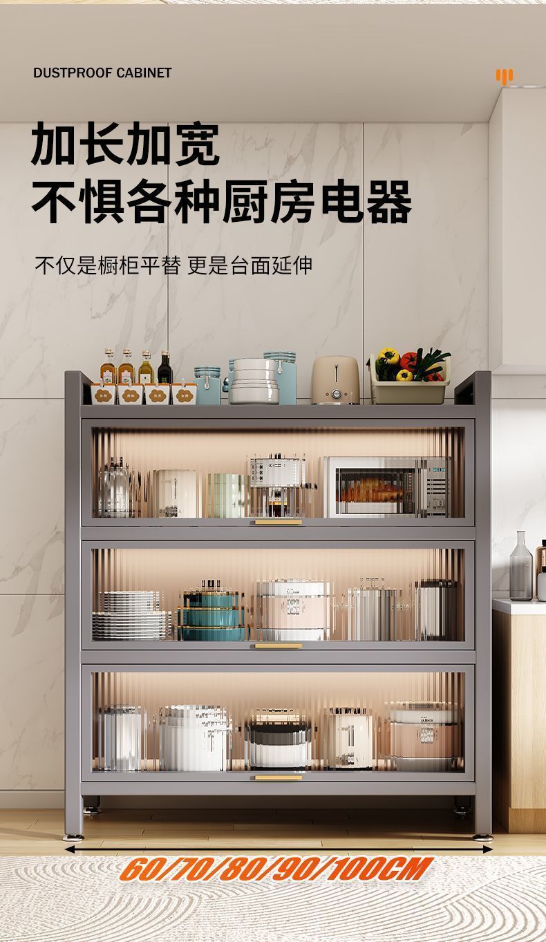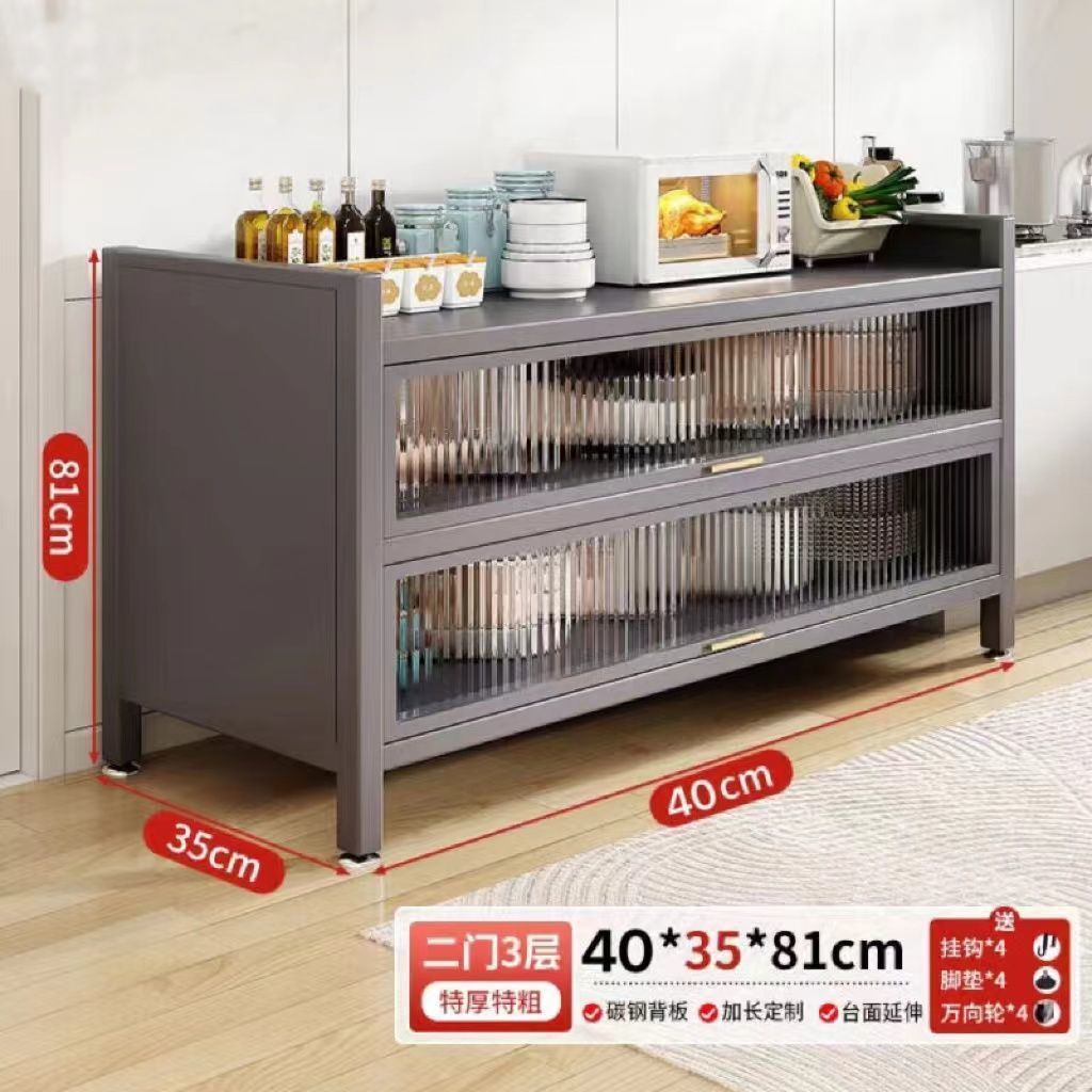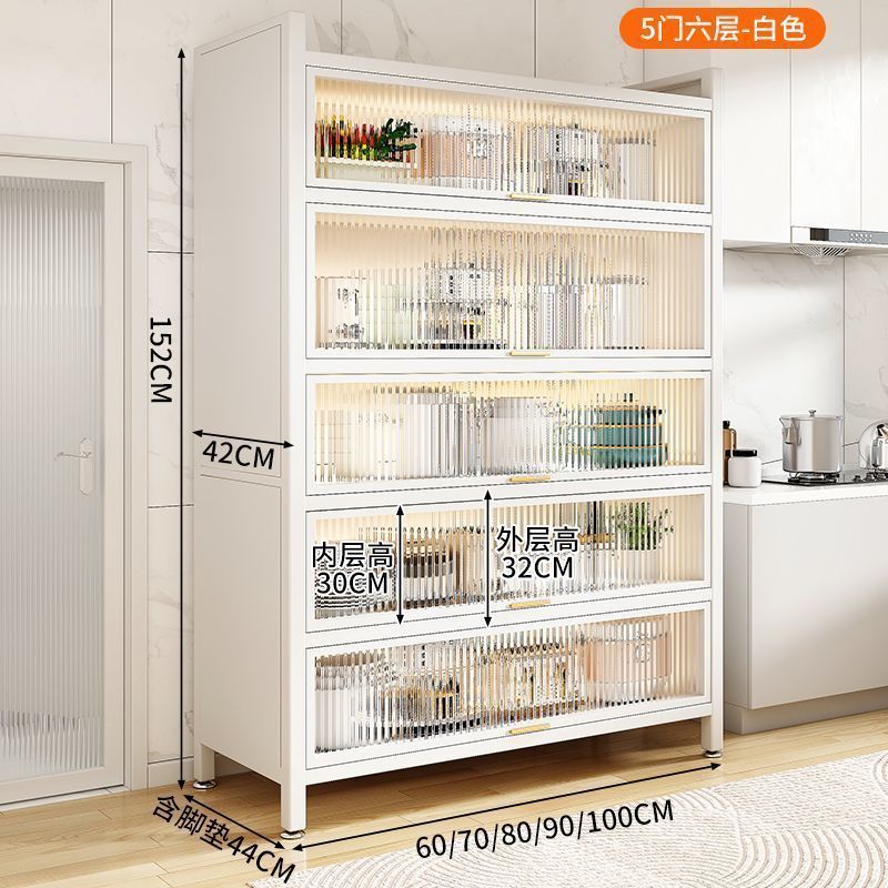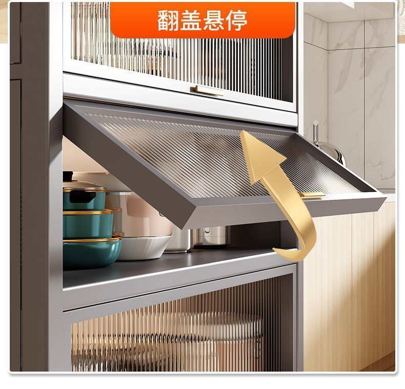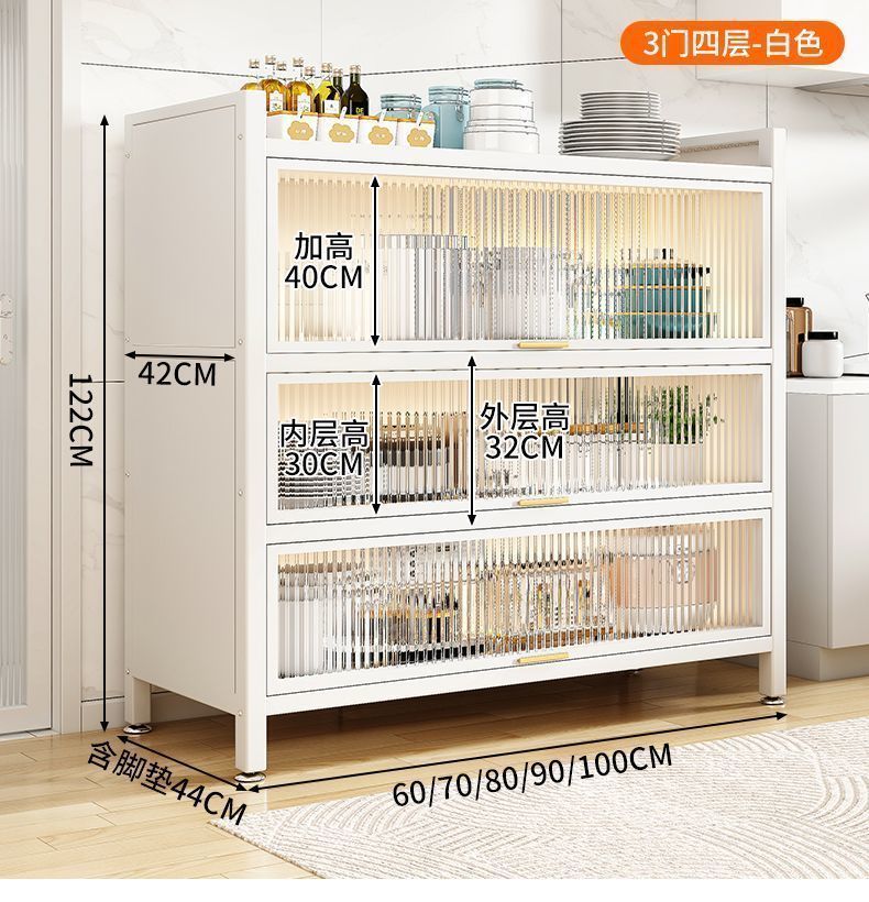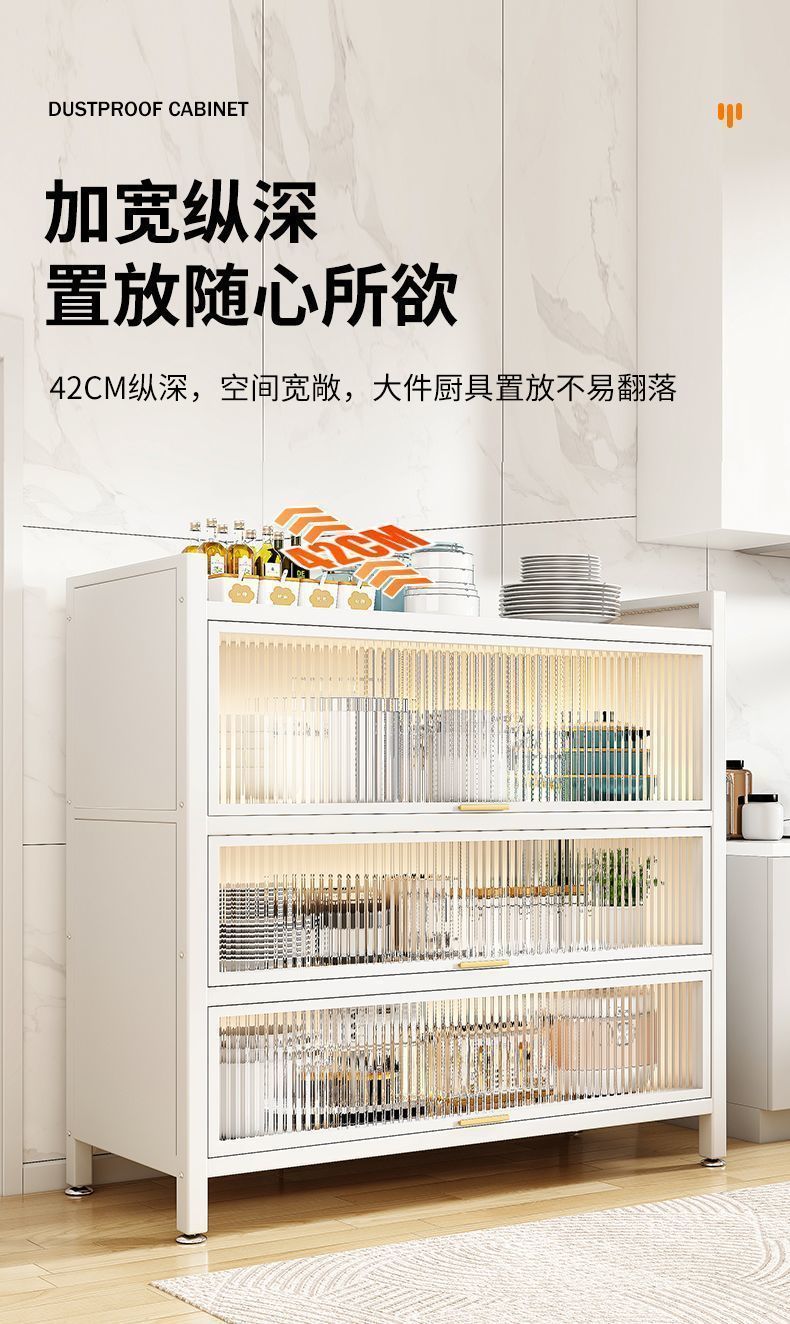 家用翻盖厨房置物架落地多层收纳柜子多功能碗餐边柜橱柜储物柜
