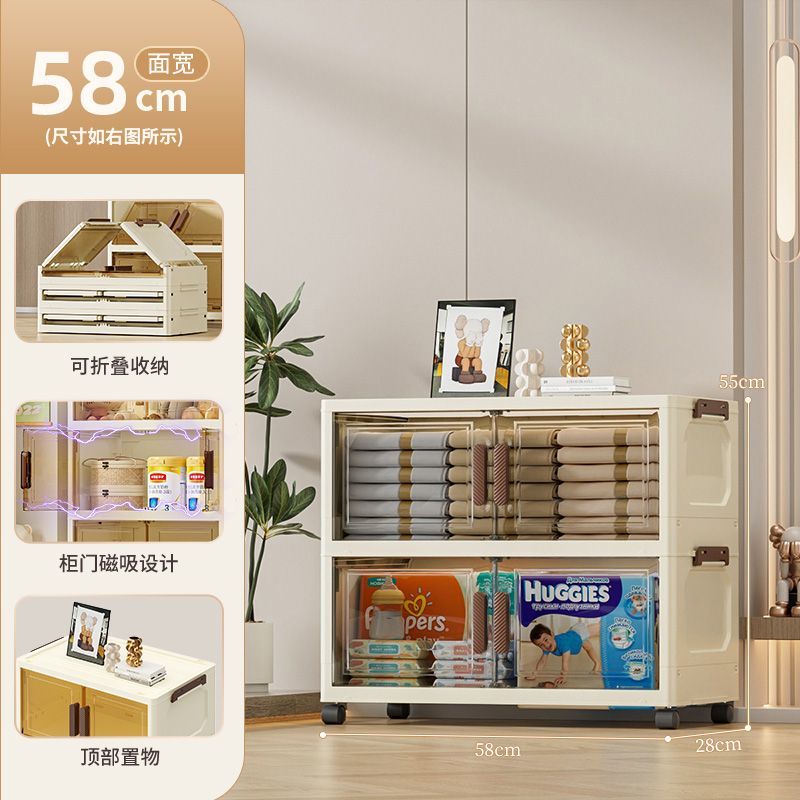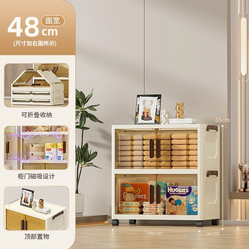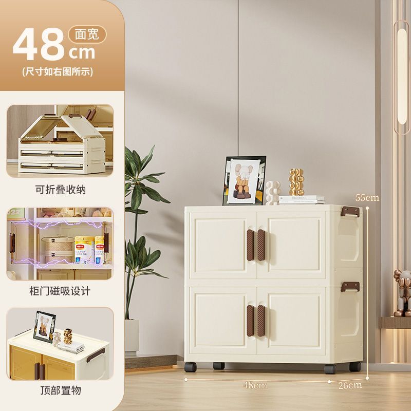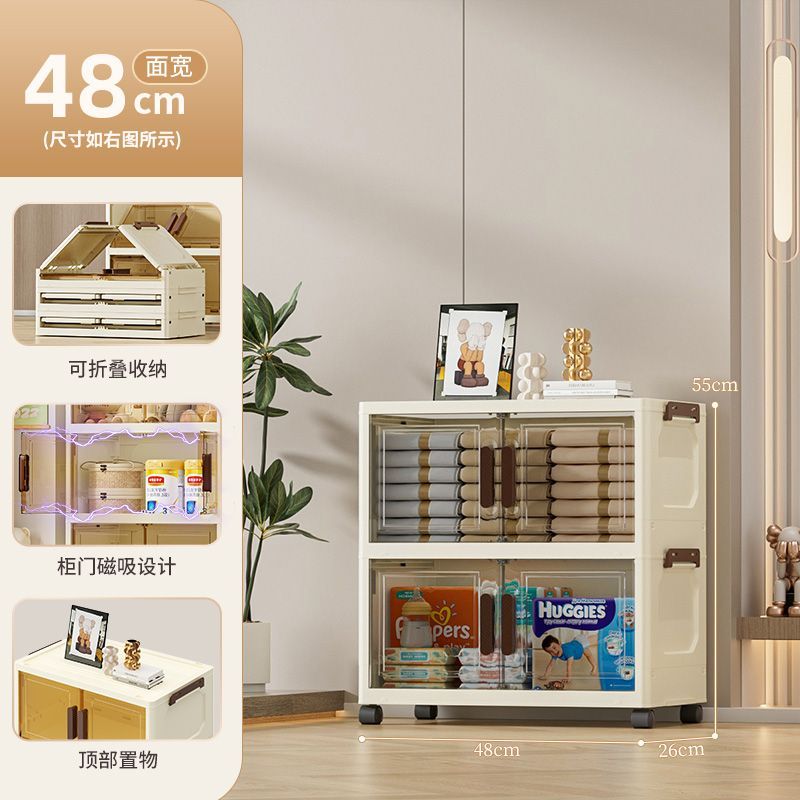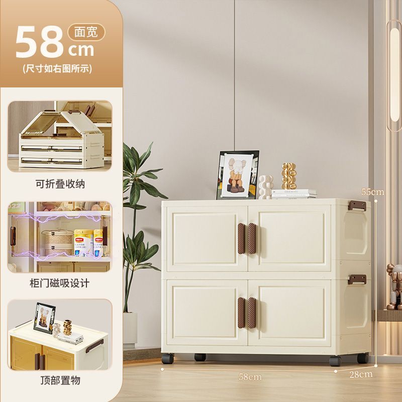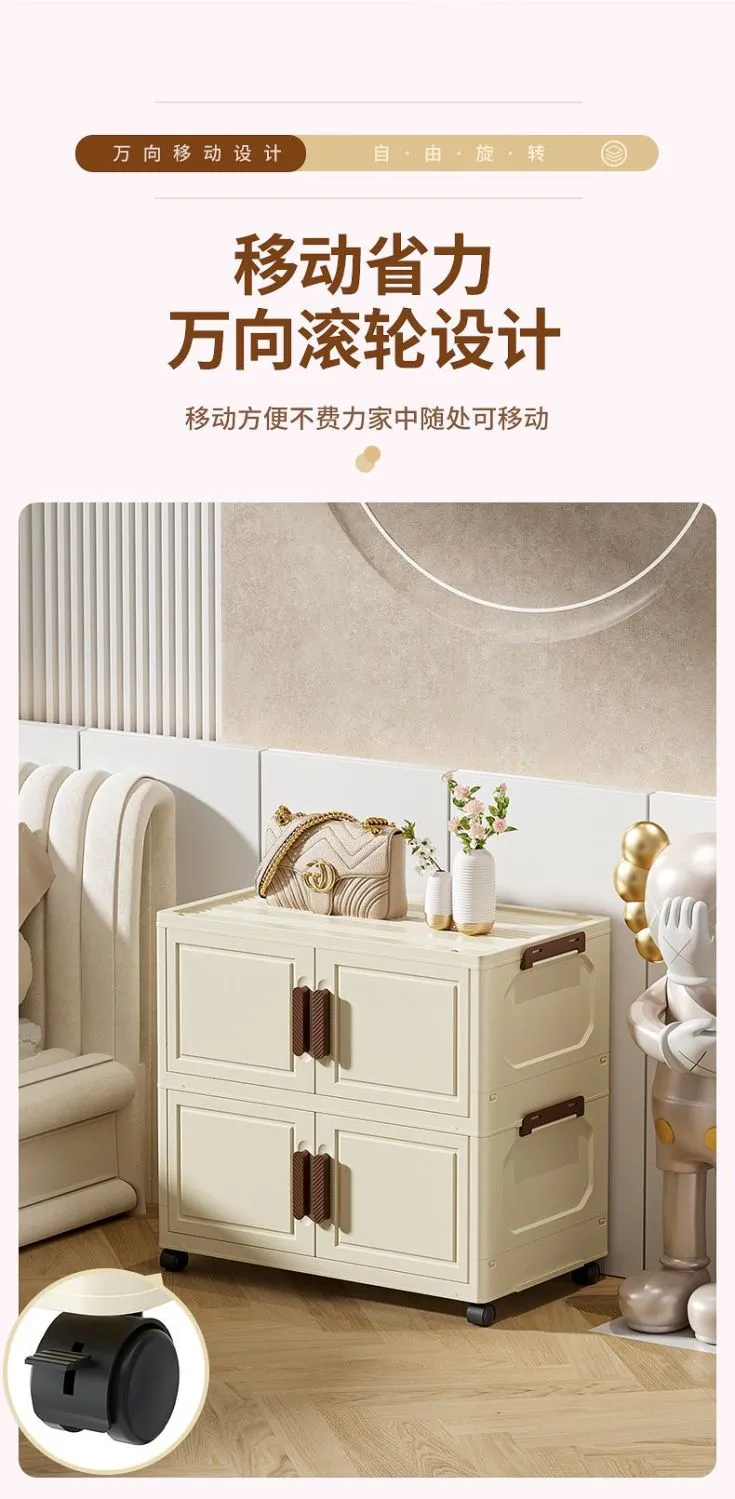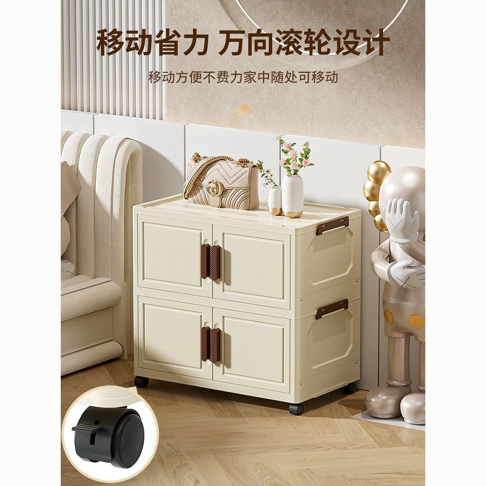 折叠收纳柜免安装带轮双开门多层储物柜家用整理收纳箱客厅储物箱