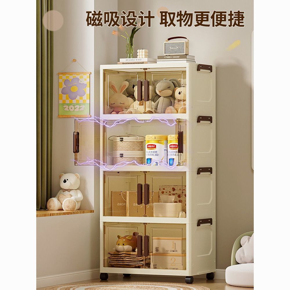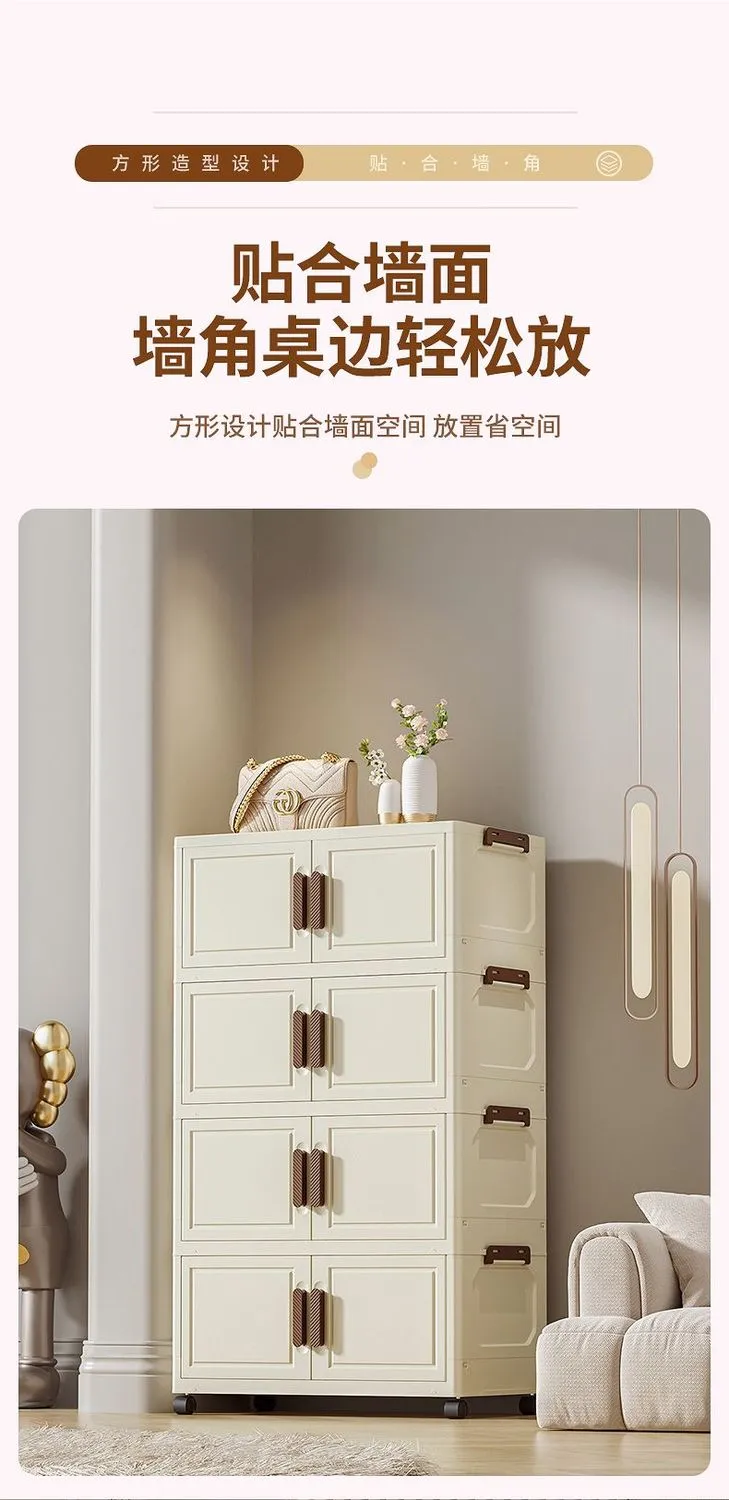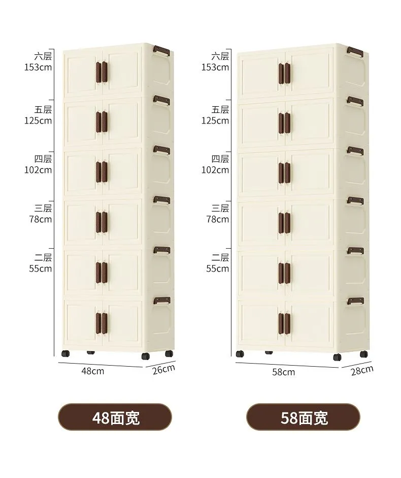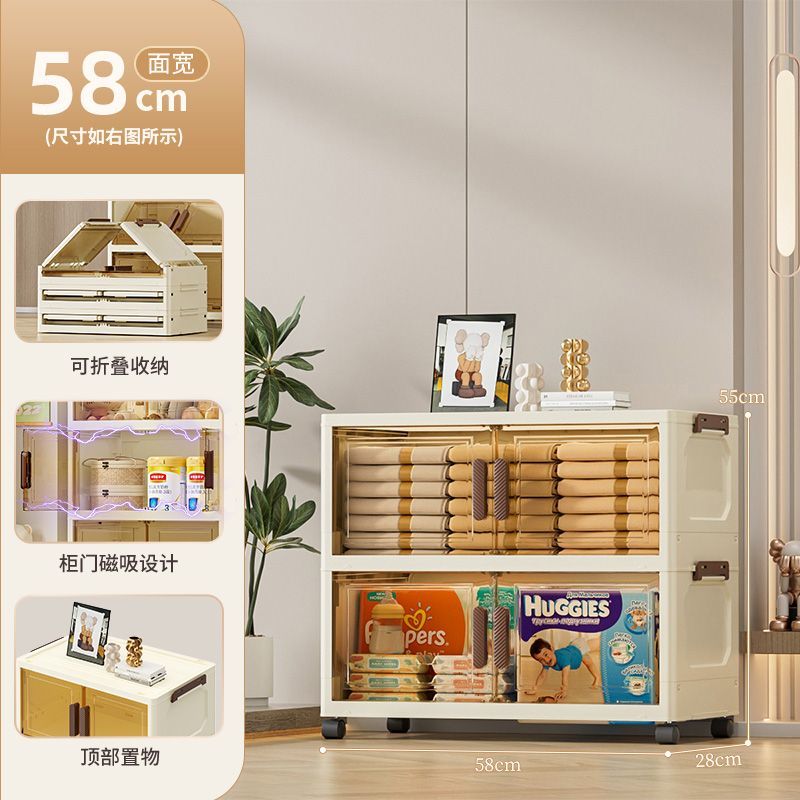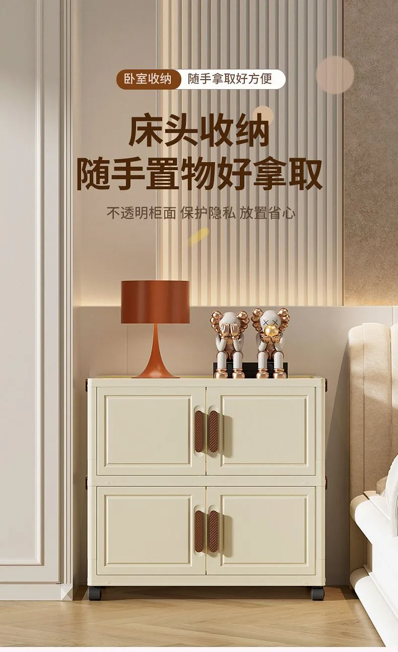 折叠收纳柜免安装带轮双开门多层储物柜家用整理收纳箱客厅储物箱