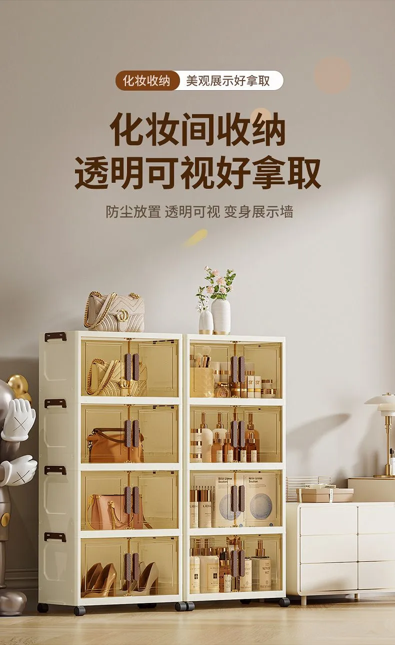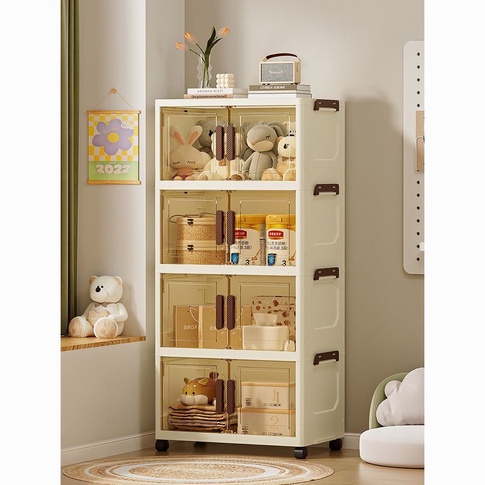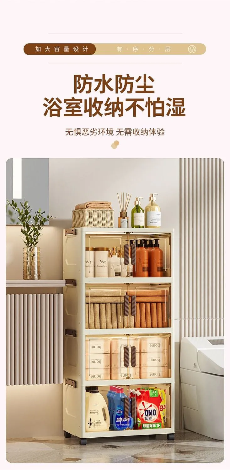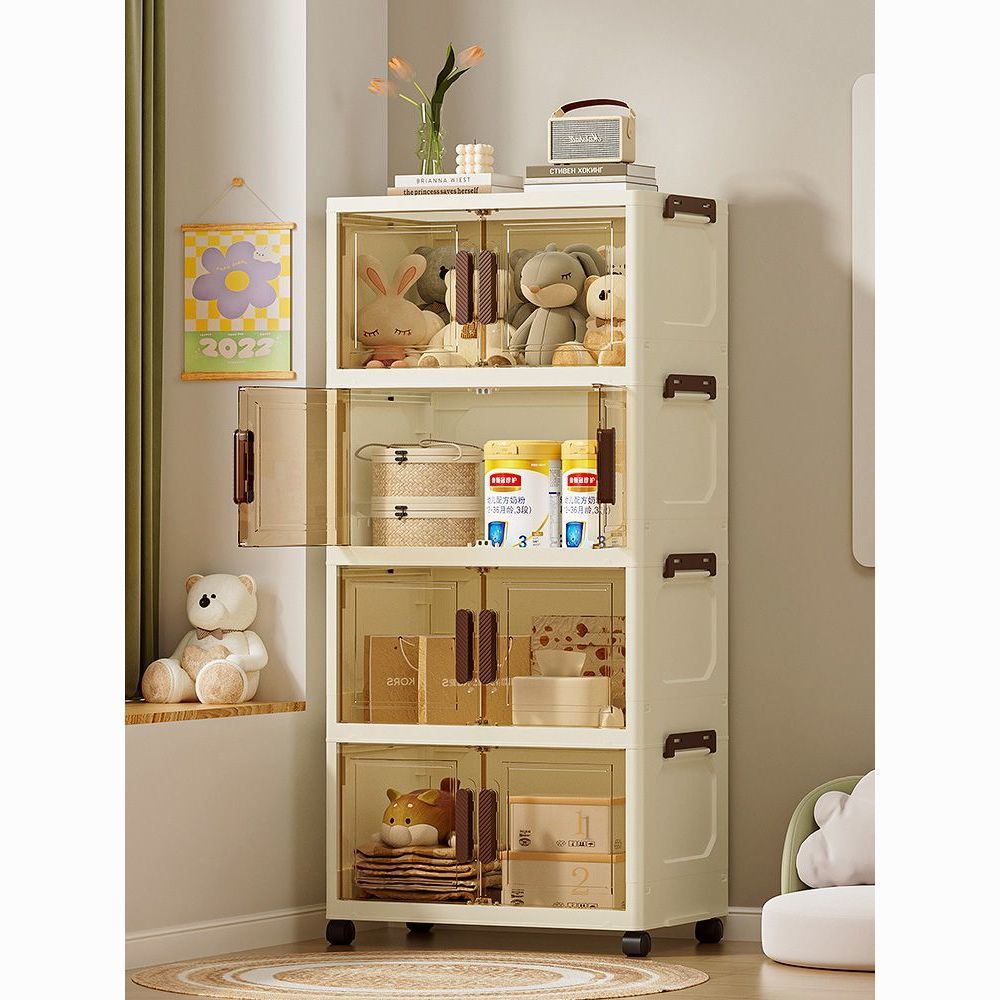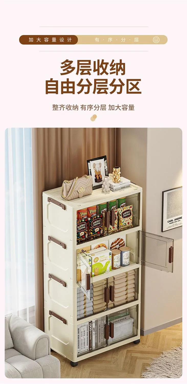 折叠收纳柜免安装带轮双开门多层储物柜家用整理收纳箱客厅储物箱