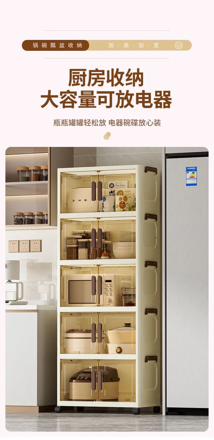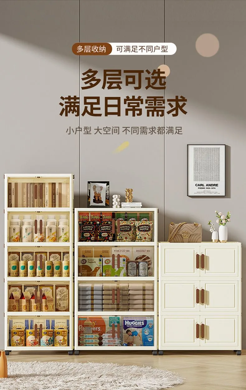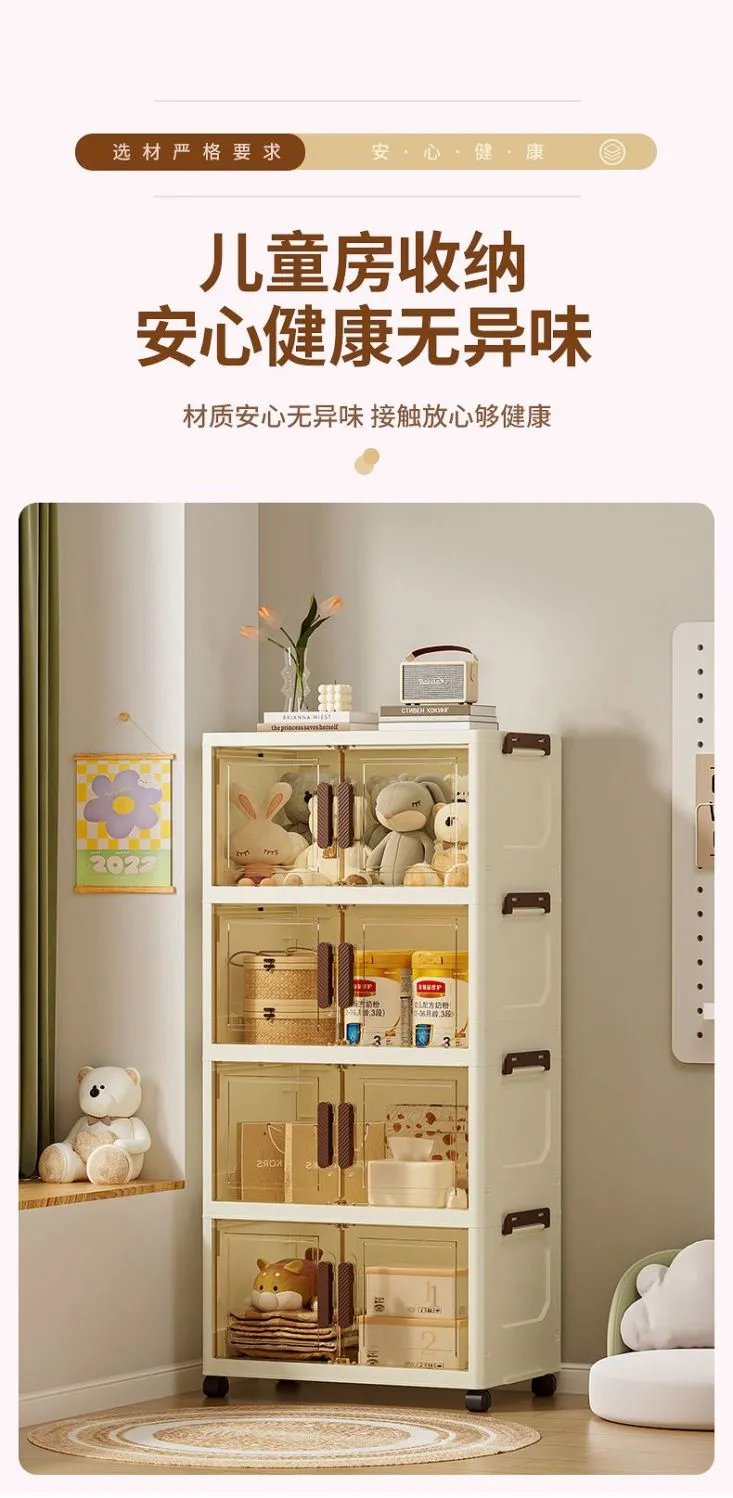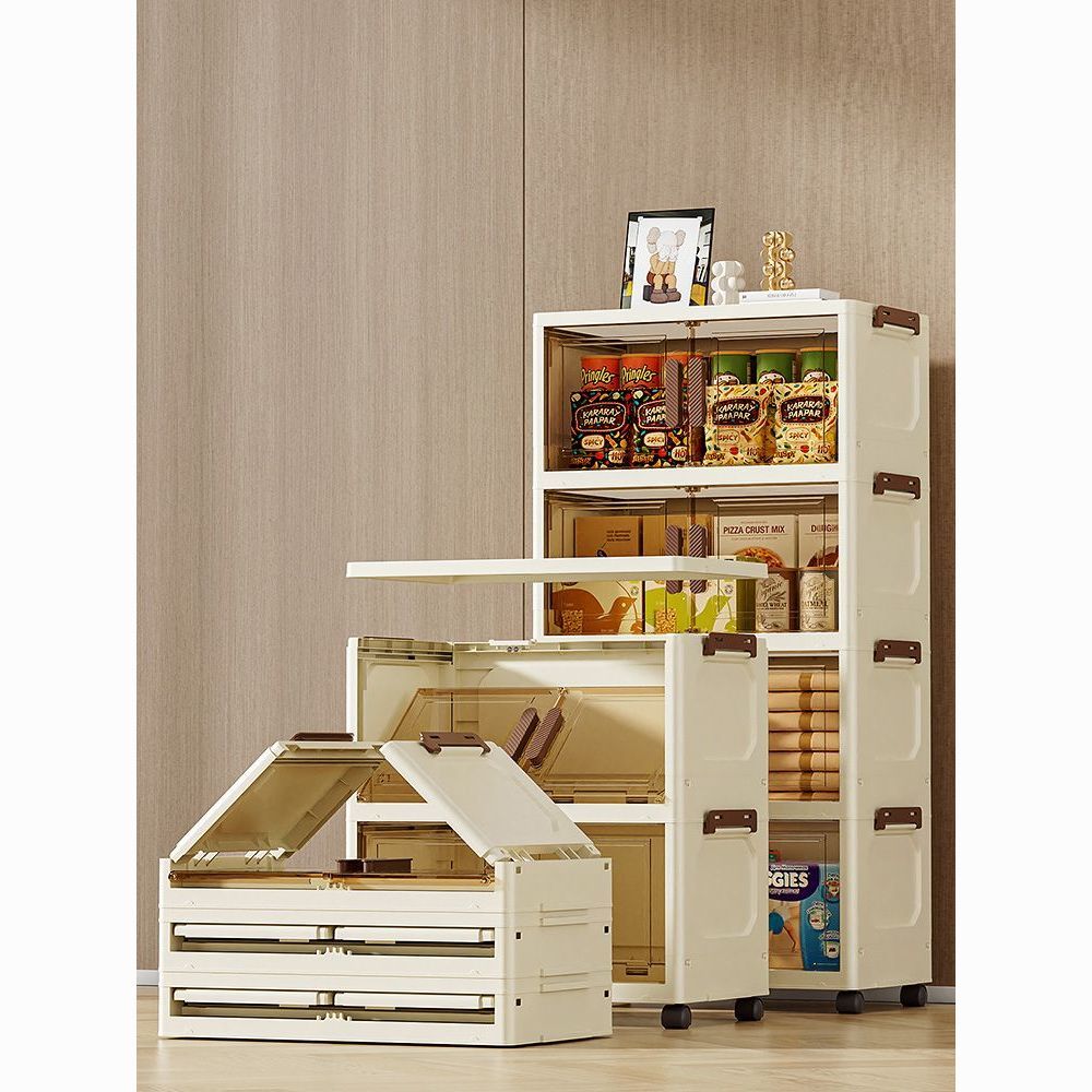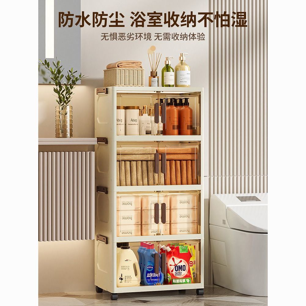 折叠收纳柜免安装带轮双开门多层储物柜家用整理收纳箱客厅储物箱