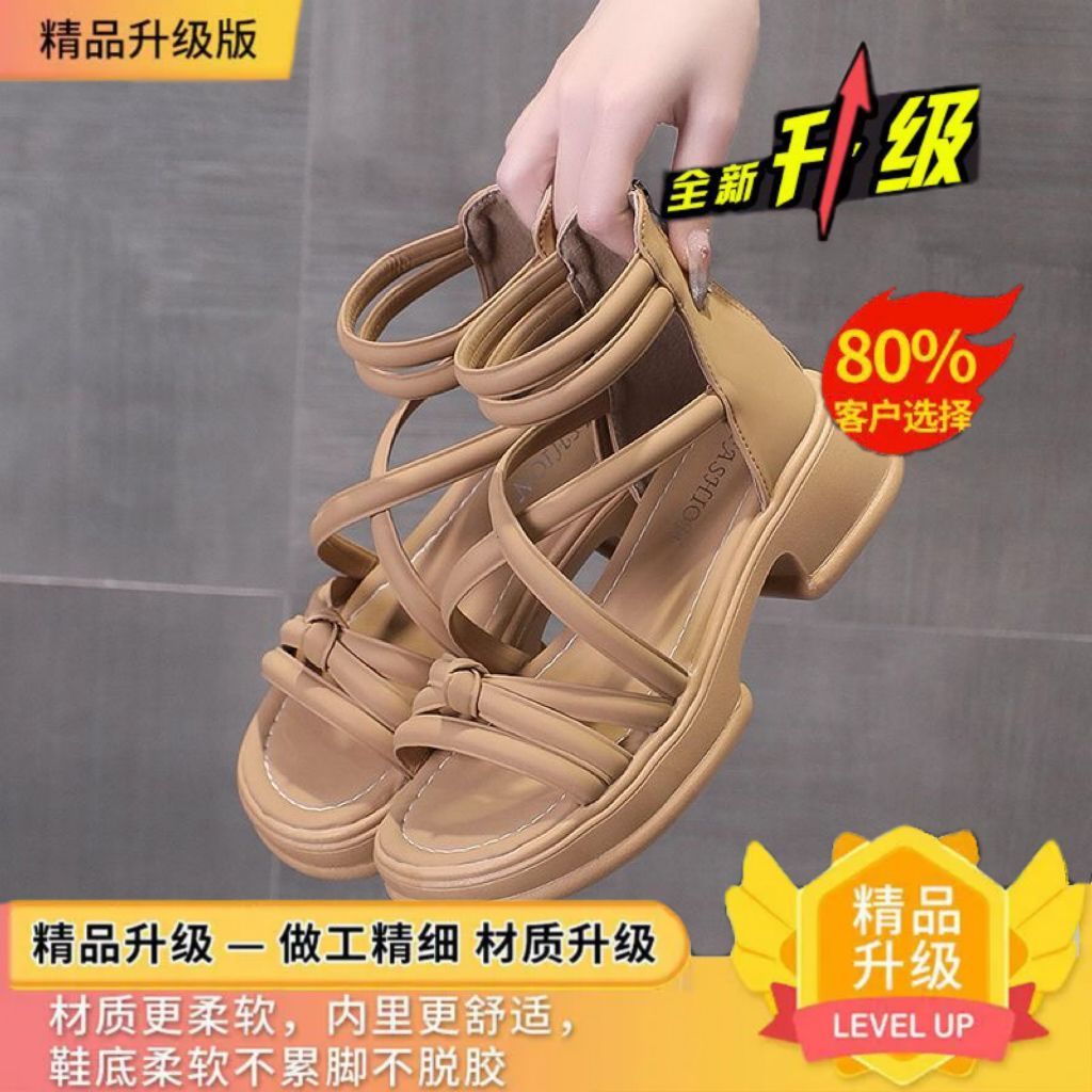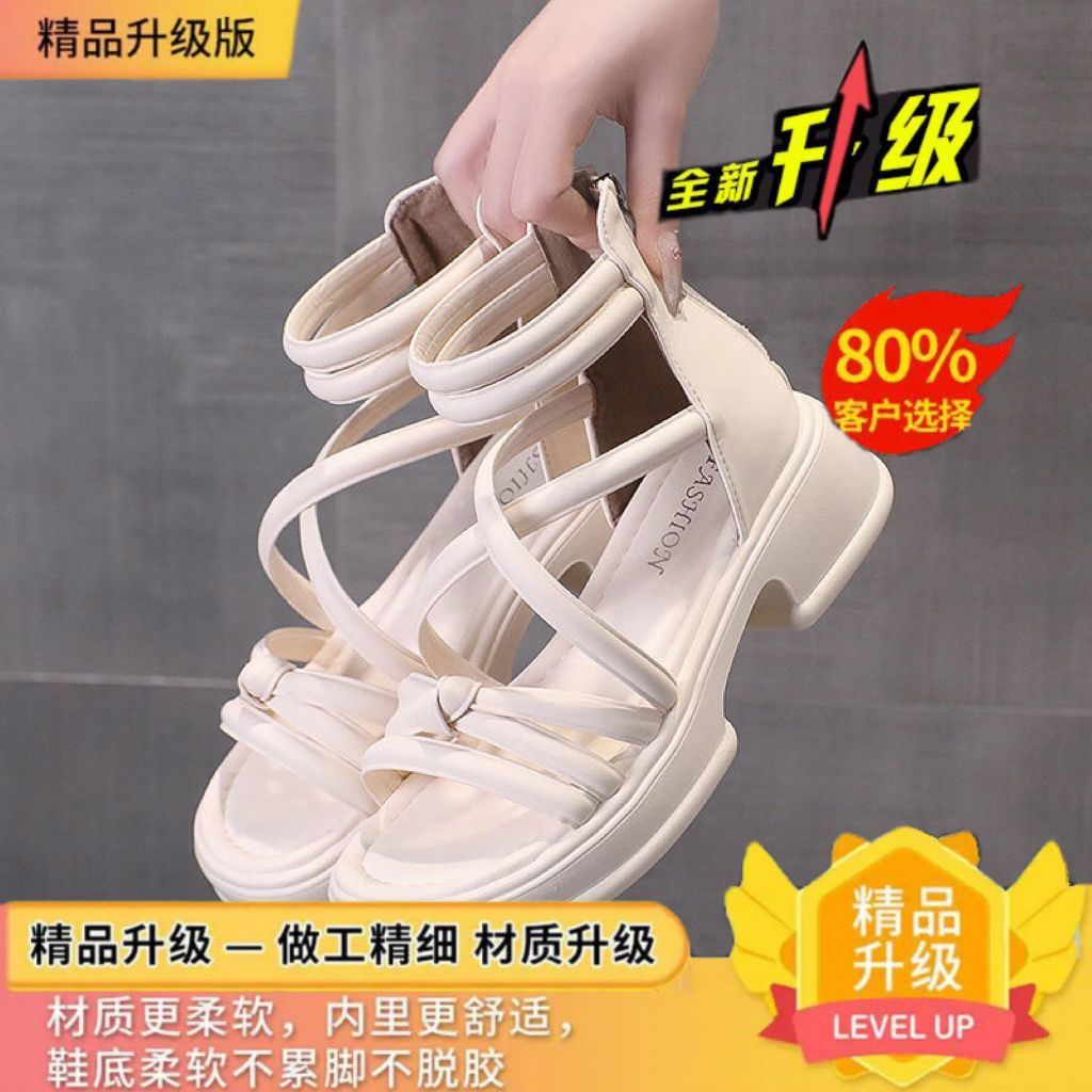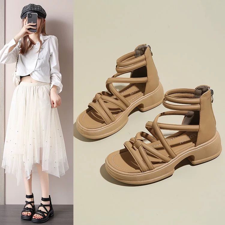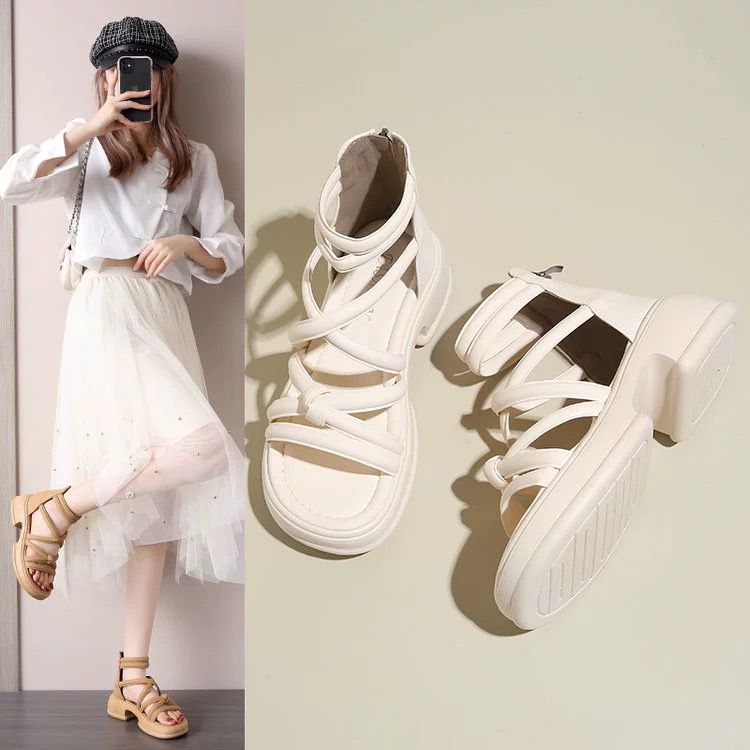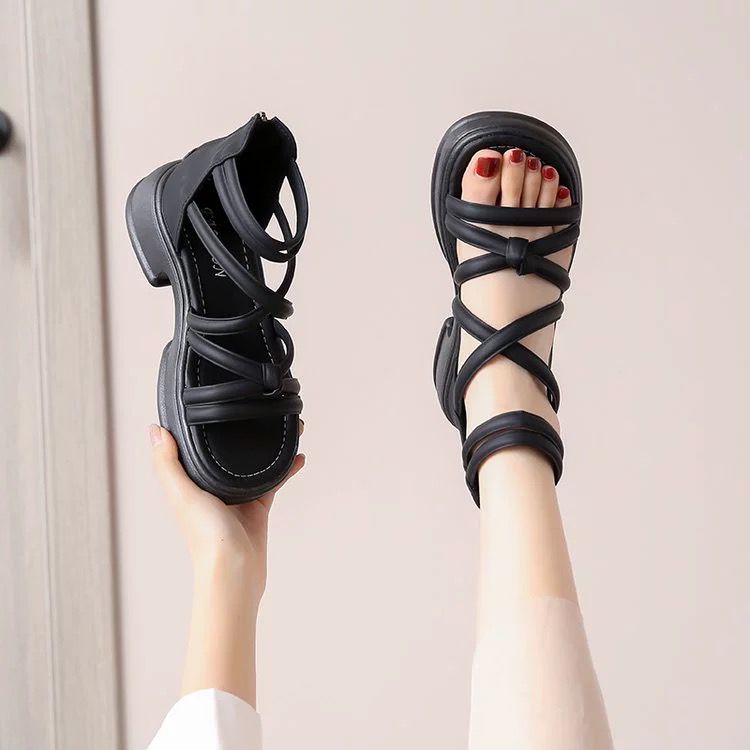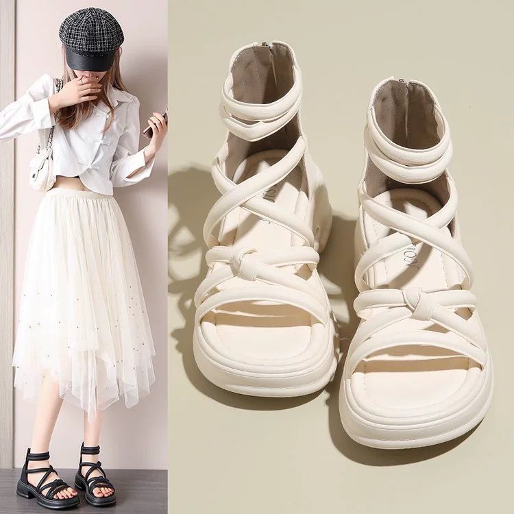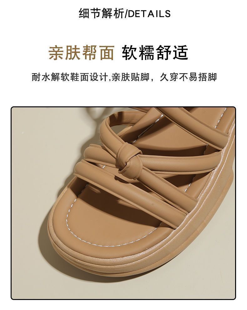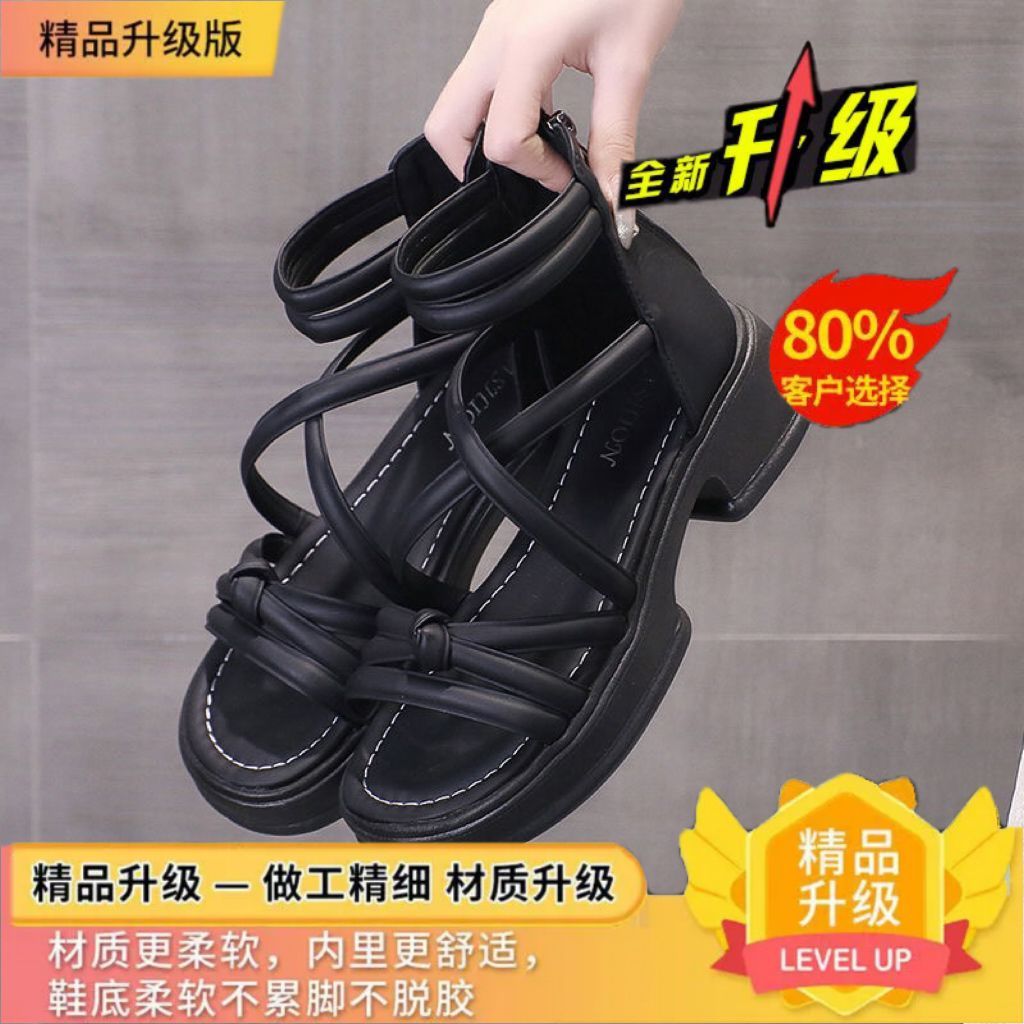 罗马凉鞋女夏季2024年新款平底防滑外穿沙滩鞋百搭黑色缕空凉靴潮