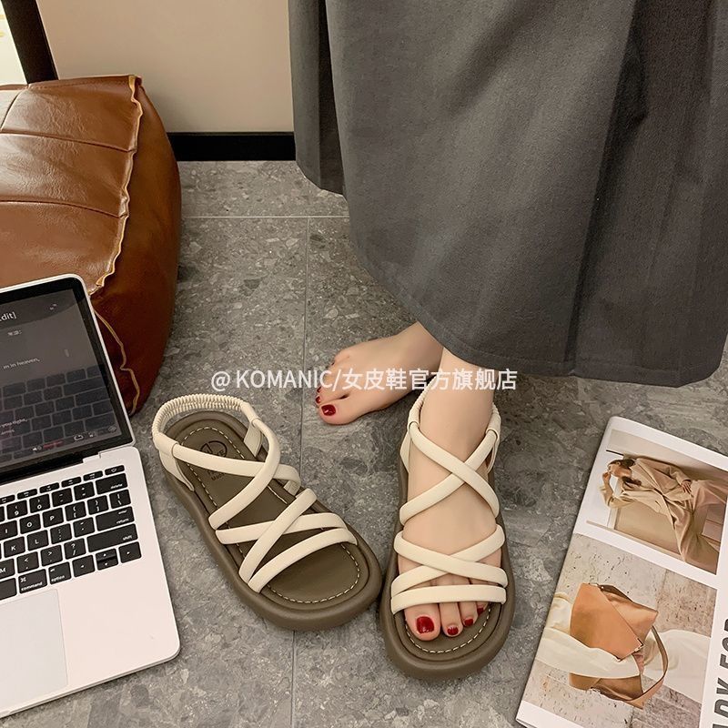 KOMANIC 轻便软底防滑罗马凉鞋2024新款孕妇平底百搭露趾沙滩凉鞋