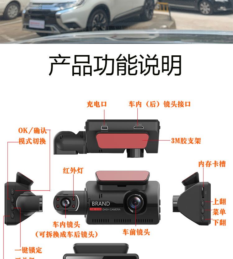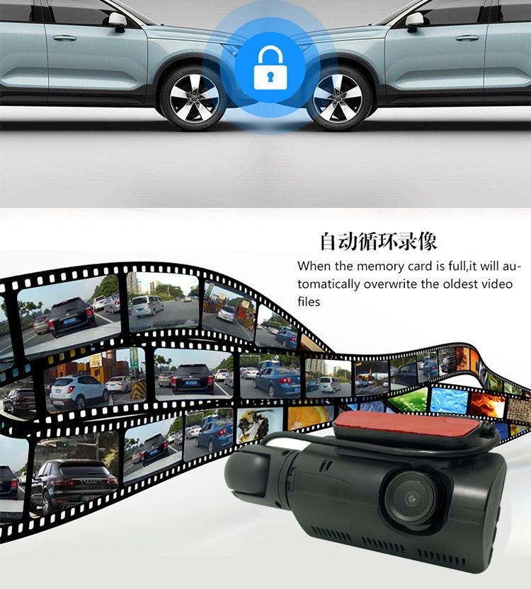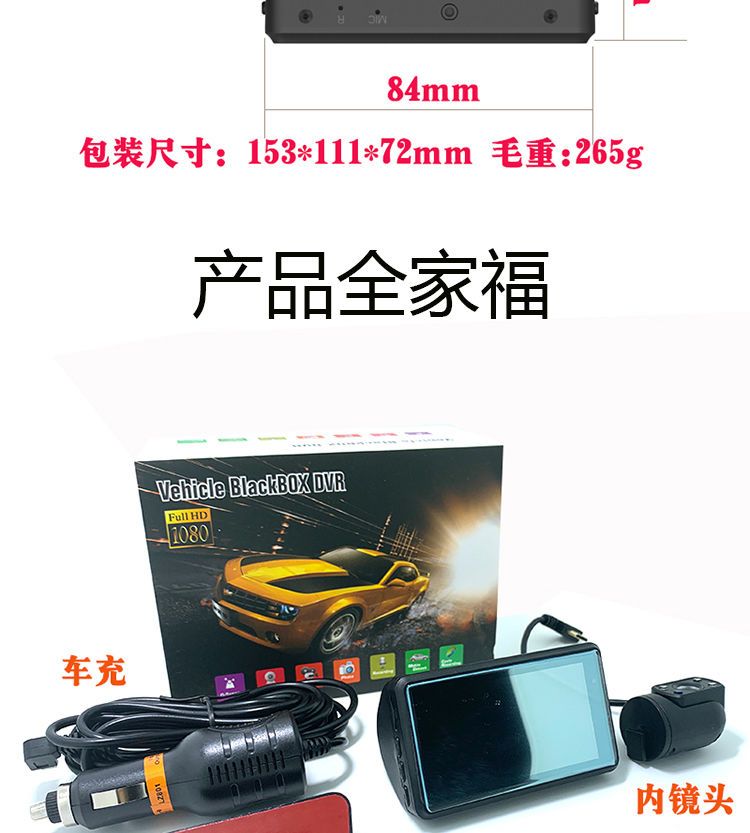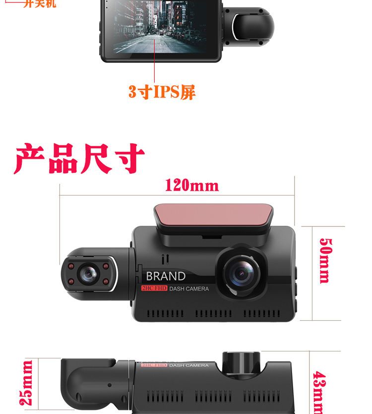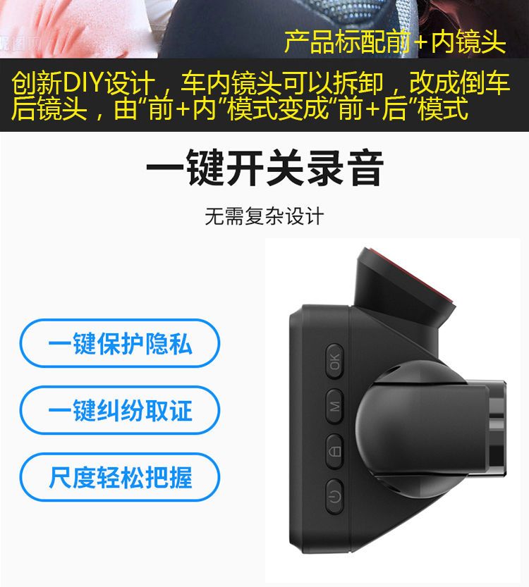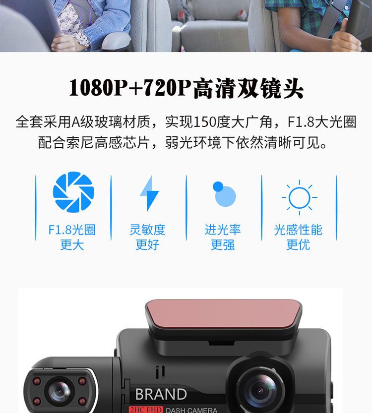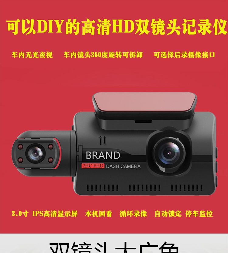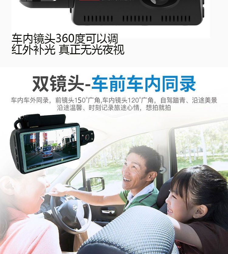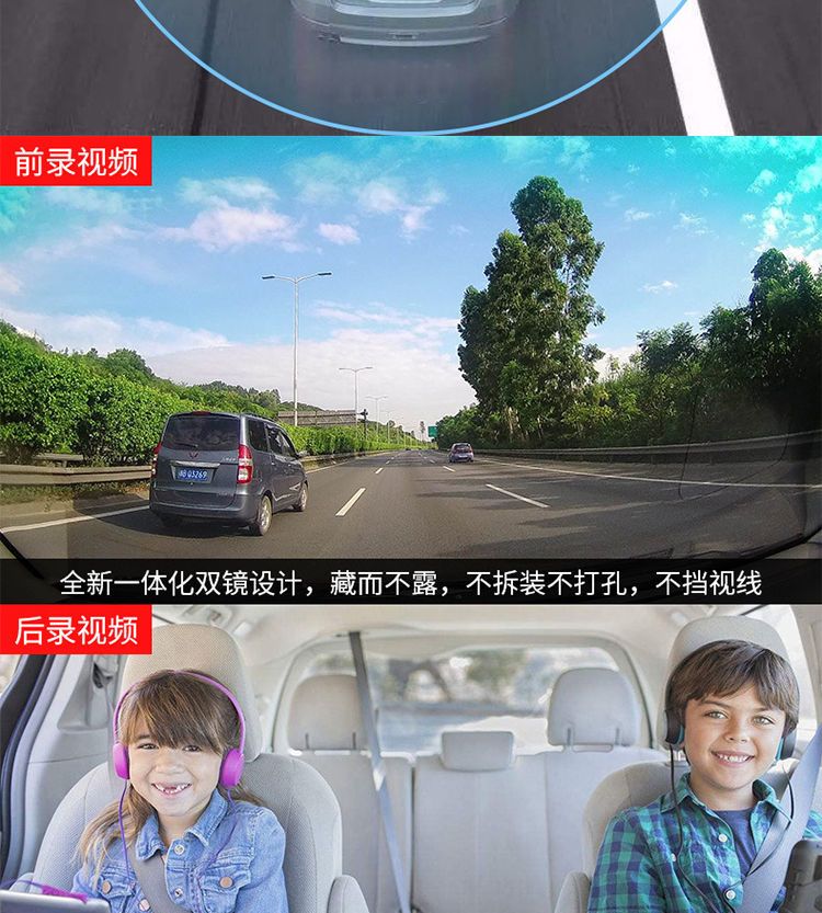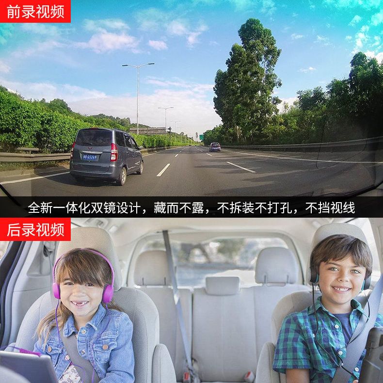 高清无光夜视车内车外双镜车360行车记录仪免安装停车监控隐藏式