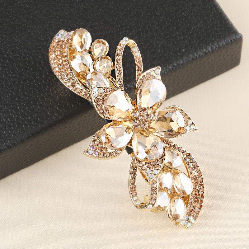 新款太太高档发夹大号后脑勺妈妈发饰头发夹子奢华水晶弹簧夹时尚