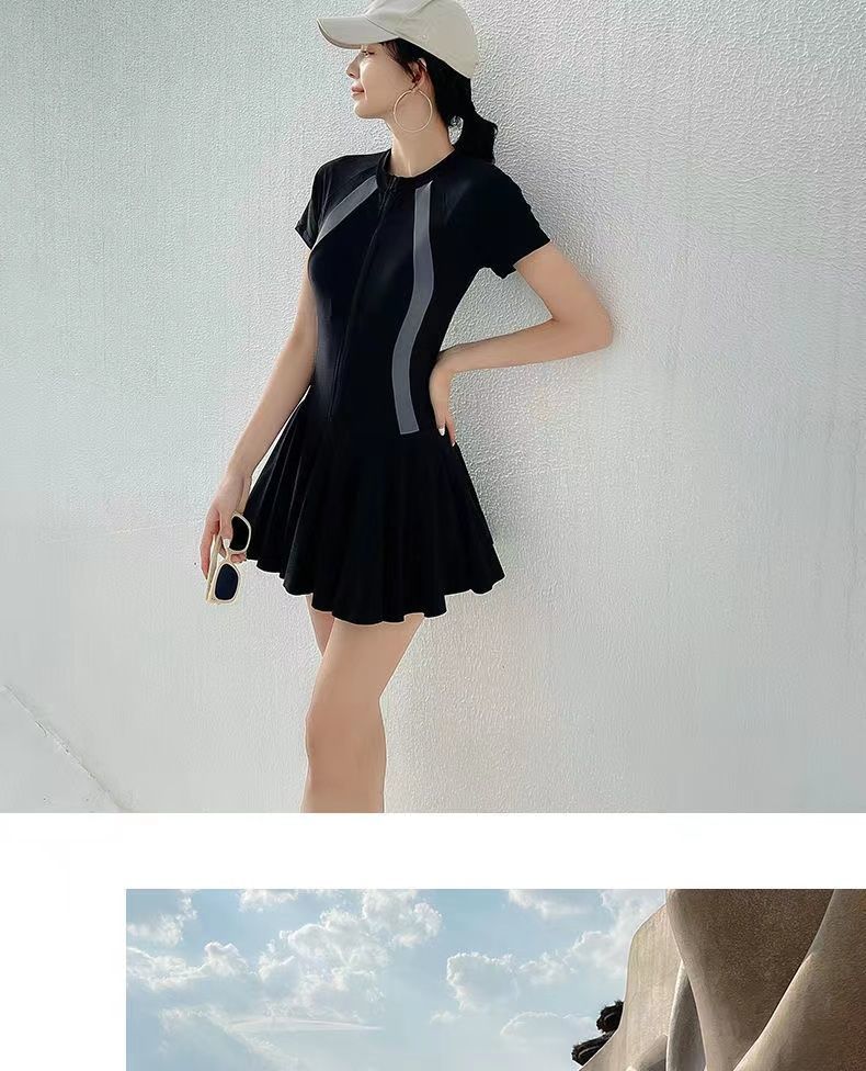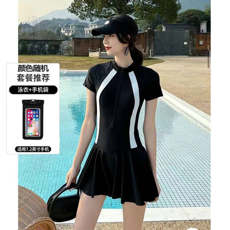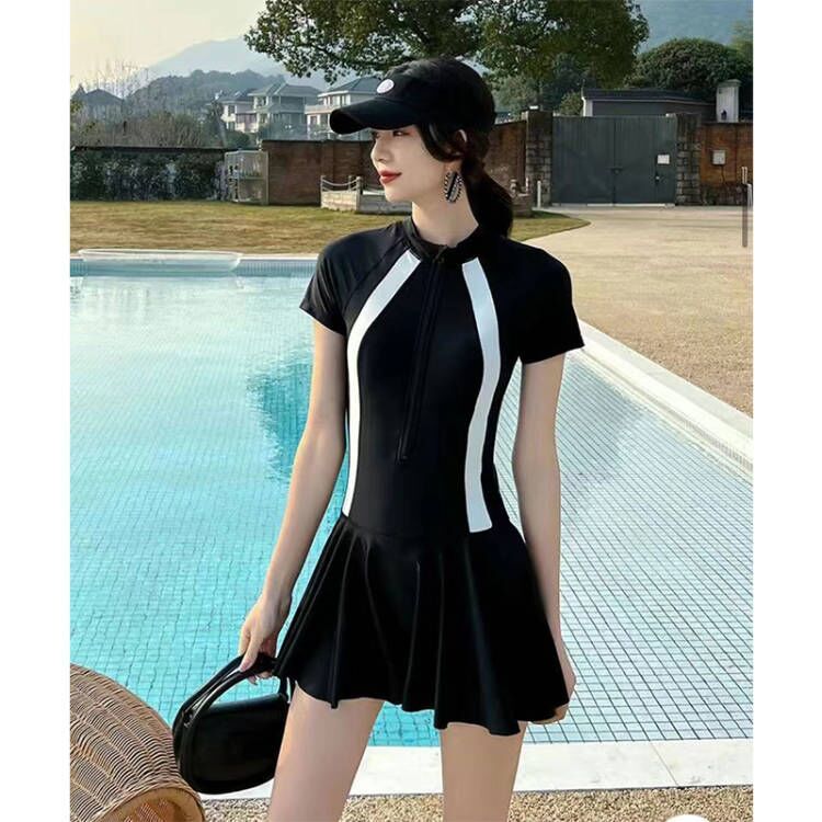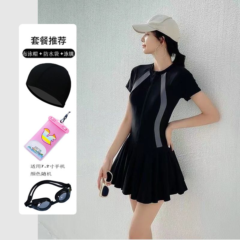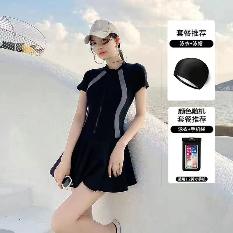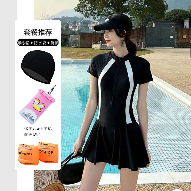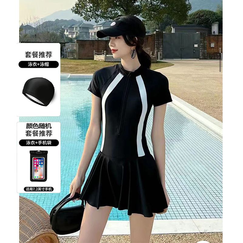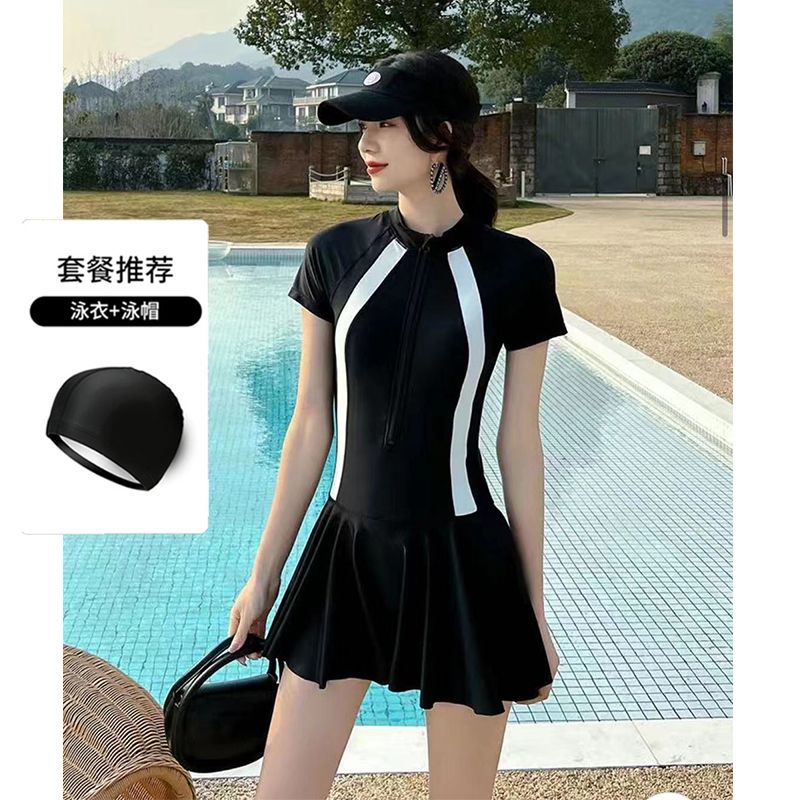 2022新款大码泳衣女保守连体显瘦遮肚海边专业游泳衣泡温泉运动