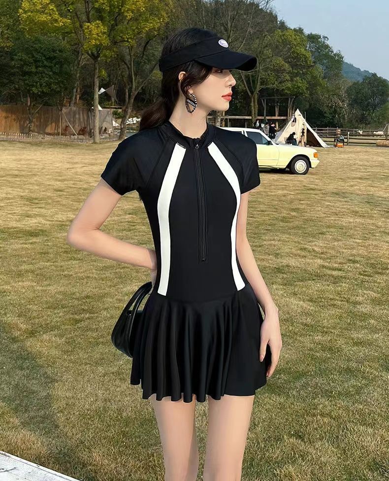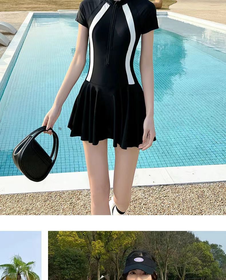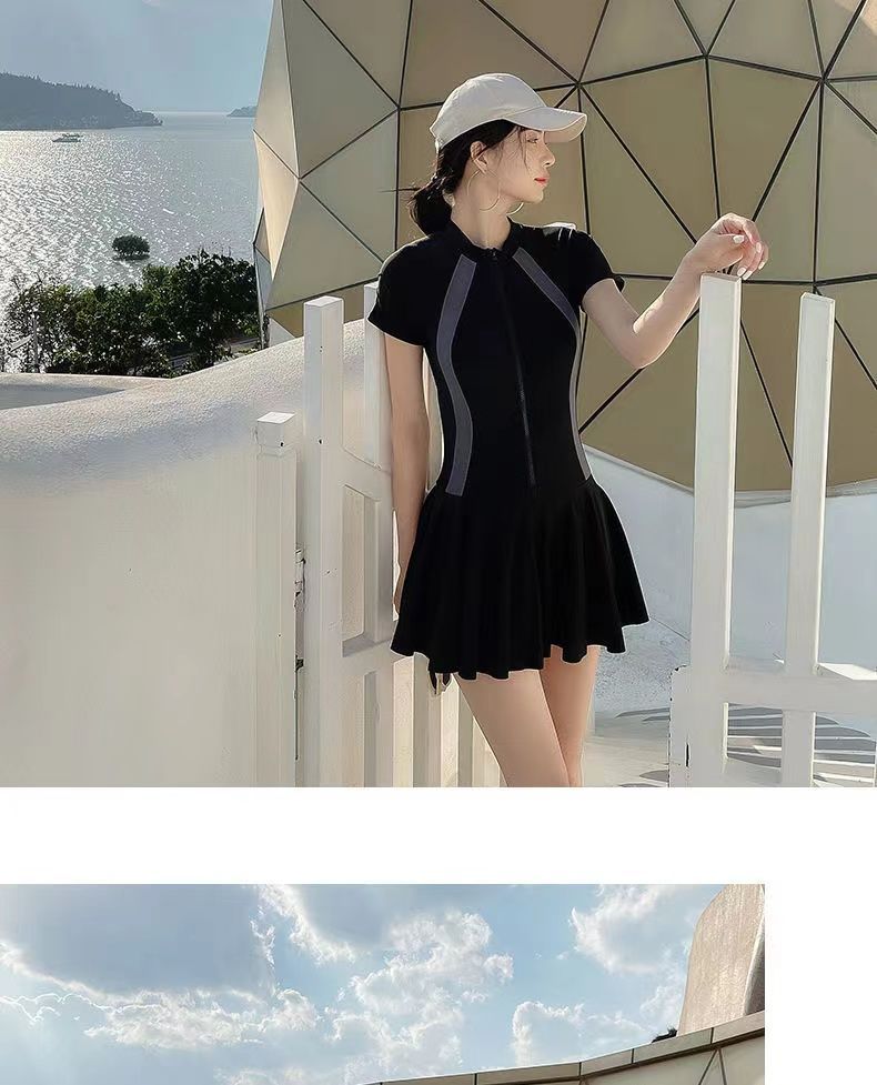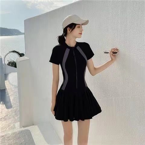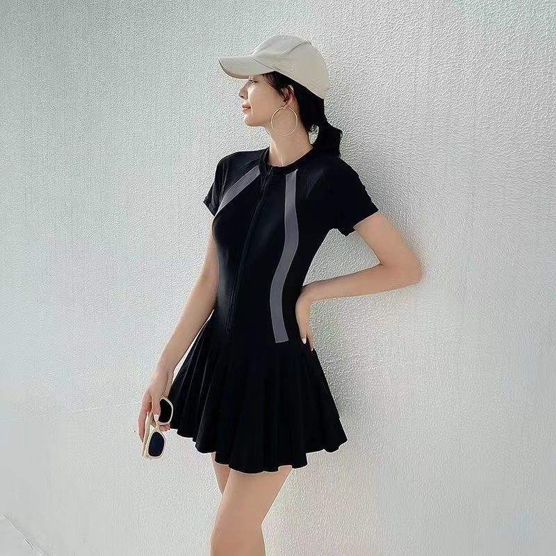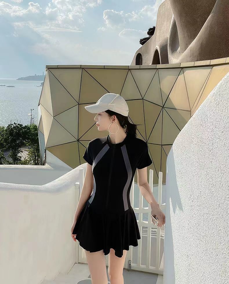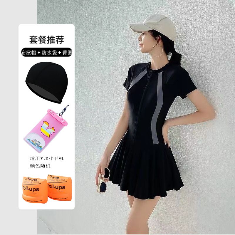 2022新款大码泳衣女保守连体显瘦遮肚海边专业游泳衣泡温泉运动