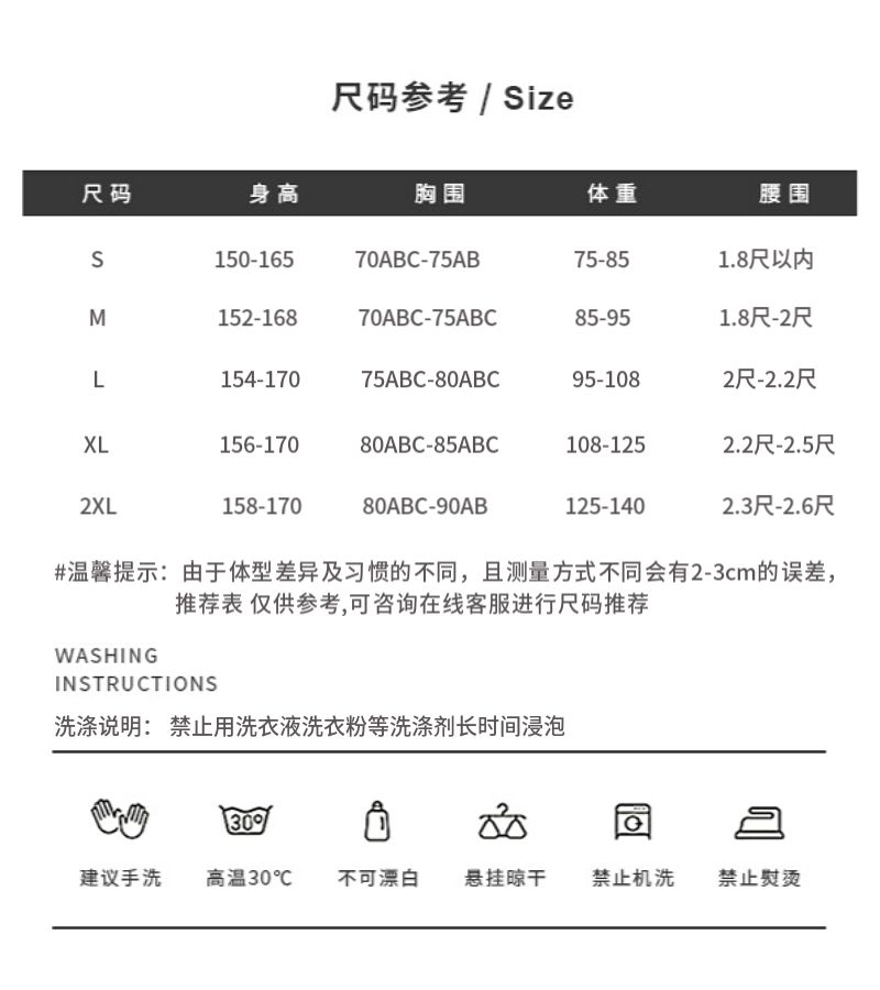 | size l [recommended 47.50 kg-54.00 kg]](L码【建议95-108斤】) | USD $8.4 | 99999 piece available |
