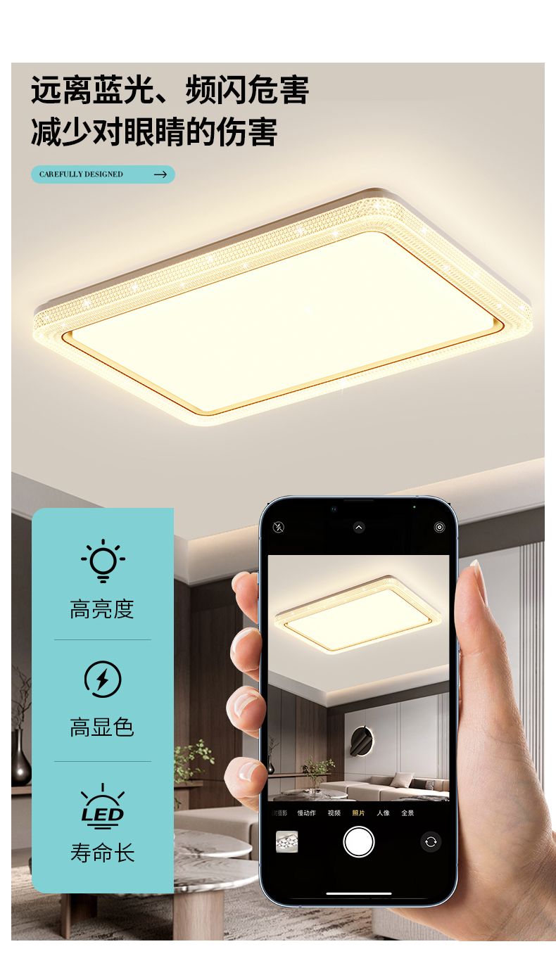 全光谱卧室灯LED吸顶灯新款网红钻石房间灯现代温馨浪漫中山灯具
