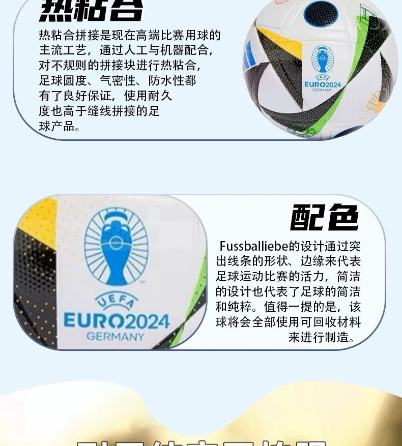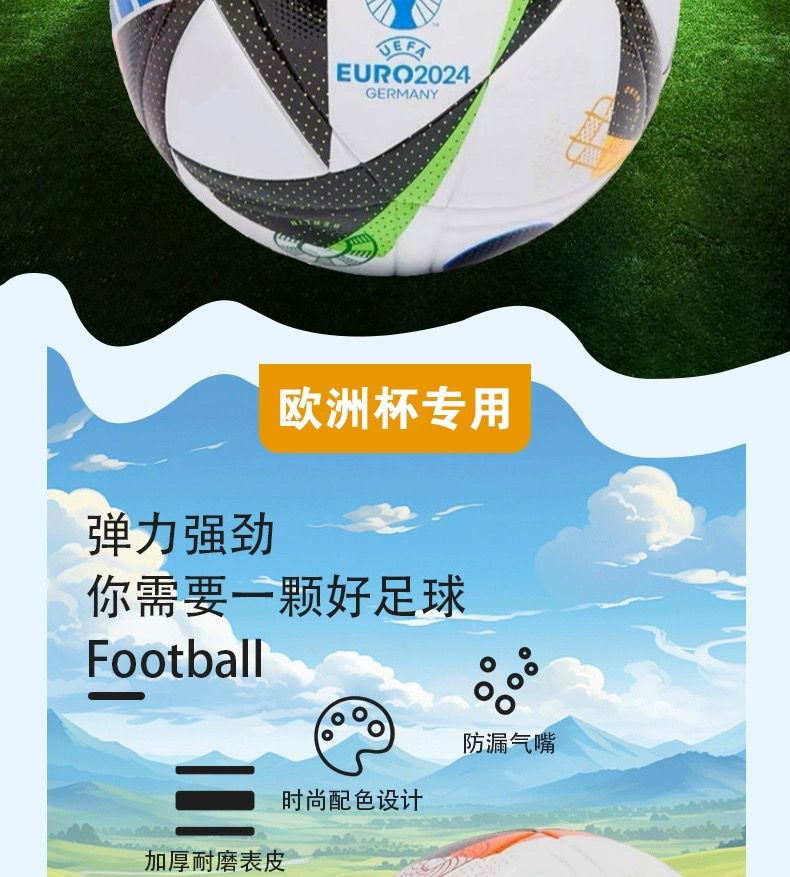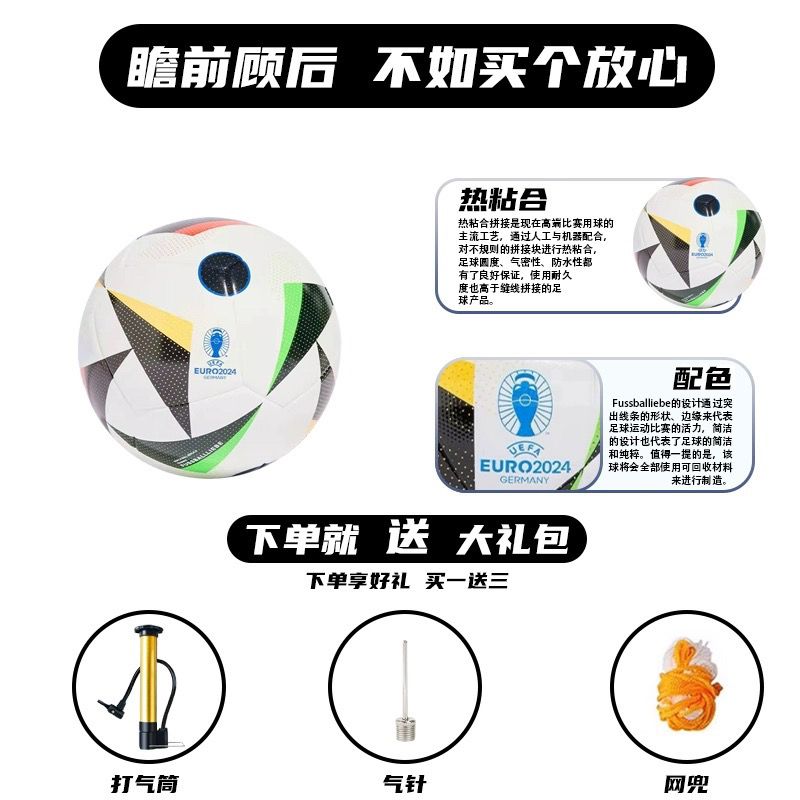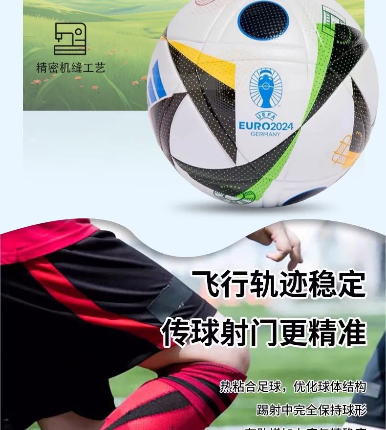 2024官方欧洲杯专用足球5号热贴合无缝PU青少年专业训练用球比赛