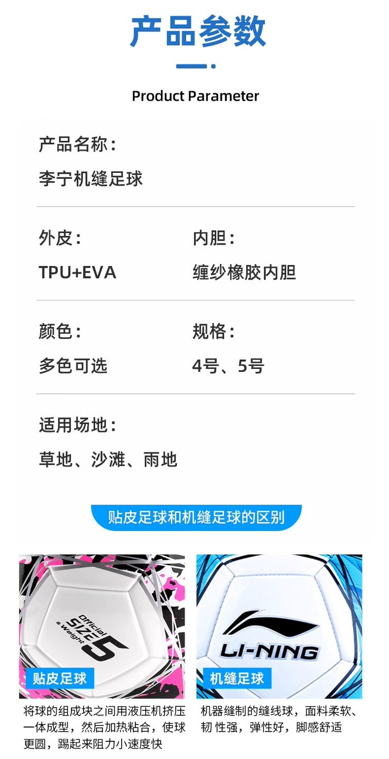 李宁足球开学训练5号4号小学生专用青少年儿童校园训练比赛标准球