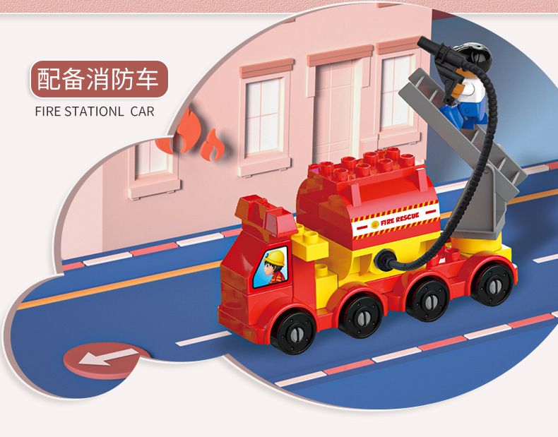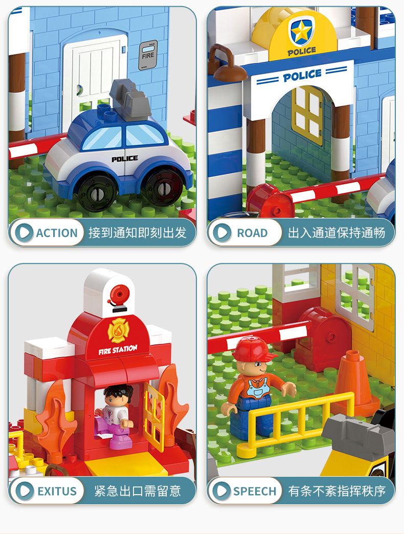 兼容乐高积木玩具拼装益智儿童大颗粒城市警察男女孩工程消防汽车