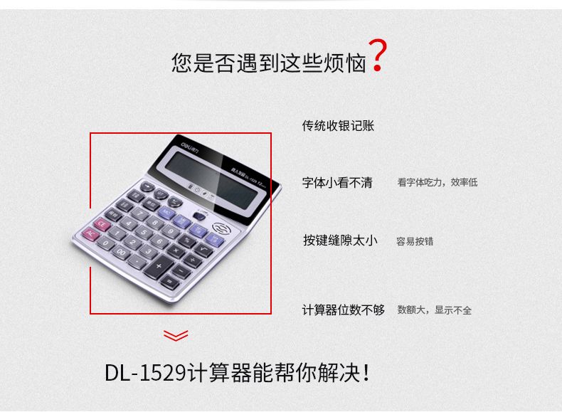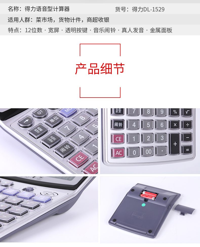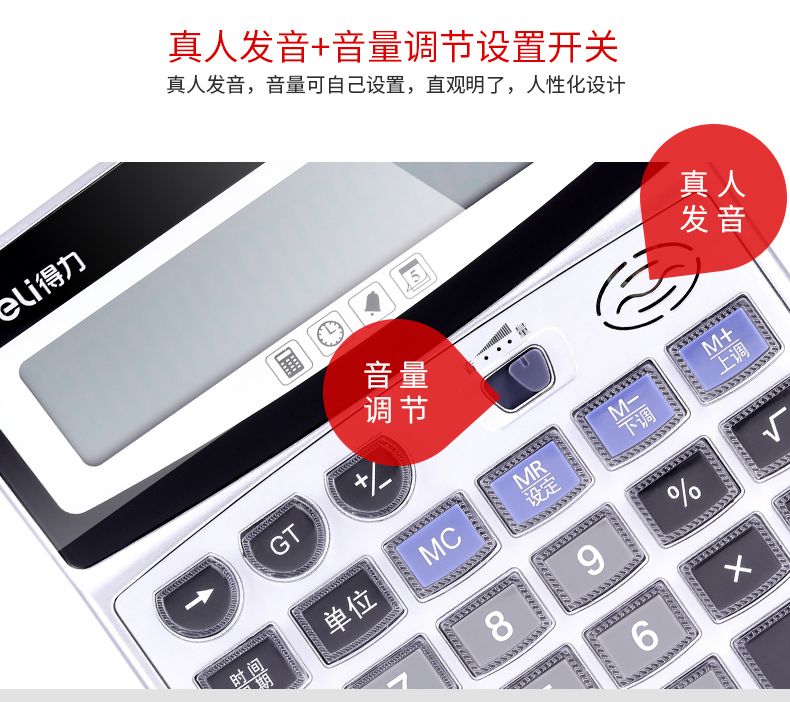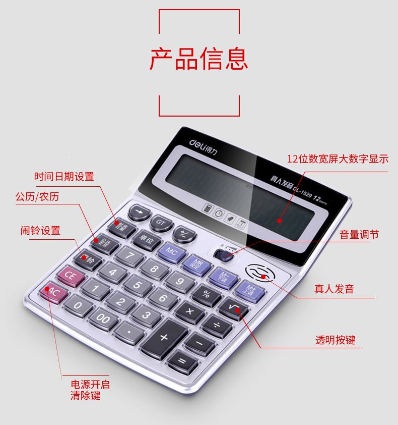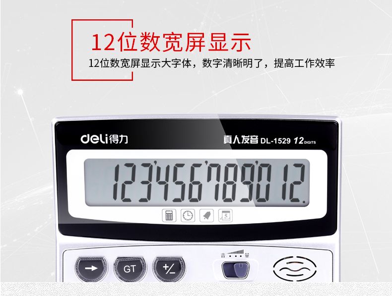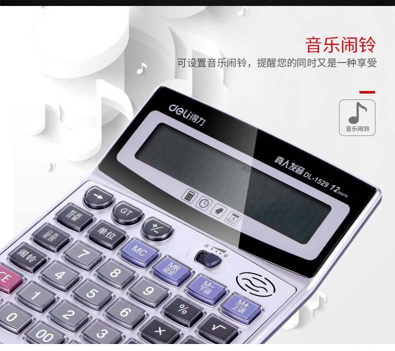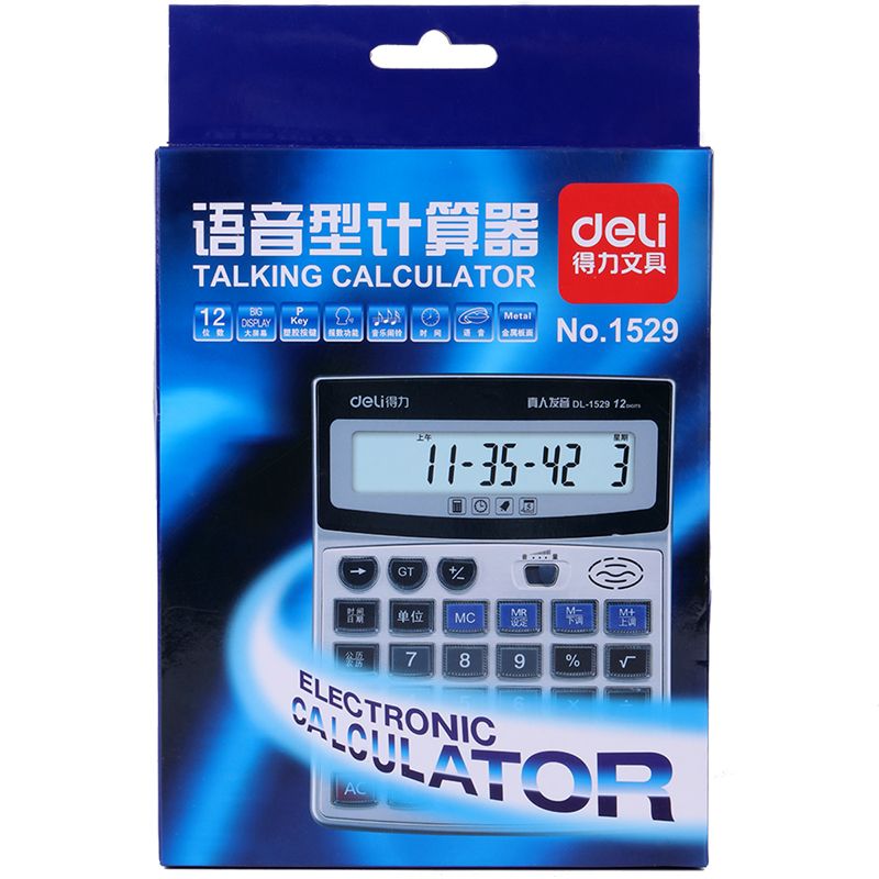 得力1529语音计算器 水晶大按键计算机 12位数大屏幕 带电池