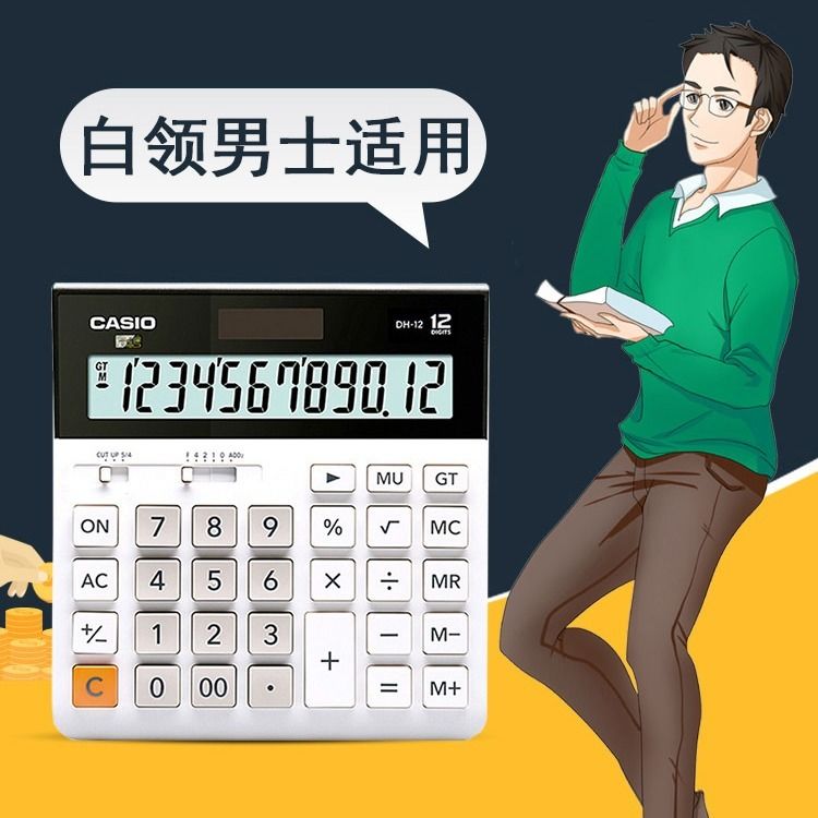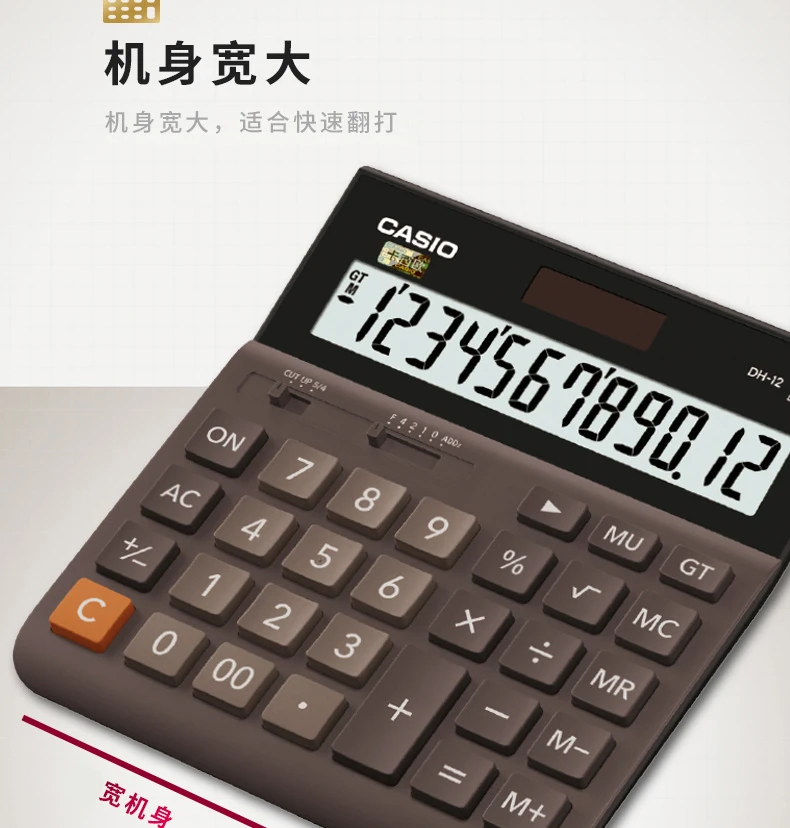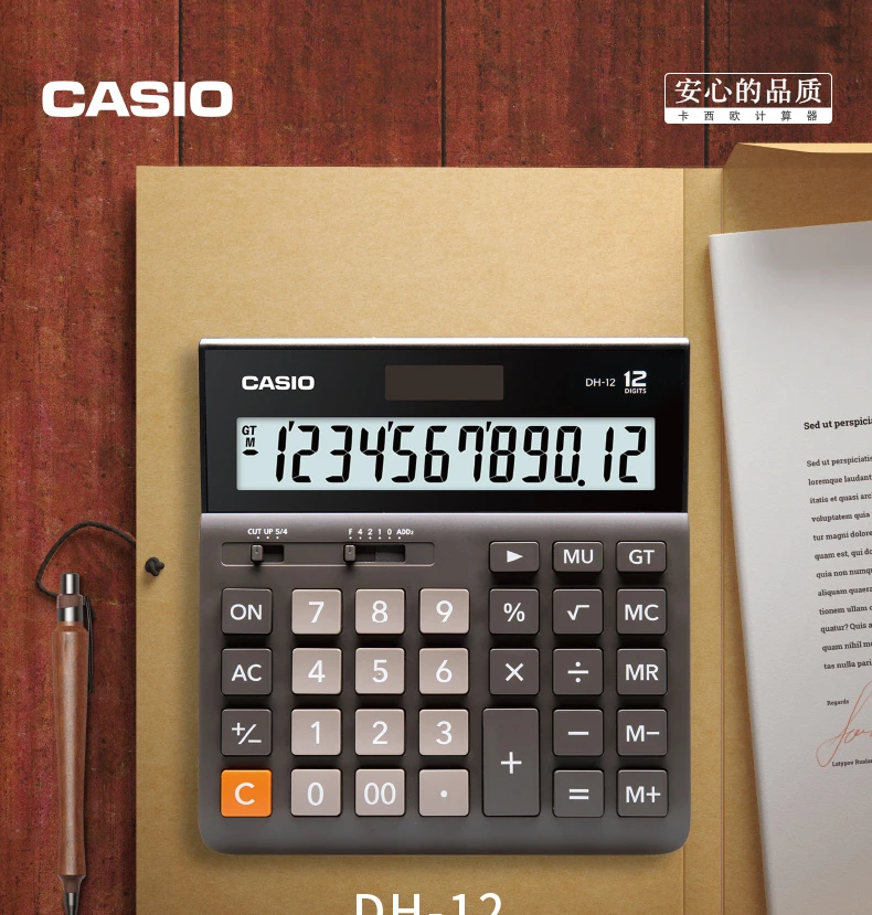 Casio卡西欧计算器DH-12 太阳能白领财务宽屏办公计算机正品大号