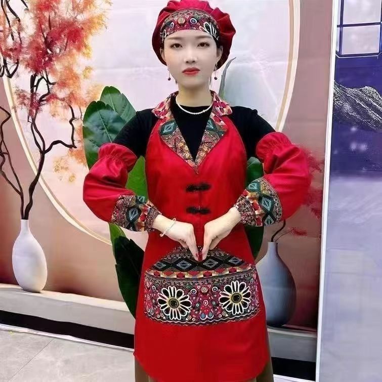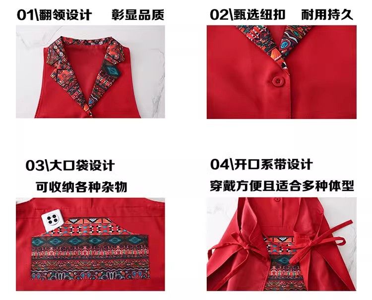 民族风围裙耐脏女士西装无袖复古时尚厨房家用餐厅名族风餐饮酒店