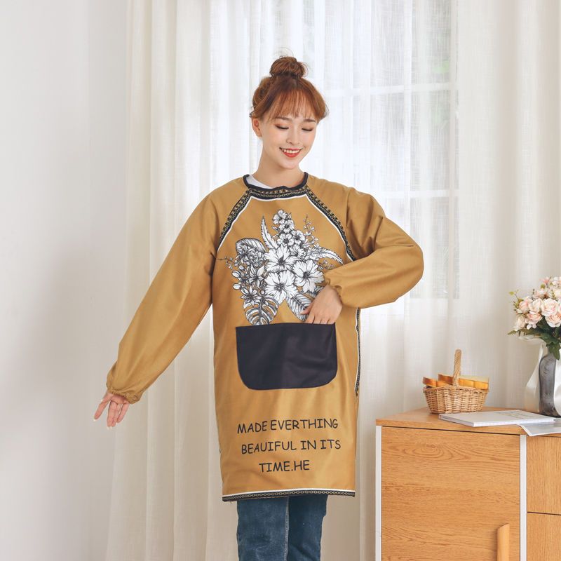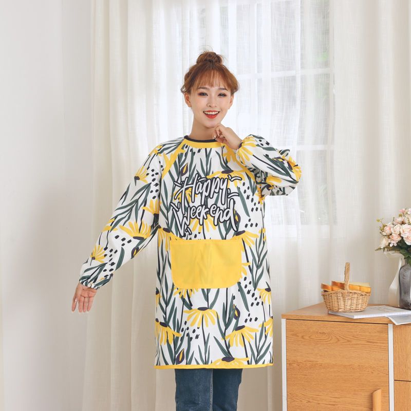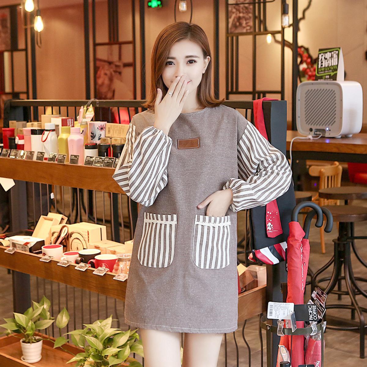罩衣韩版时尚包邮厨房防水可爱长袖罩衣成人女男士围腰工作服双层