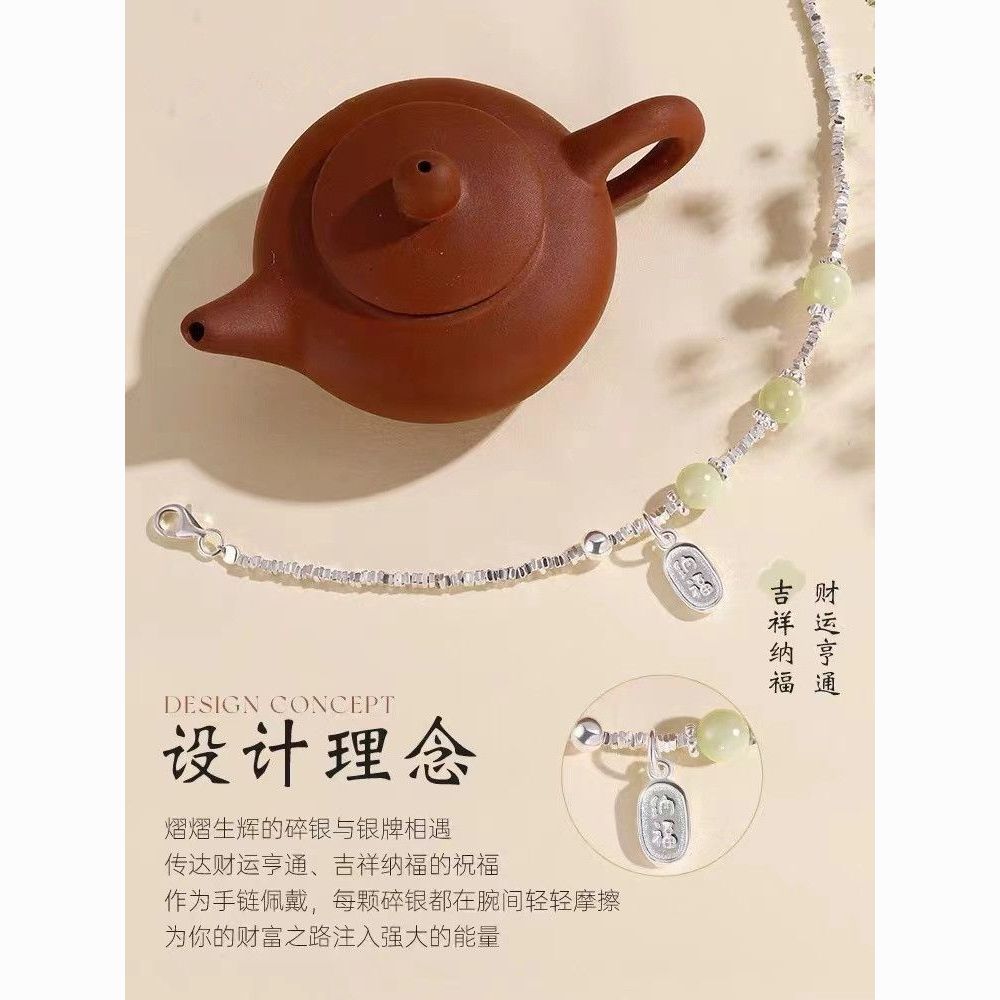 正品凤祥足银999碎银纳福手链纯银小众轻奢送女友情人节生日礼物