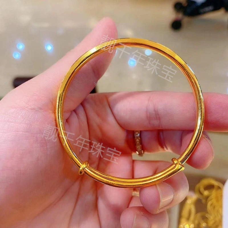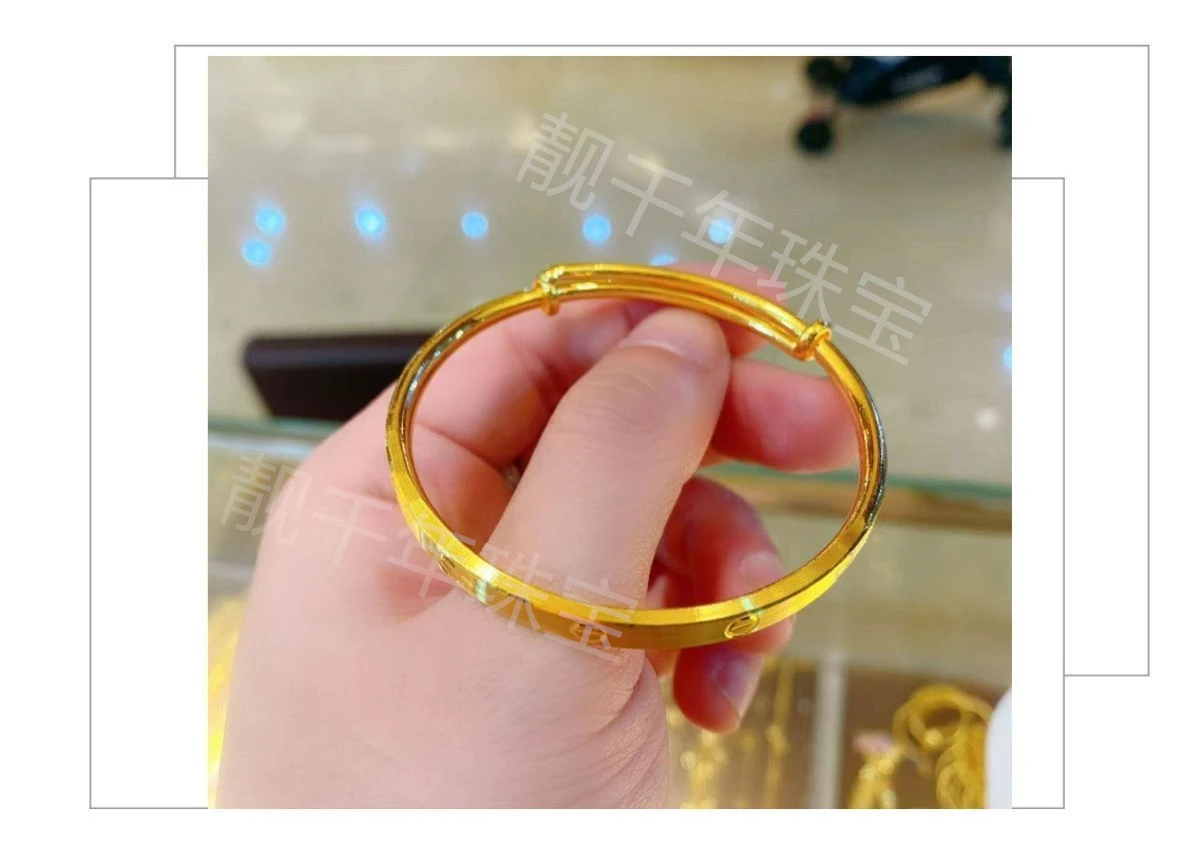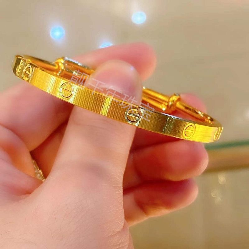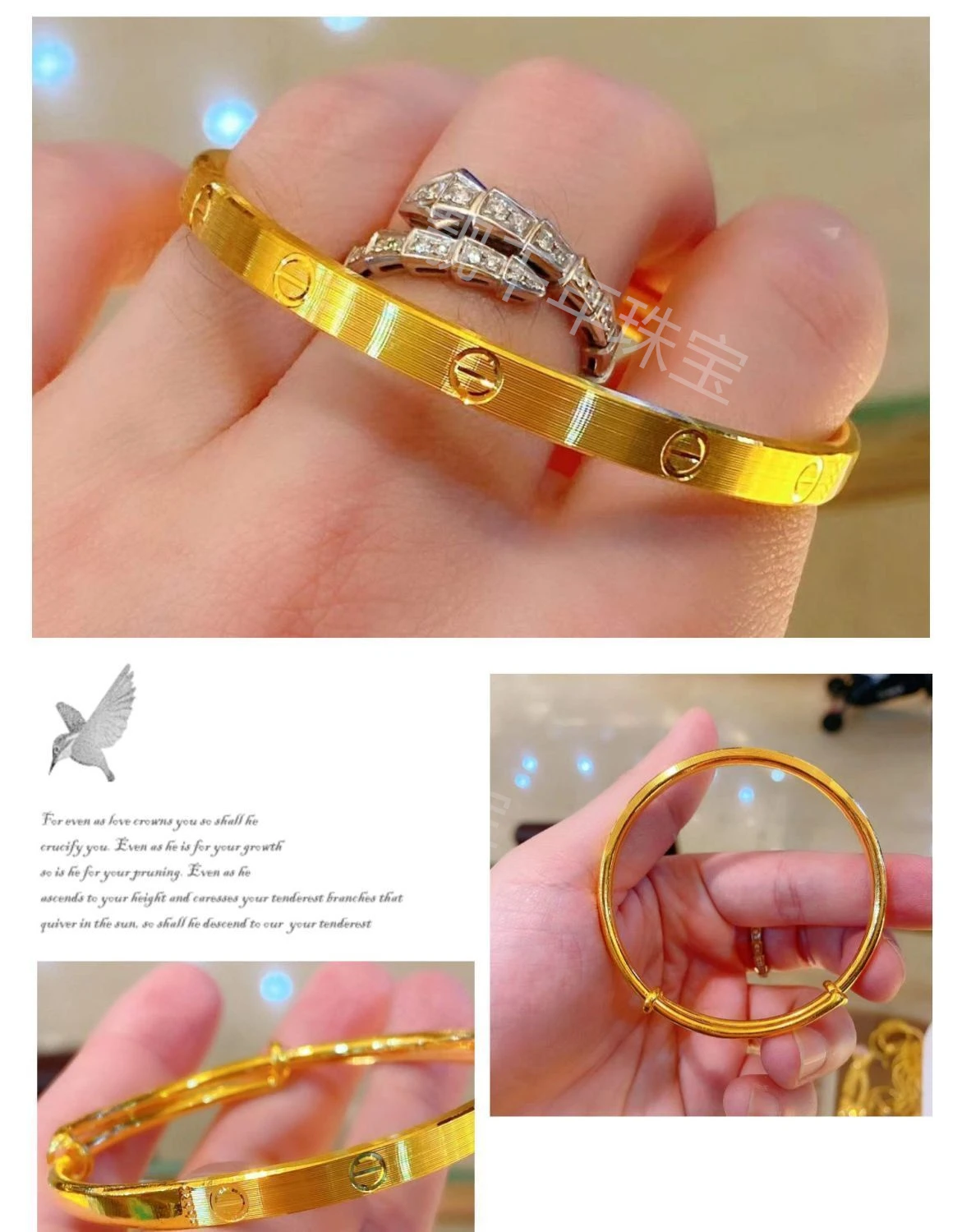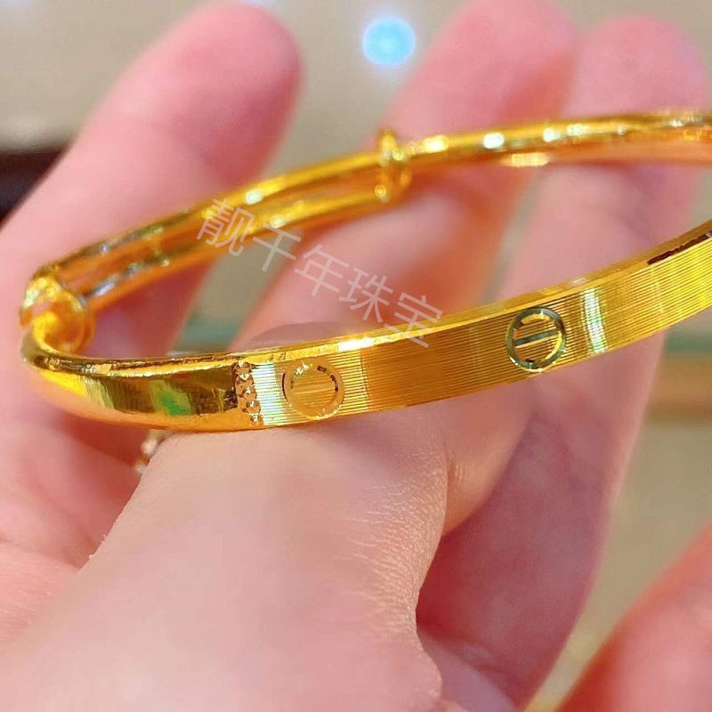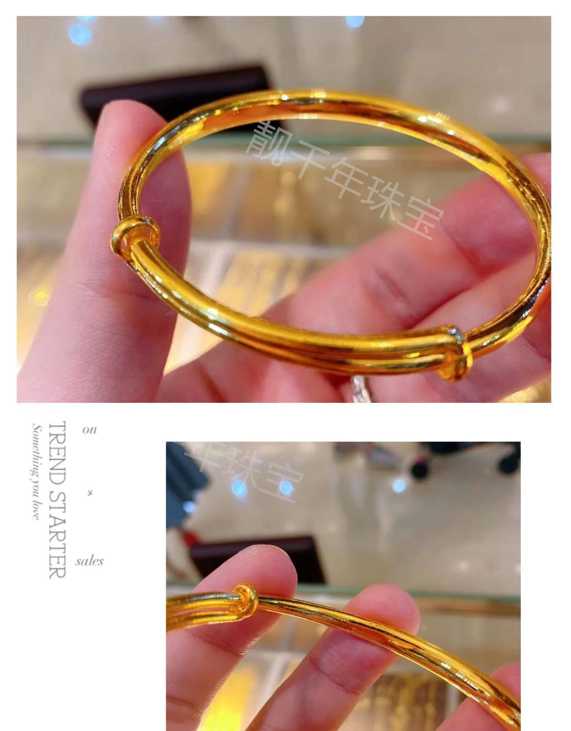 黄金一字纹推拉手镯足金足银时尚可调节百搭金包银镯子节日送老婆