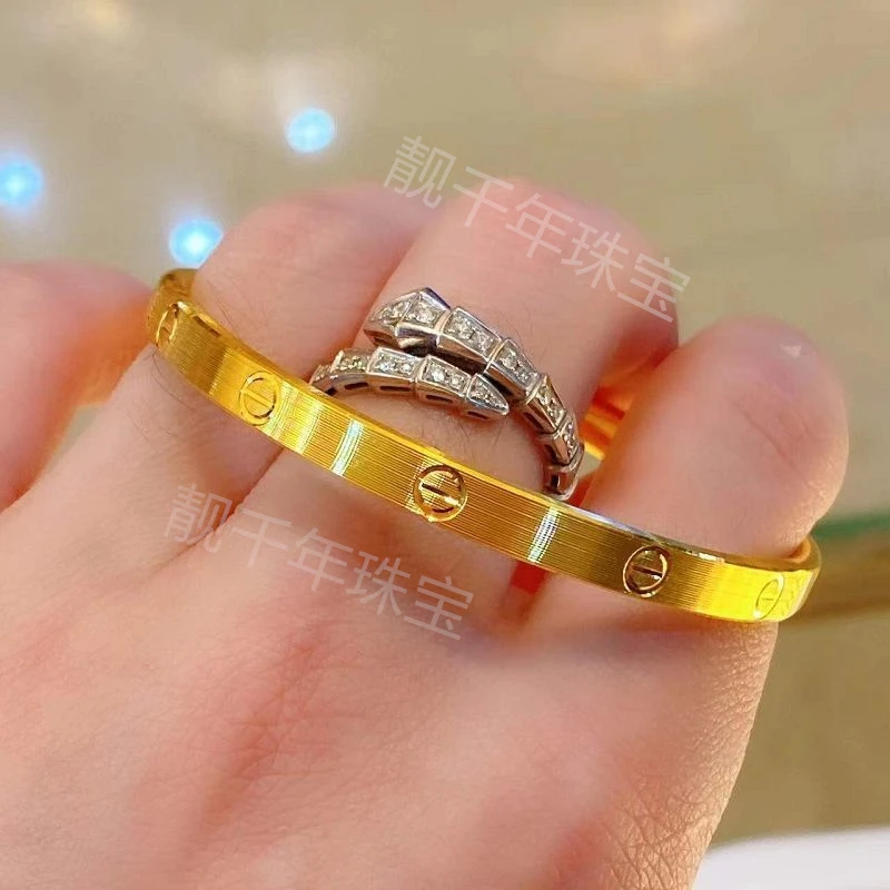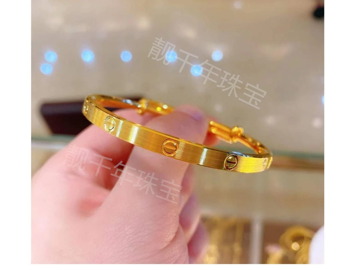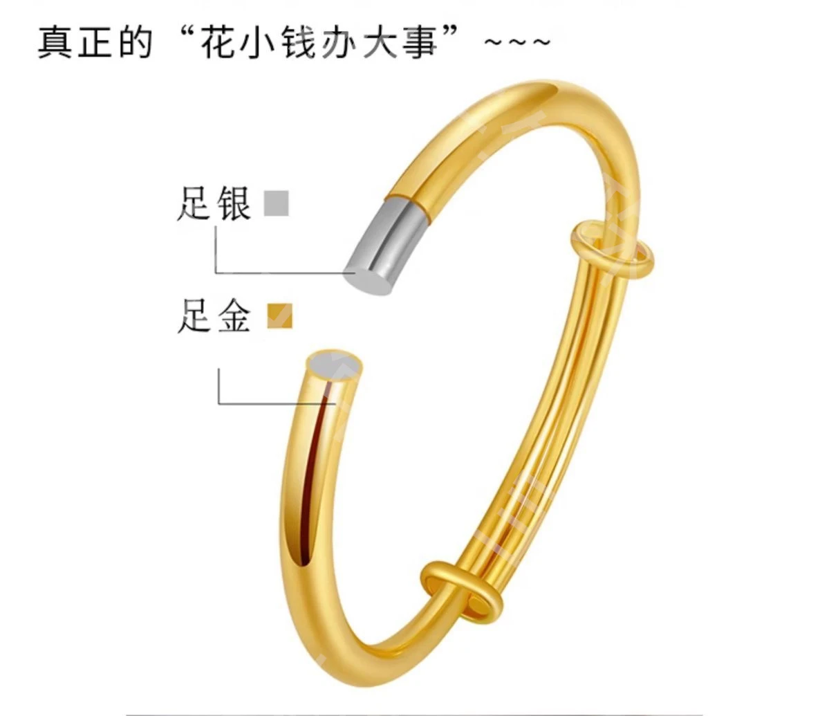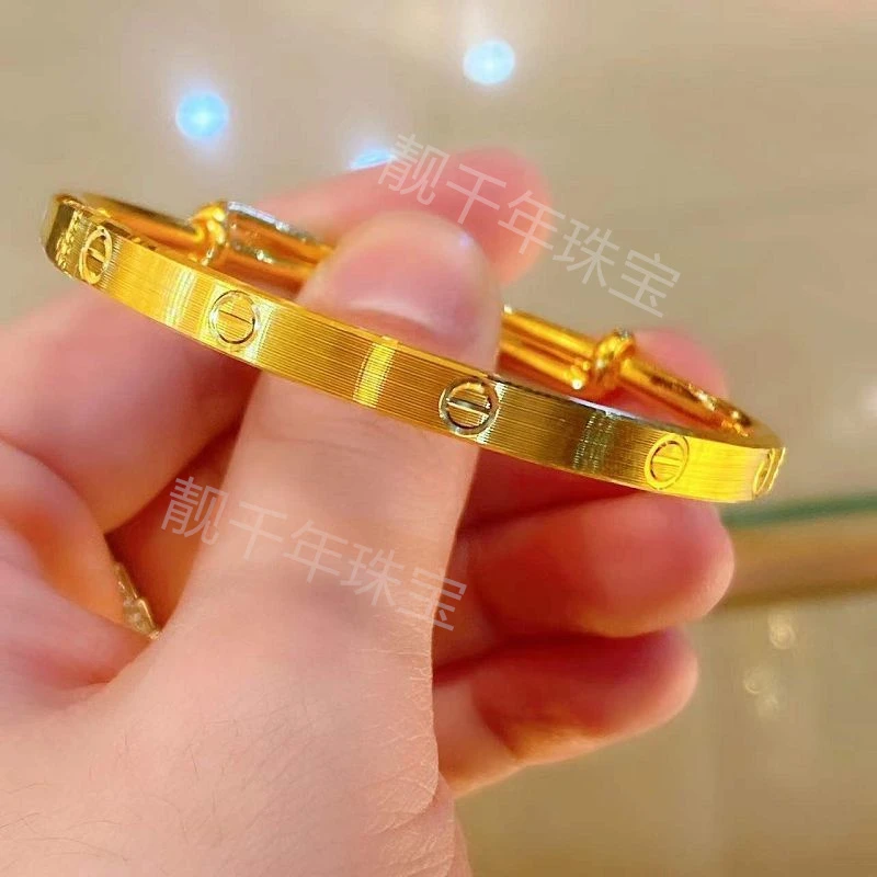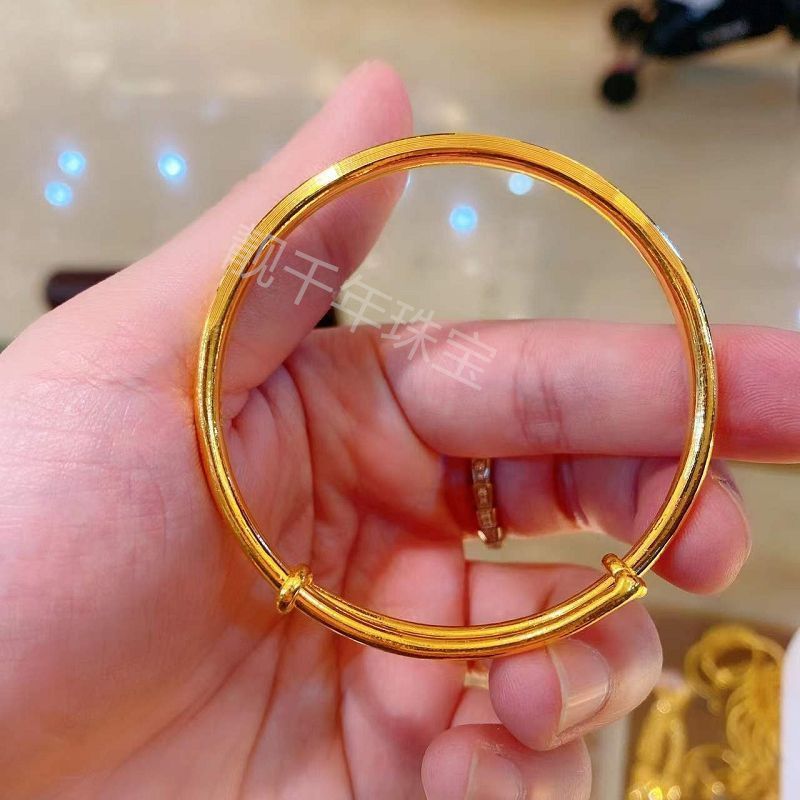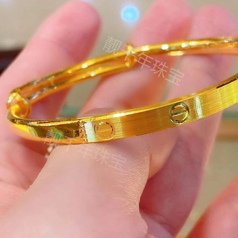 黄金一字纹推拉手镯足金足银时尚可调节百搭金包银镯子节日送老婆