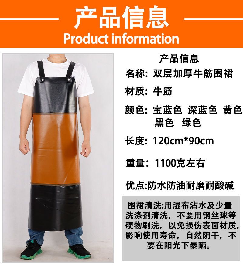 加厚双层牛筋围裙耐磨耐用耐酸碱防水防油工地干活劳保石材围腰裙