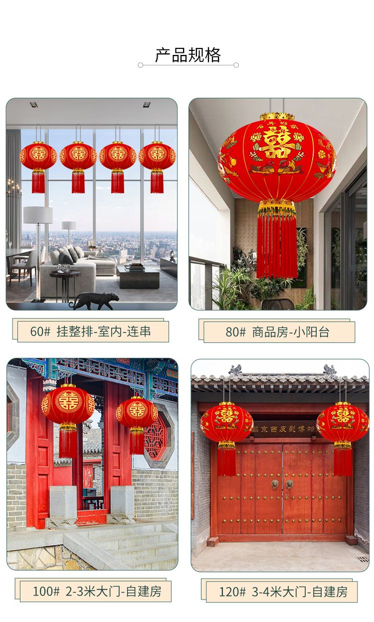 2024新款结婚喜字大红灯笼新年春节灯笼阳台装饰防水大门院子挂饰