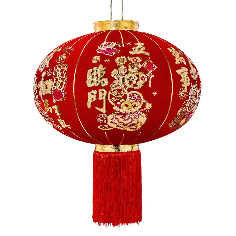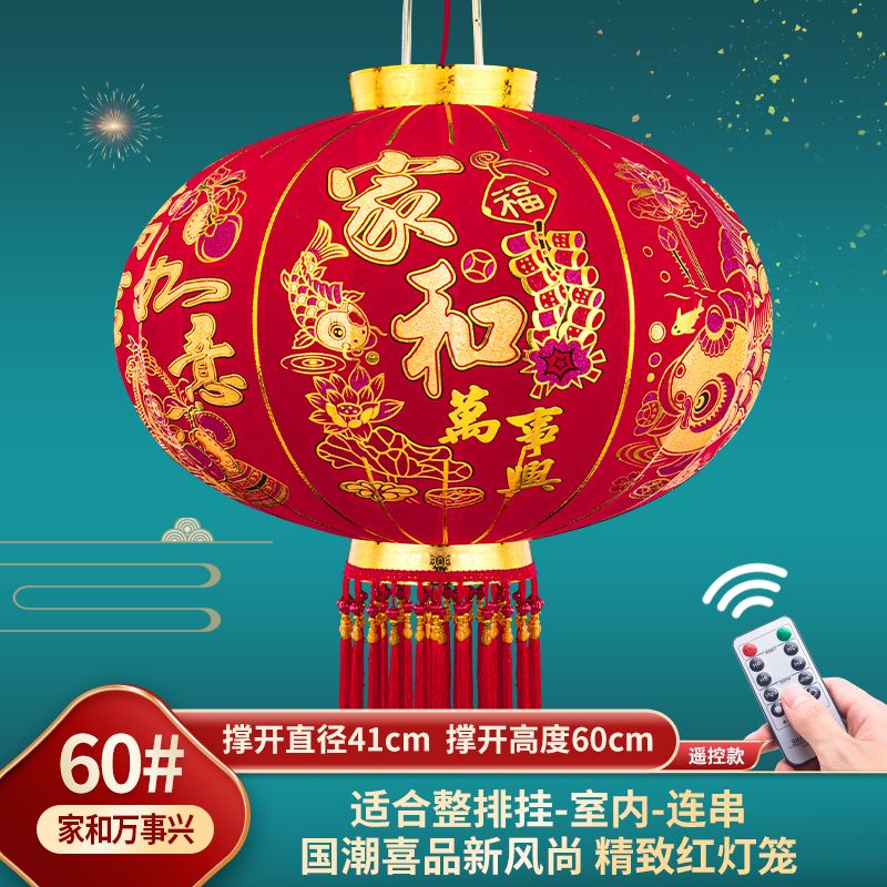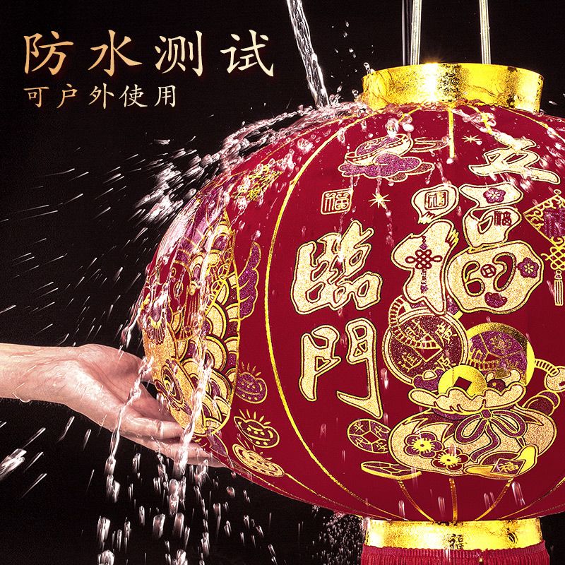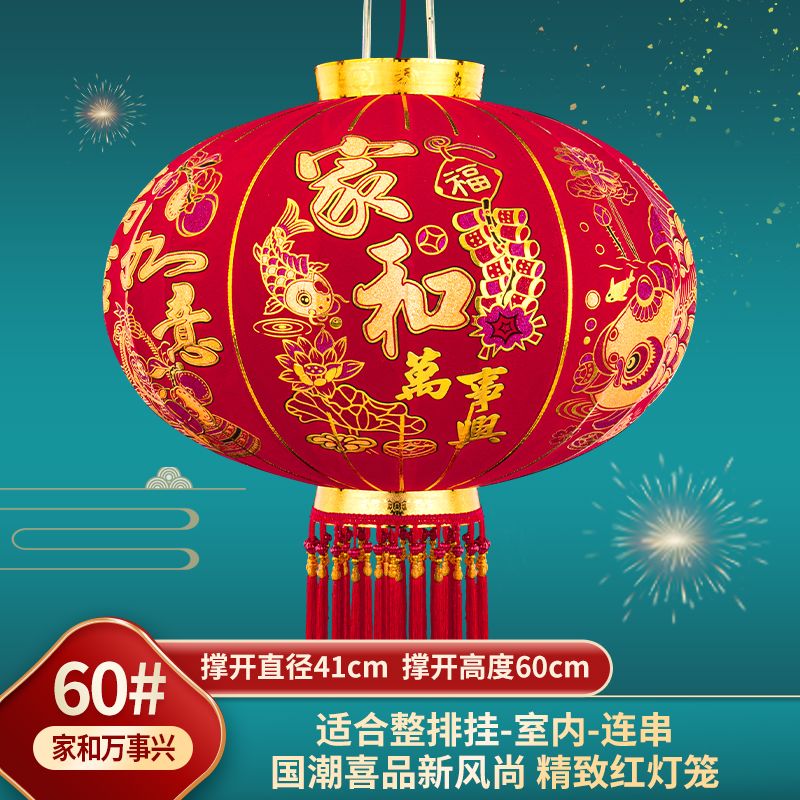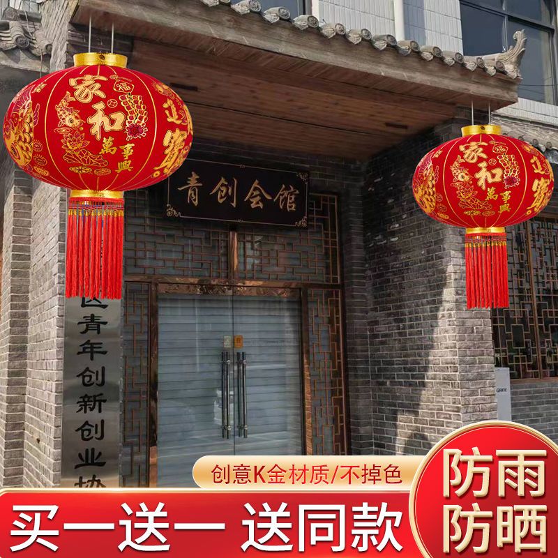 2024新款过年大红植绒灯笼一对春节大门院子灯笼阳台挂饰长杆灯笼