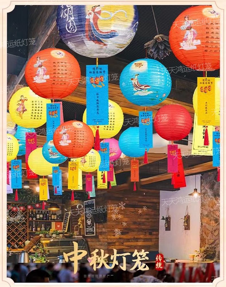 中秋节氛围挂饰灯笼猜灯谜猜字谜花灯幼儿园商场公司装饰场景布置