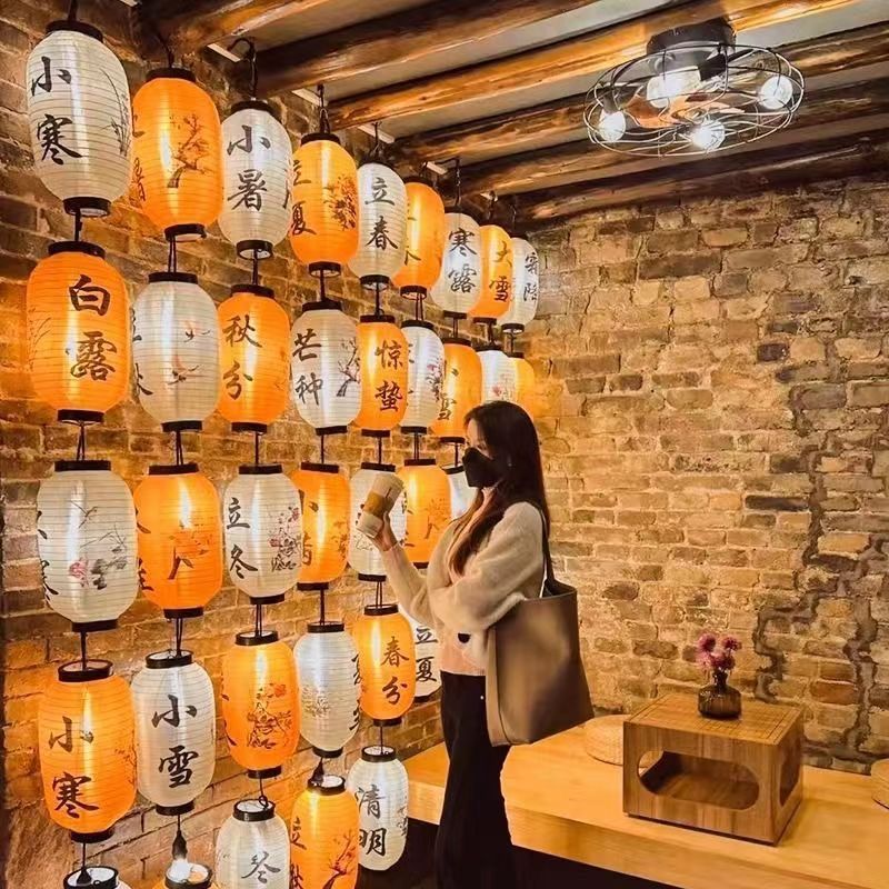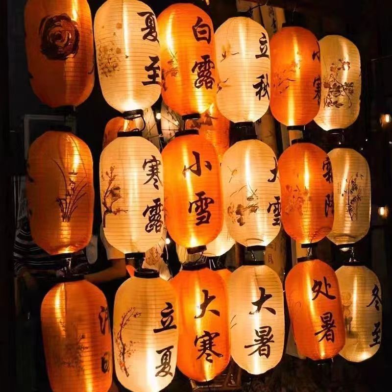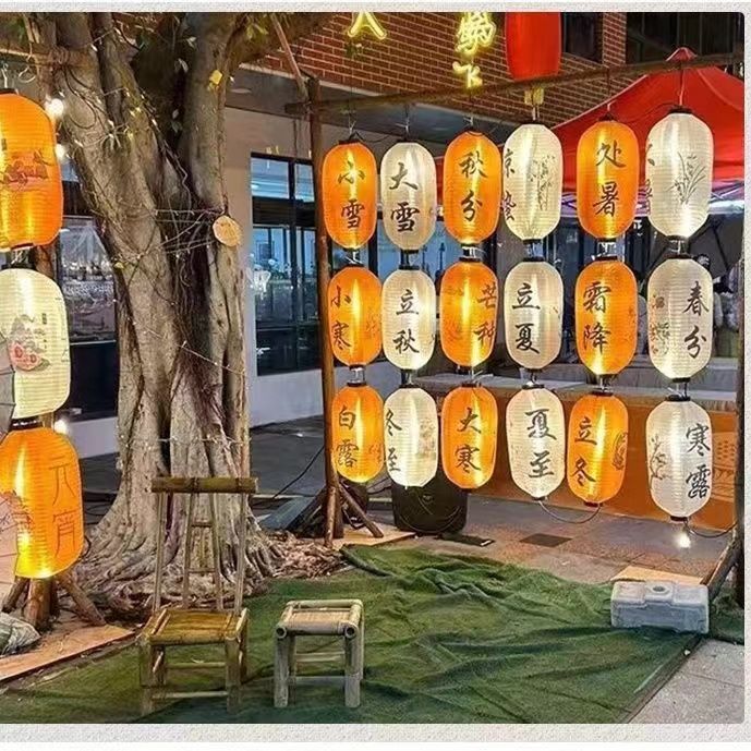 电池中式户外防水24节气灯笼定制古风市集装饰连串挂饰发光国风