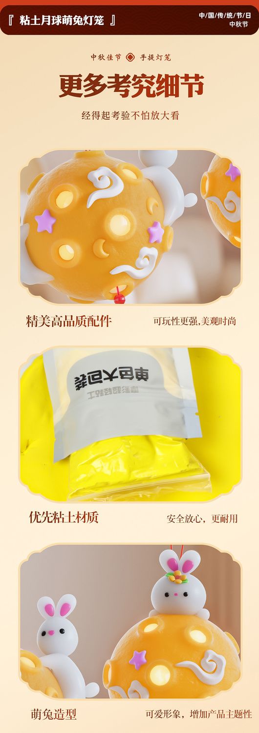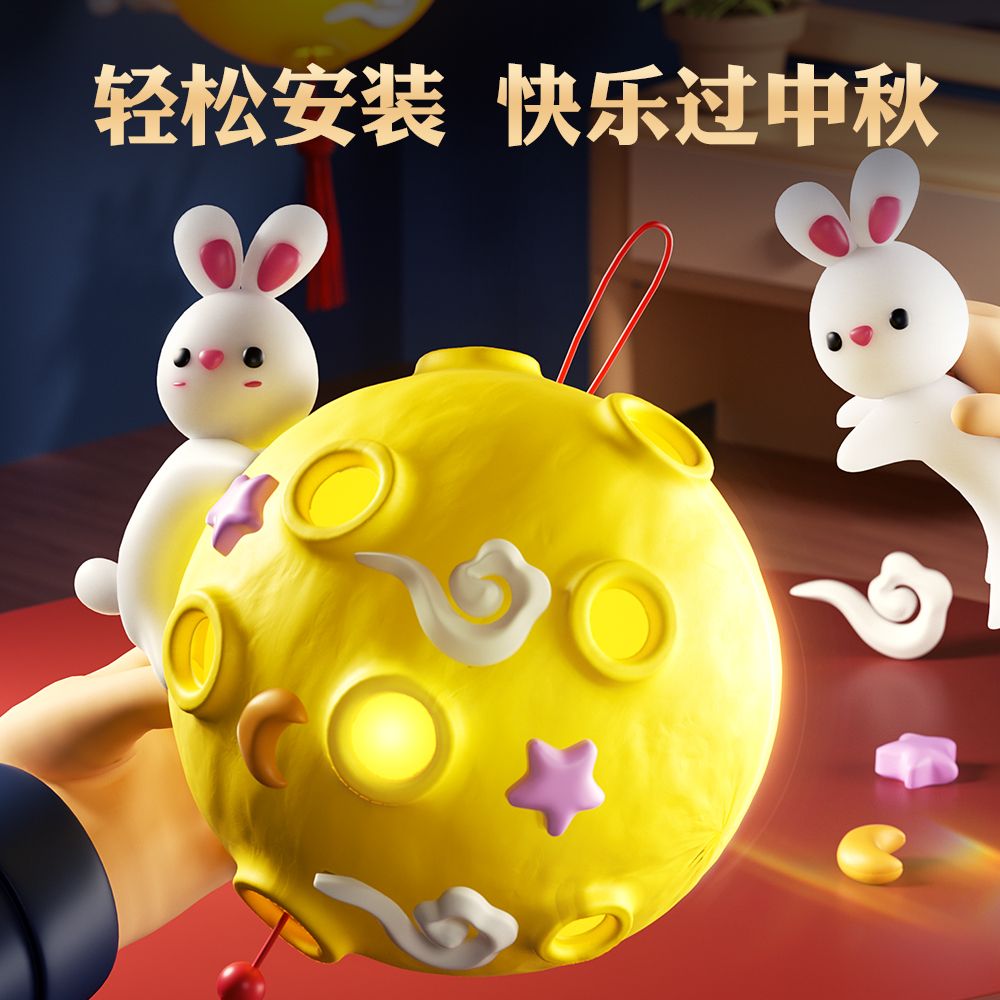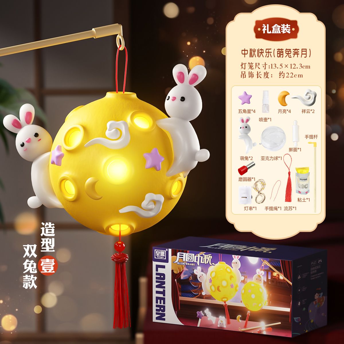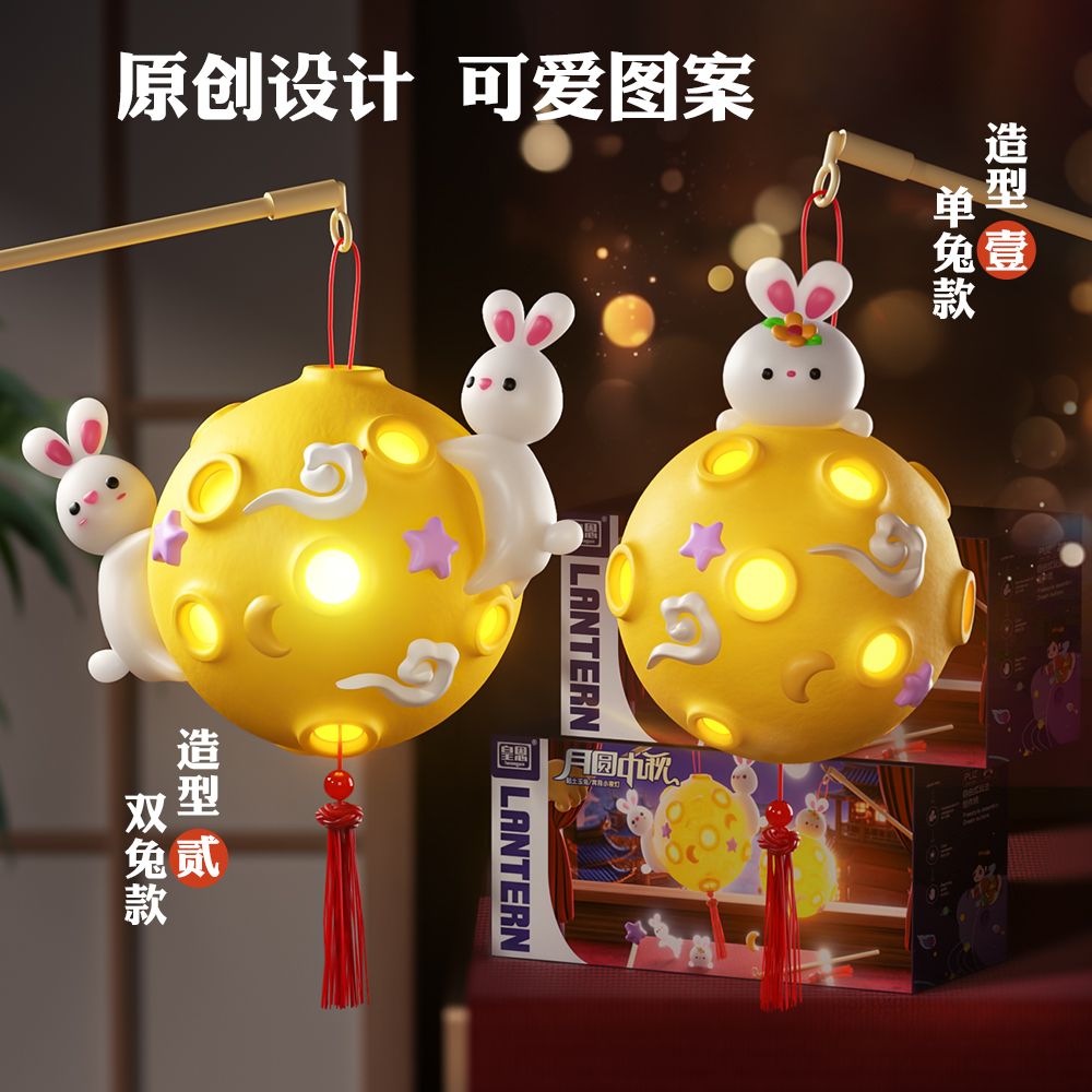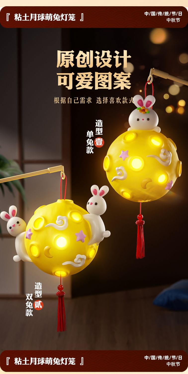 粘土月球萌兔灯笼2024新款花灯中秋立体手提粘贴手工制作diy材料