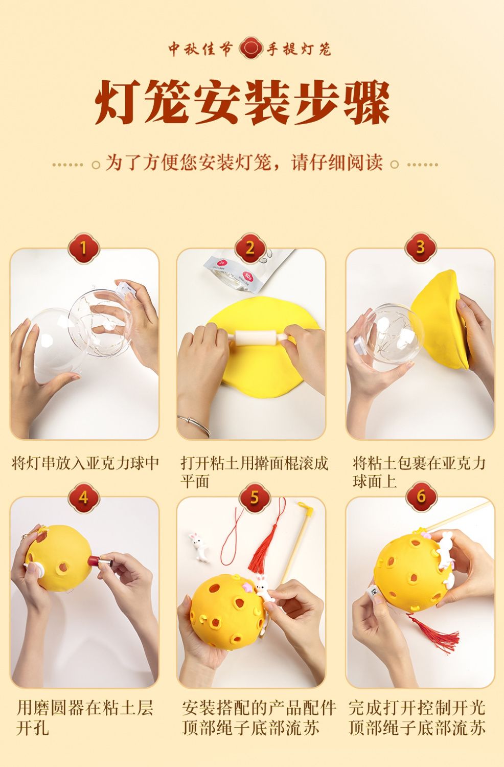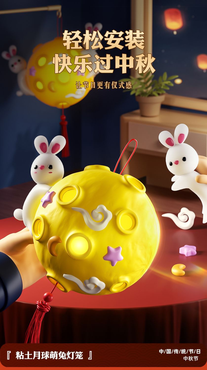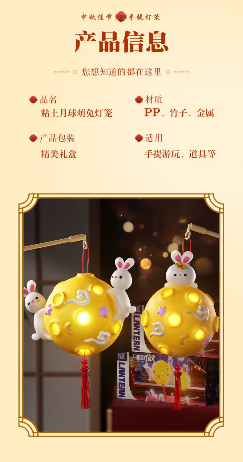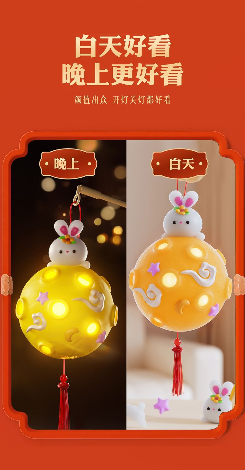 粘土月球萌兔灯笼2024新款花灯中秋立体手提粘贴手工制作diy材料