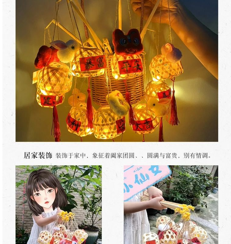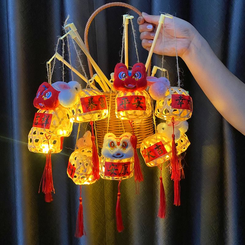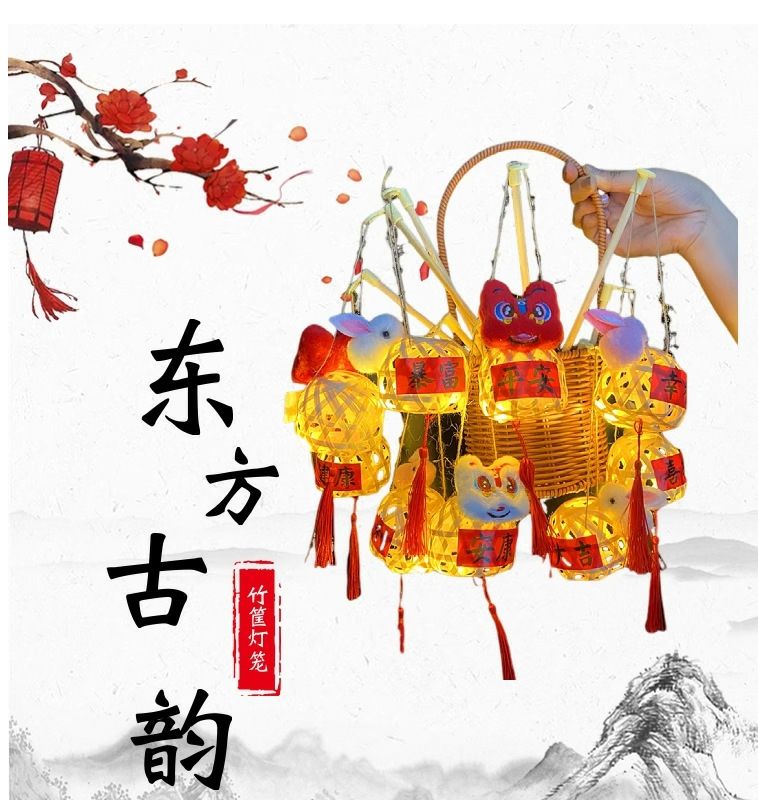 中秋节古风竹篓编筐手工发光小灯笼儿童手提花灯地摊夜市玩具批发