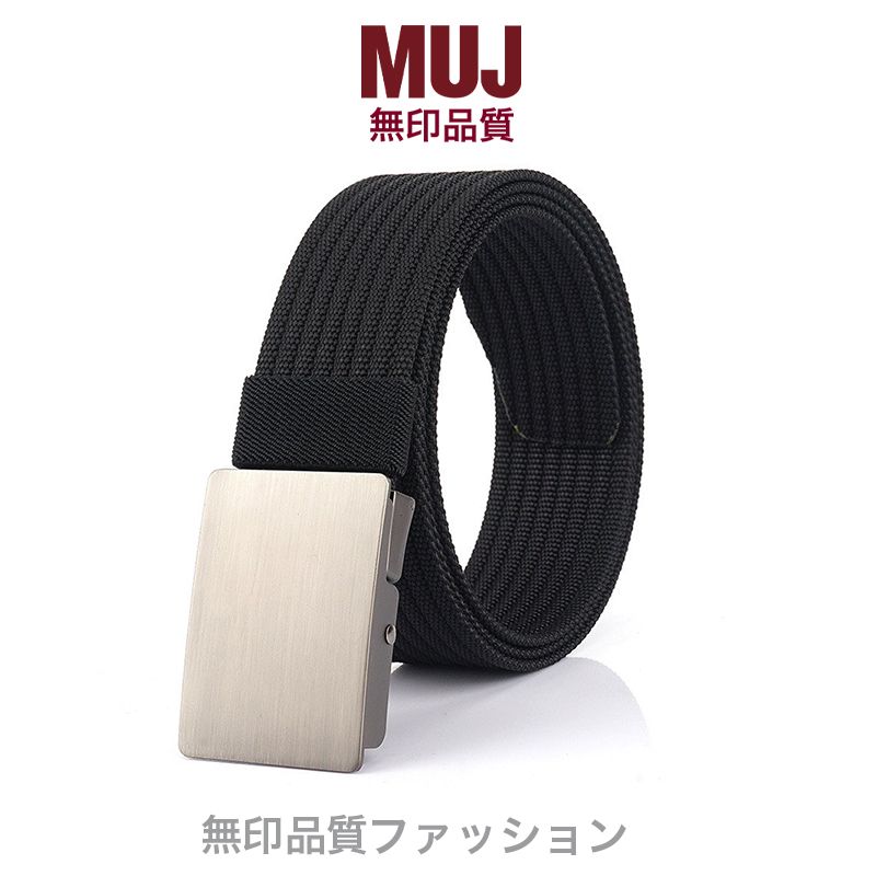 无印MUJ帆布腰带平滑扣休闲百搭尼龙皮带简约加厚男士无孔裤通用