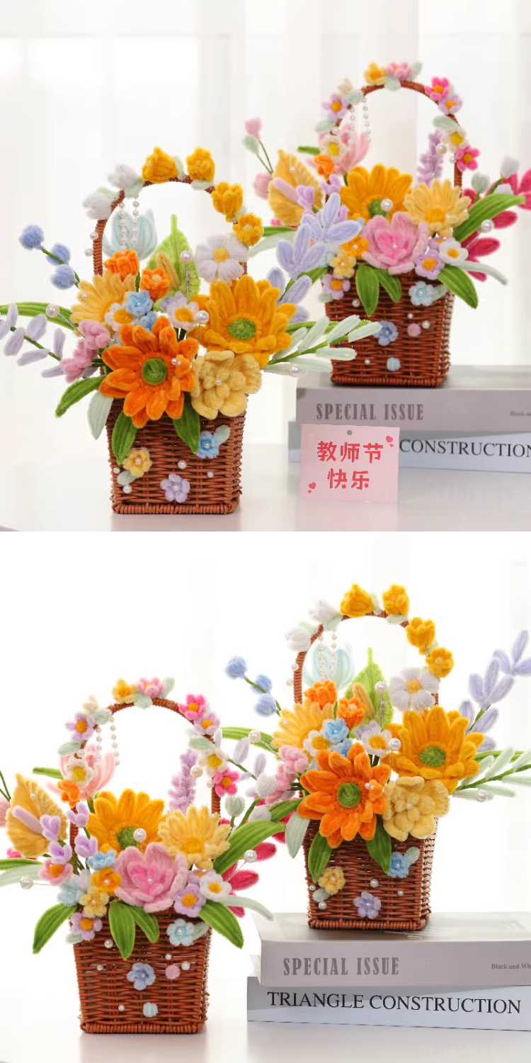 教师节礼物送老师花束扭扭棒手工编织花篮diy材料包自制向日葵